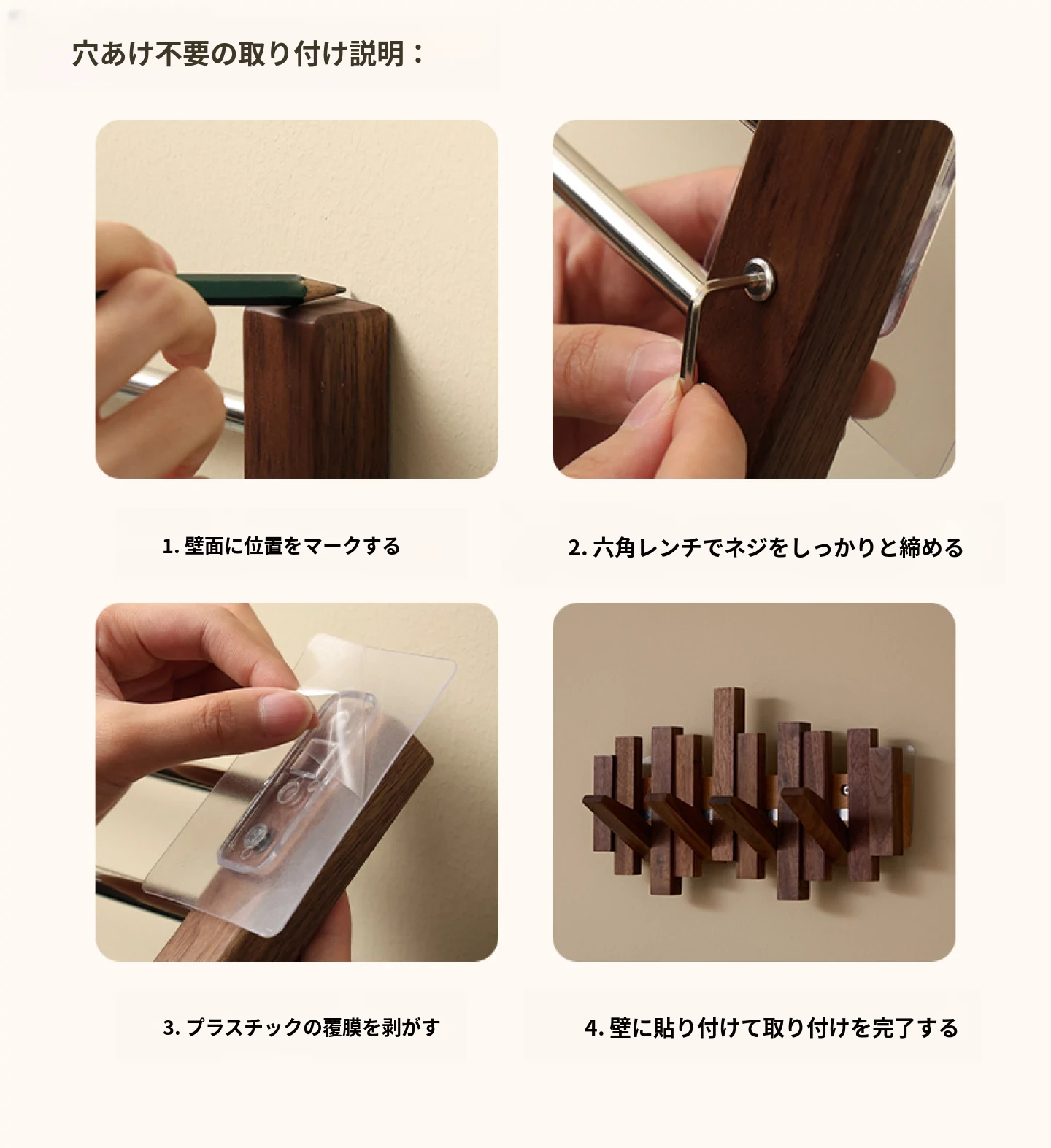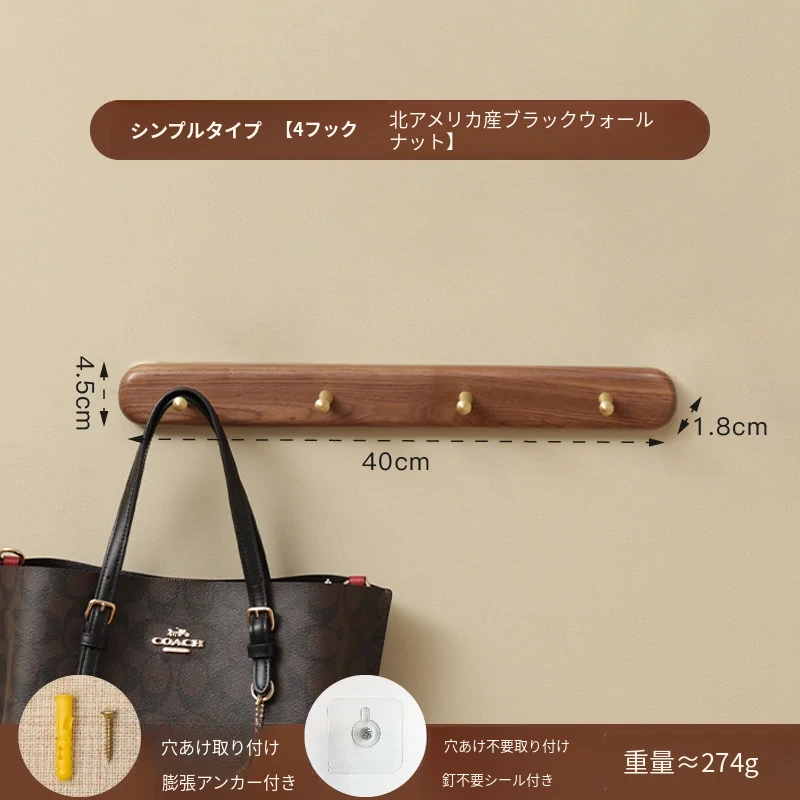 シンプルタイプ 4フック 北米ブラックウォールナット