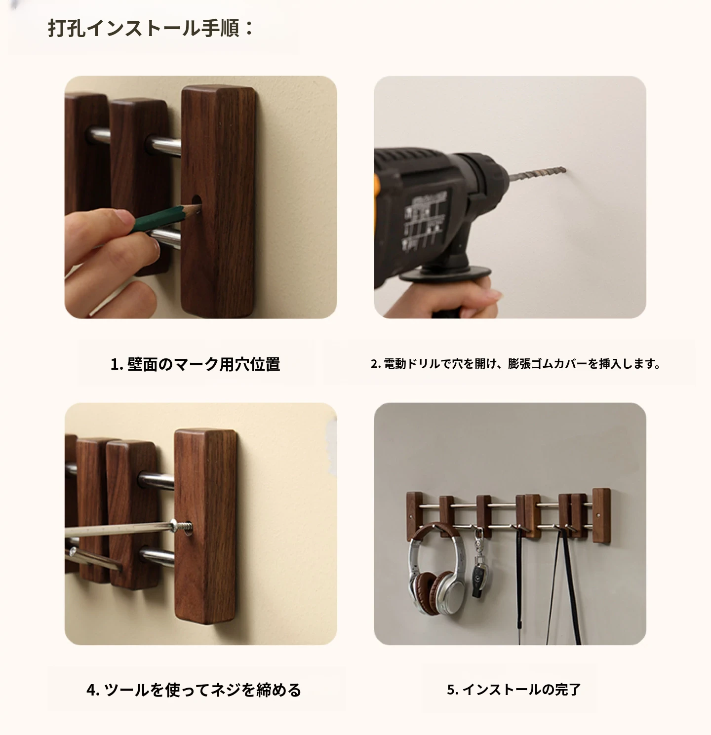 シンプルタイプ 5フック 北米ブラックウォールナット