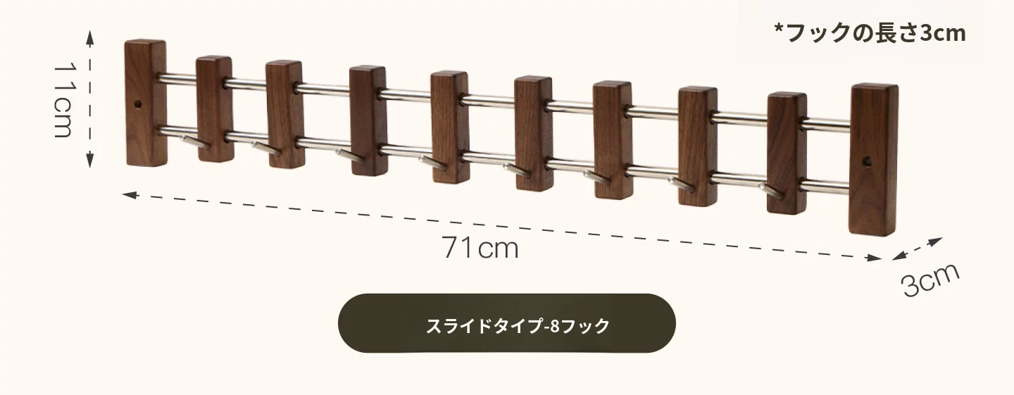 スライドタイプ 8フック 北米ブラックウォールナット