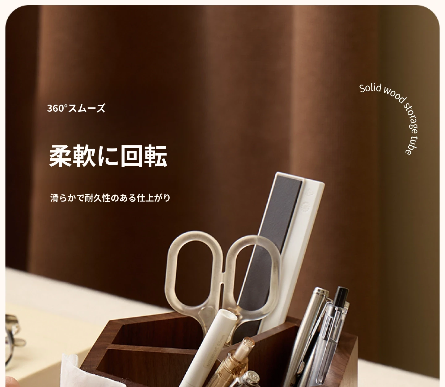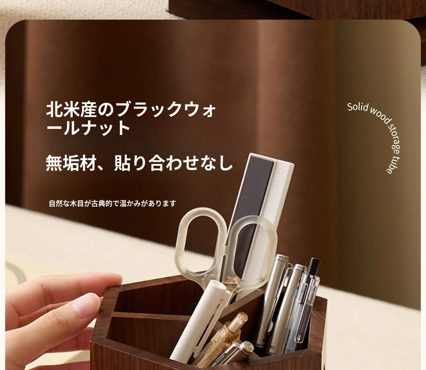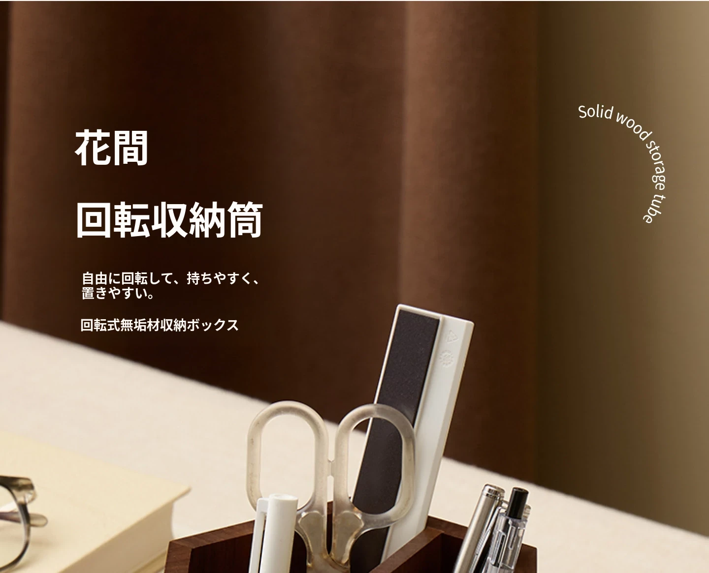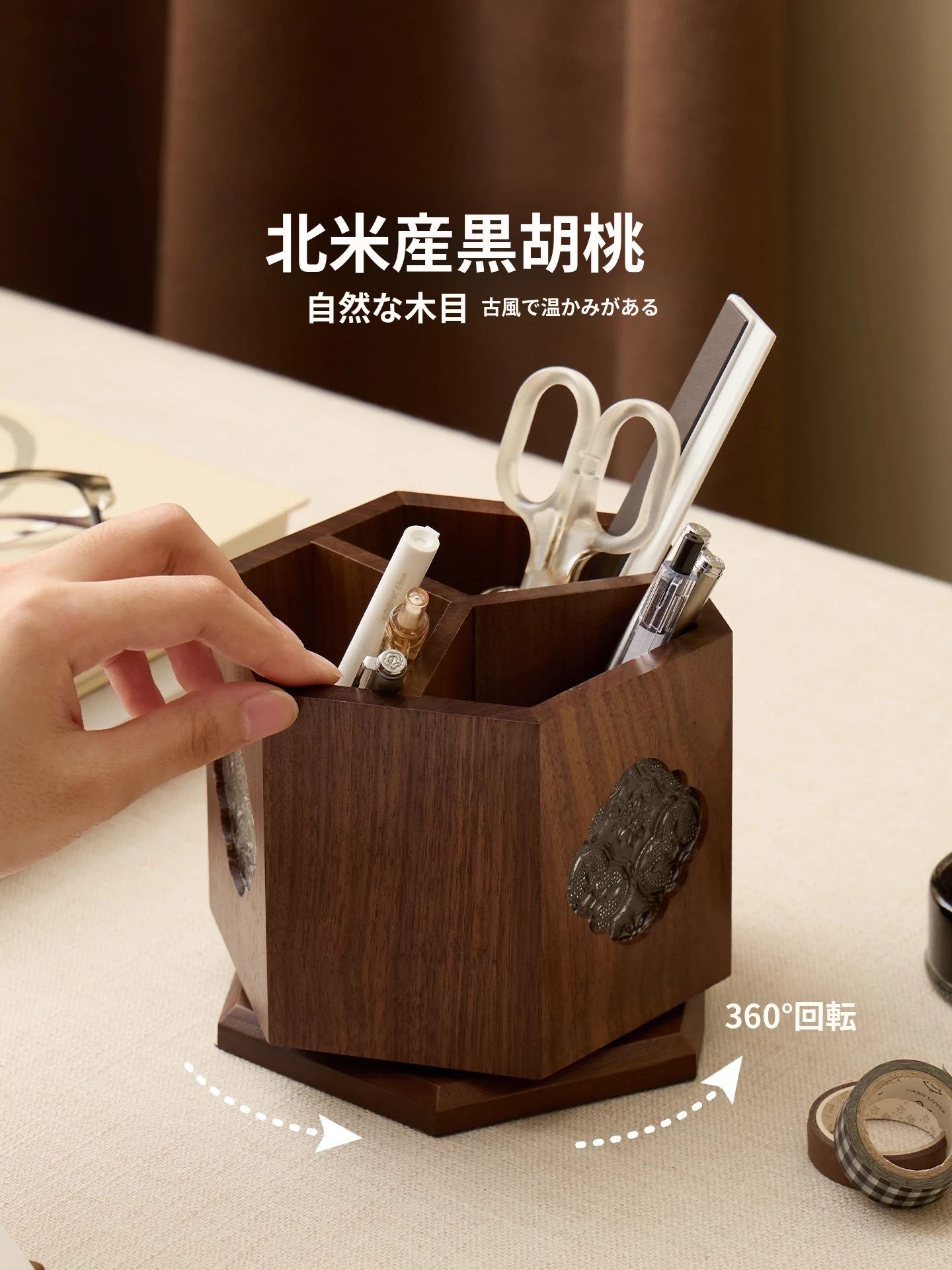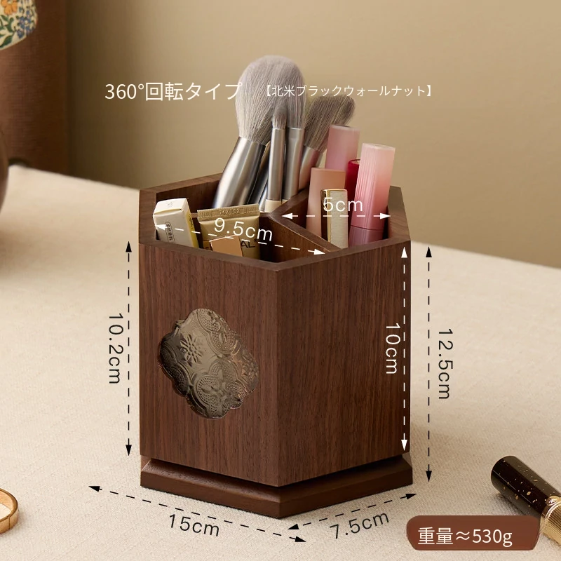 梵瀚 ブラックウォールナット 回転ペン立て デスク用 ヴィンテージ 木製 大容量収納筒 国風 様式の無垢材収納ボックス - おしゃれで機能的なデザインで、あなたのデスクを美しく整理整頓!