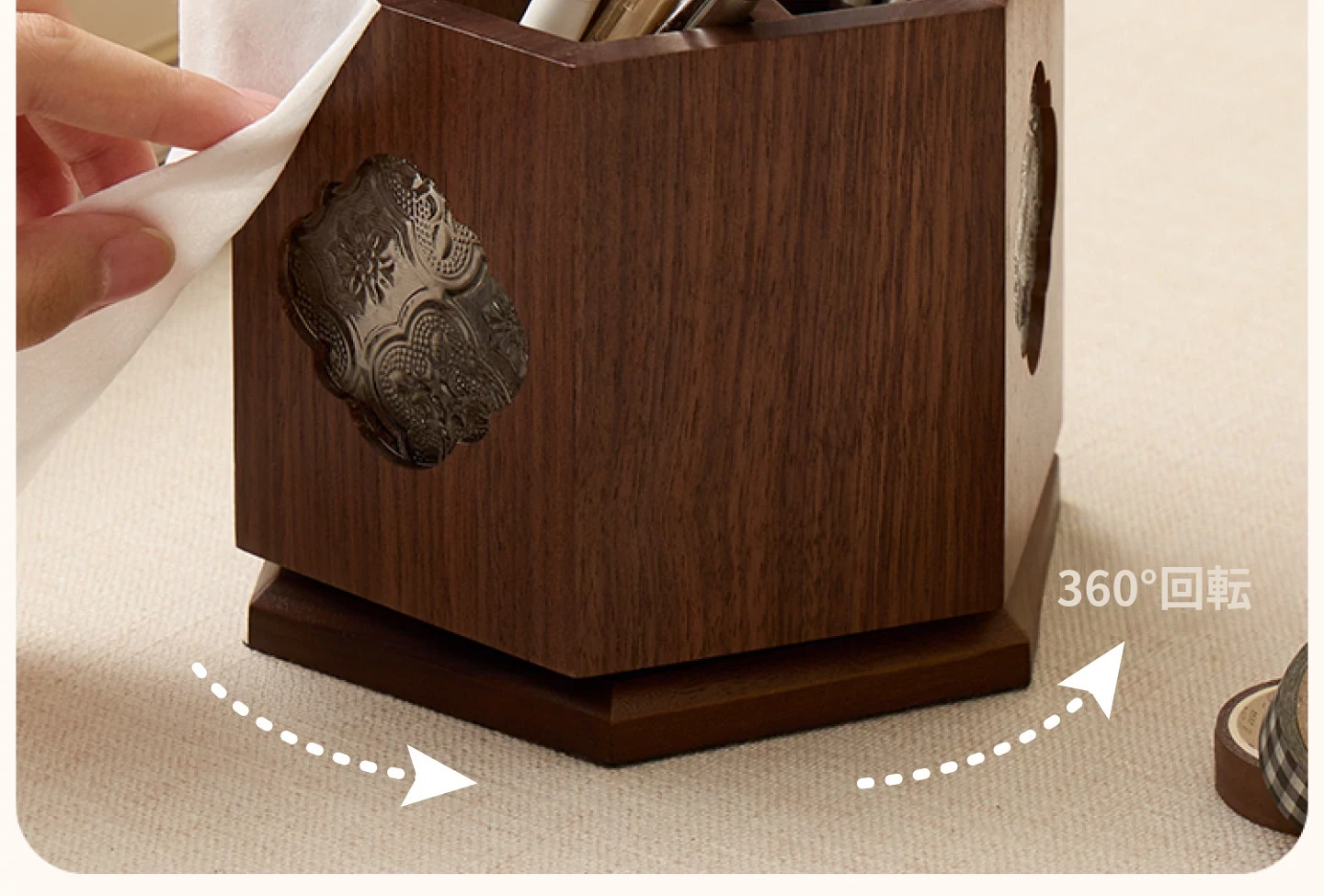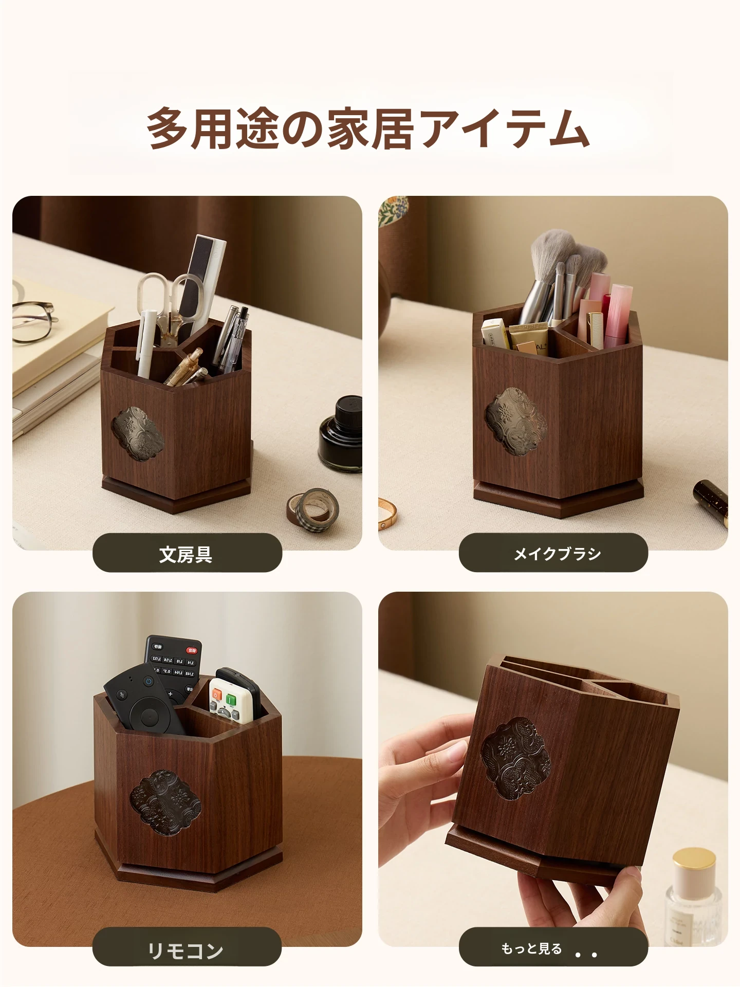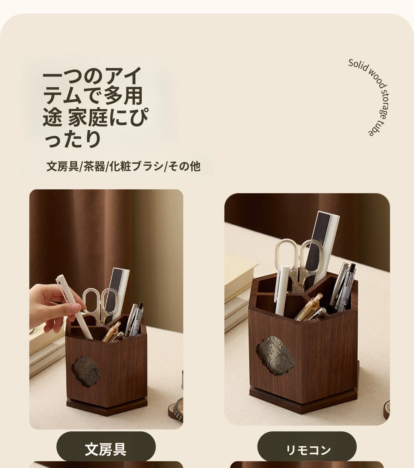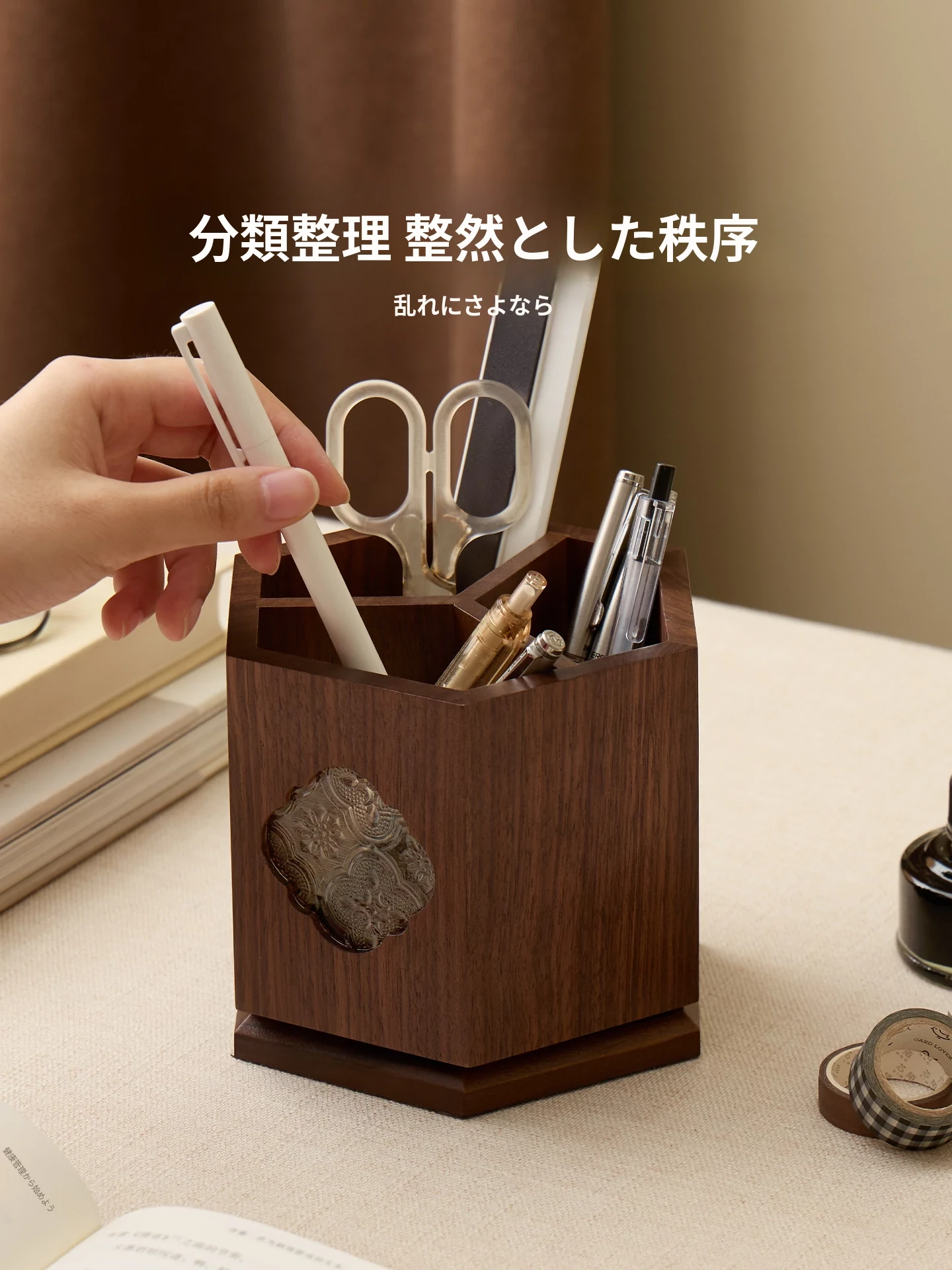 梵瀚 ブラックウォールナット 回転ペン立て デスク用 ヴィンテージ 木製 大容量収納筒 国風 様式の無垢材収納ボックス - おしゃれで機能的なデザインで、あなたのデスクを美しく整理整頓!