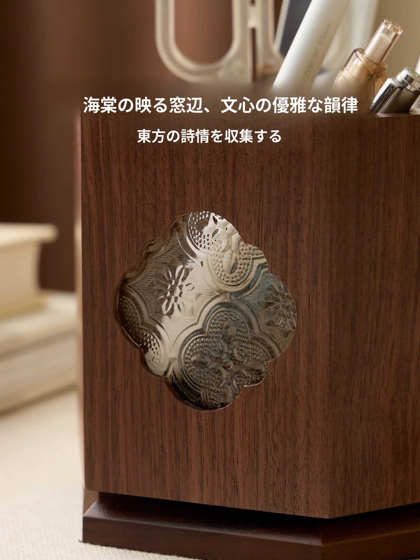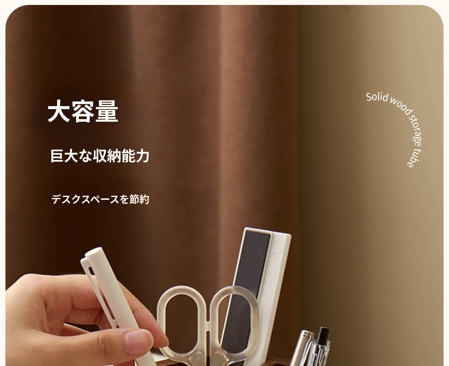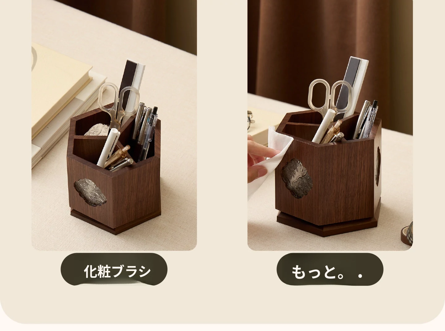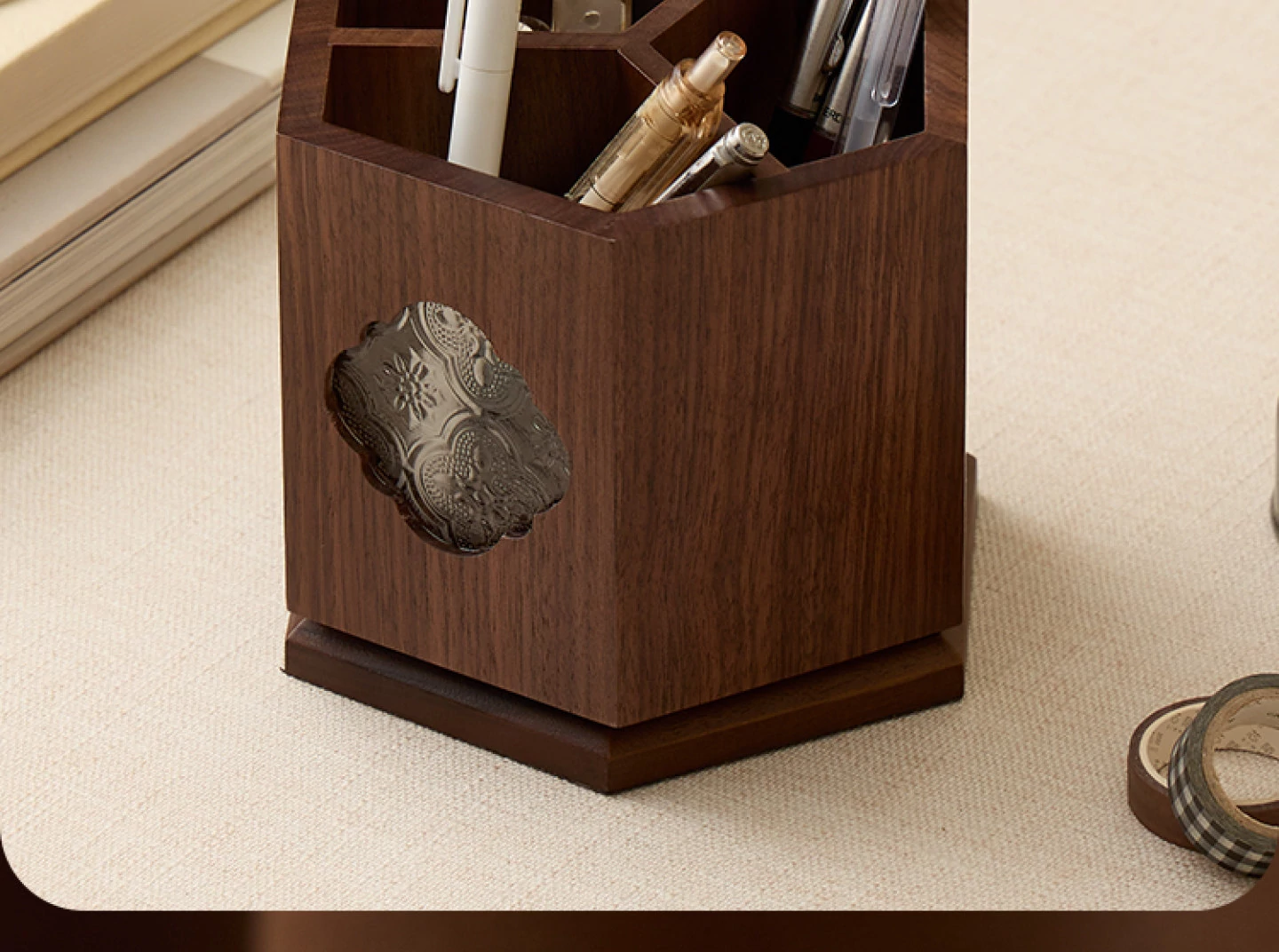 梵瀚 ブラックウォールナット 回転ペン立て デスク用 ヴィンテージ 木製 大容量収納筒 国風 様式の無垢材収納ボックス - おしゃれで機能的なデザインで、あなたのデスクを美しく整理整頓!