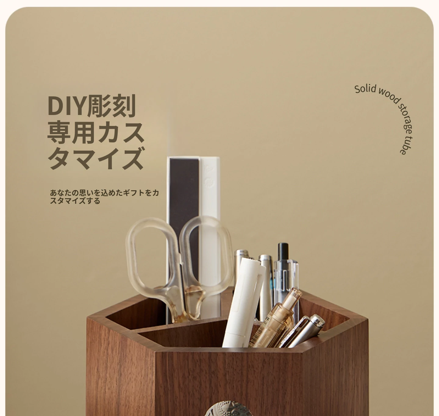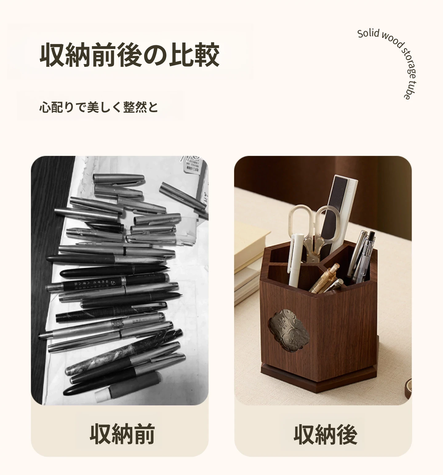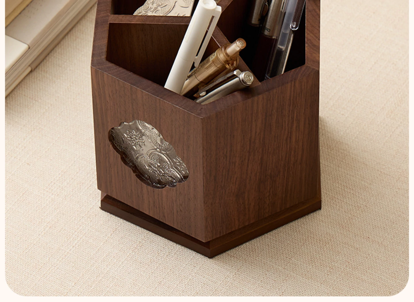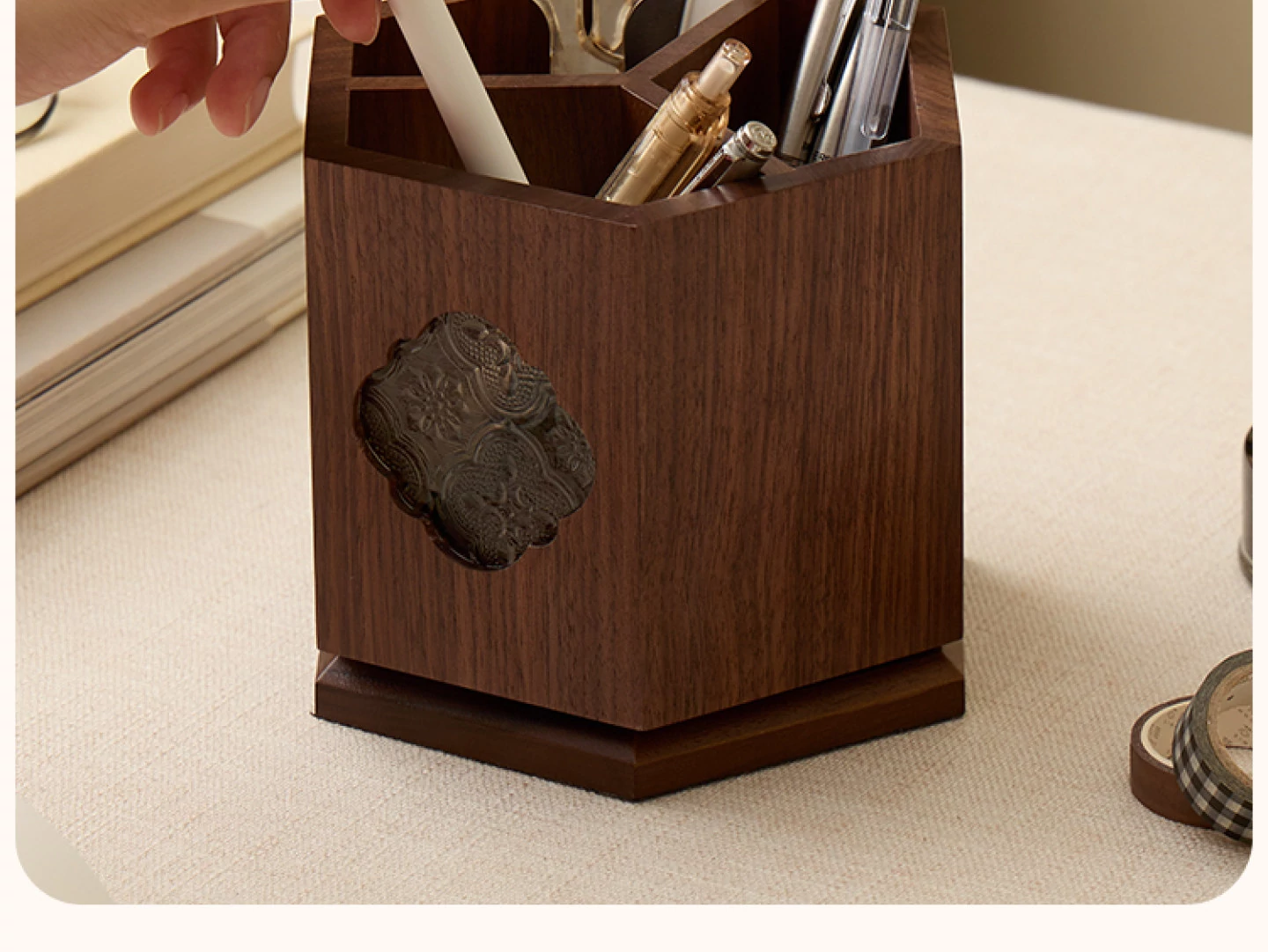 梵瀚 ブラックウォールナット 回転ペン立て デスク用 ヴィンテージ 木製 大容量収納筒 国風 様式の無垢材収納ボックス - おしゃれで機能的なデザインで、あなたのデスクを美しく整理整頓!