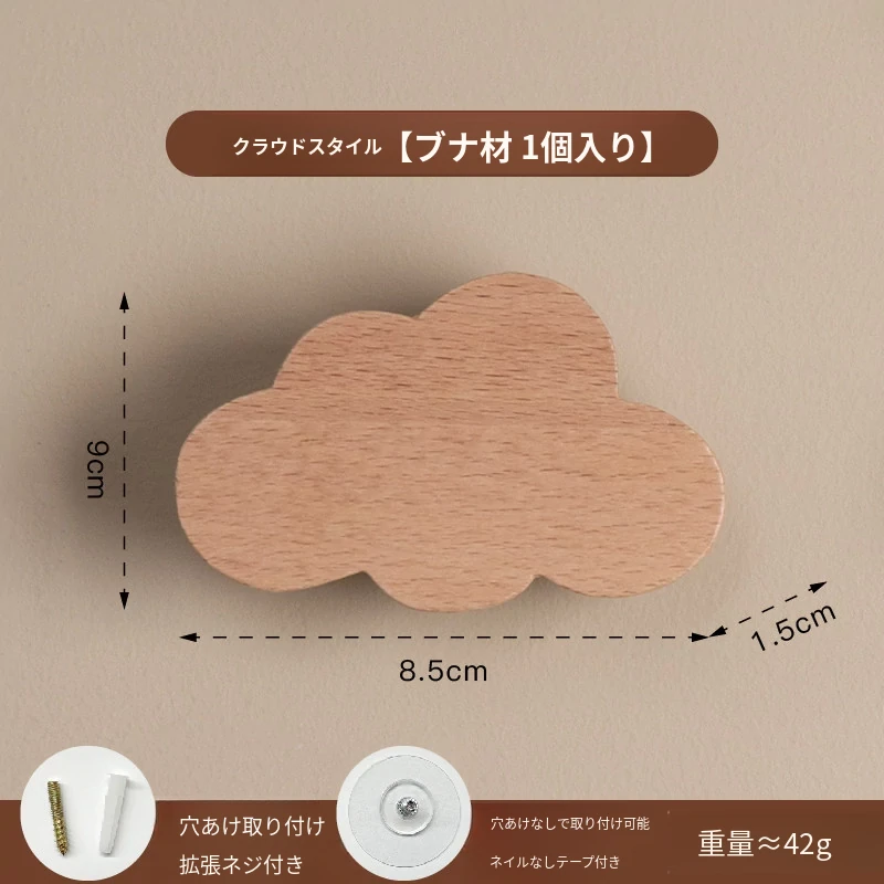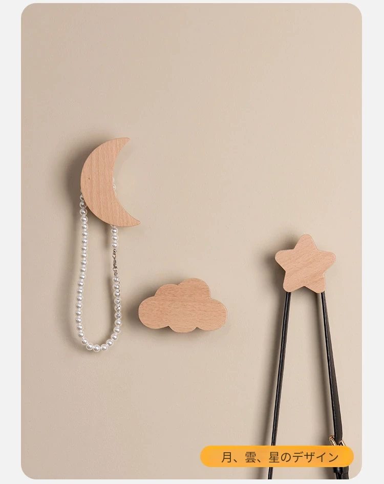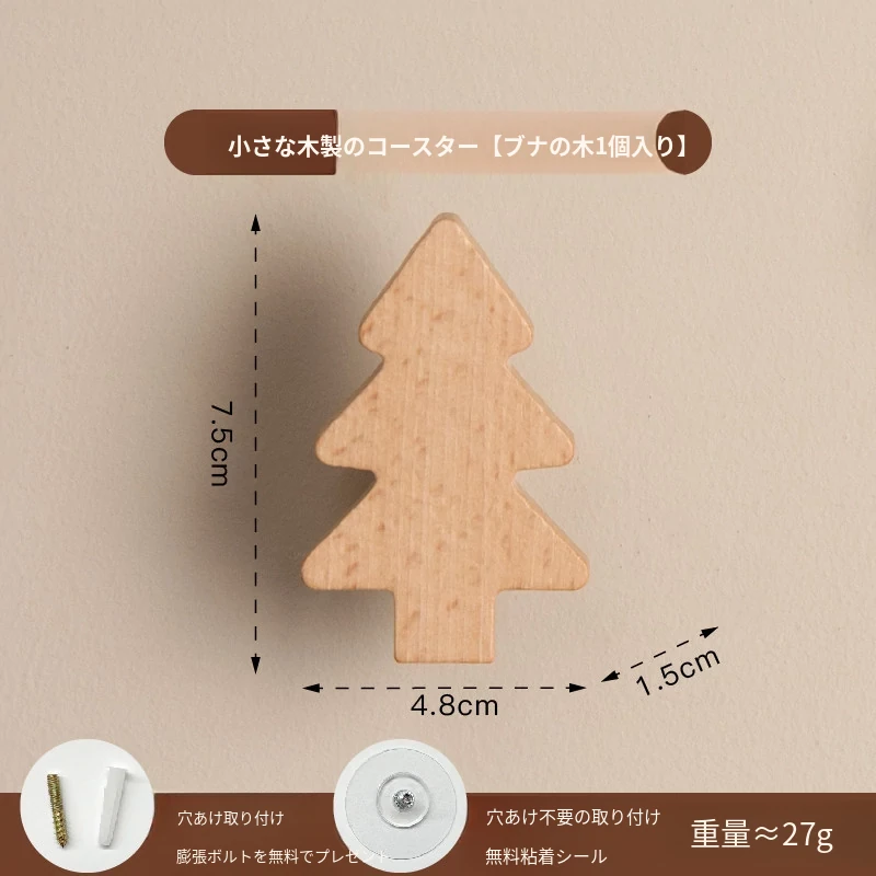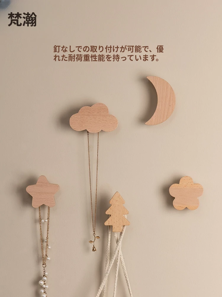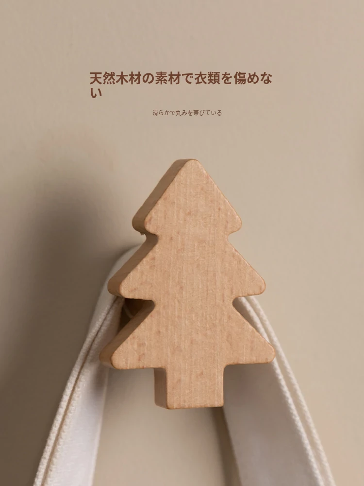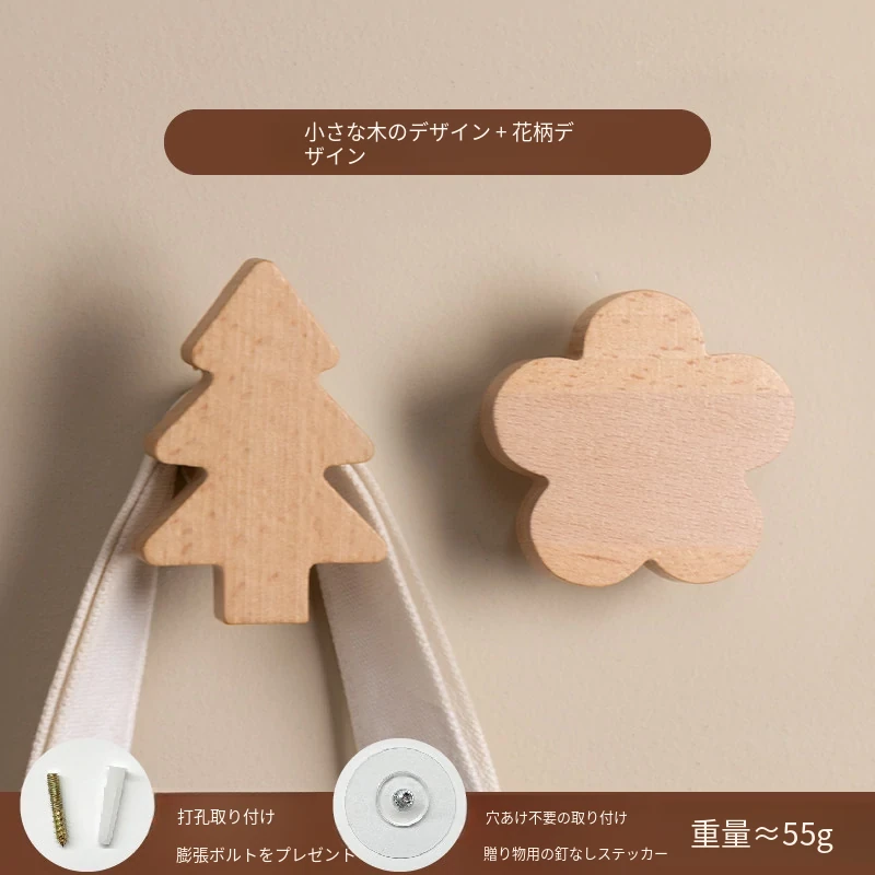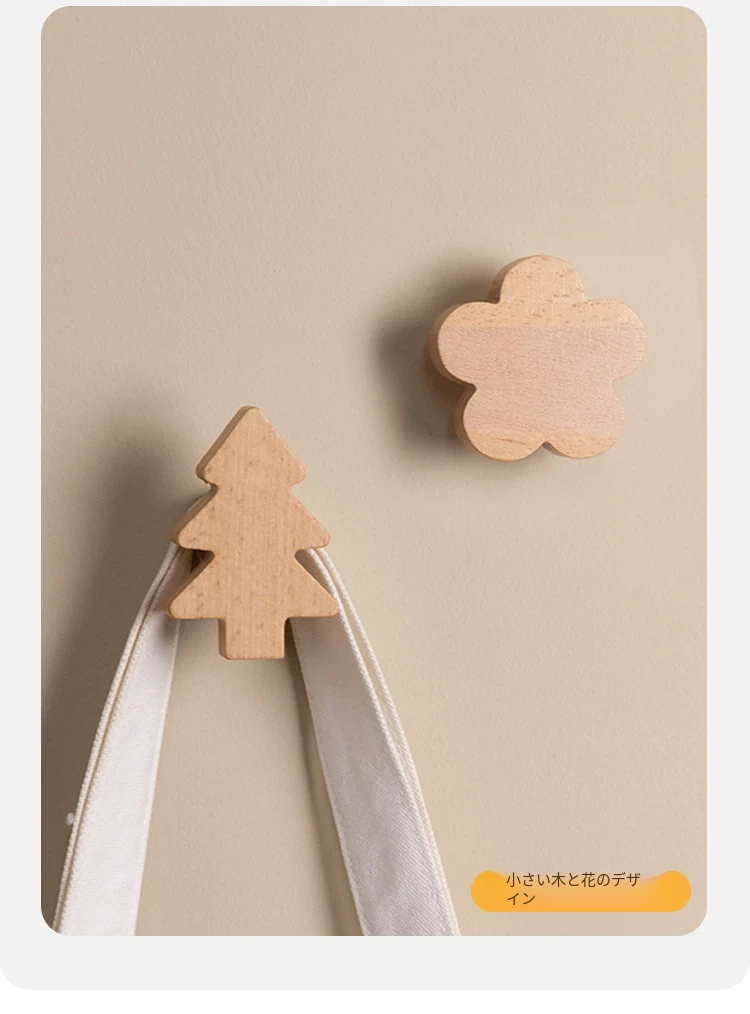 梵瀚のかわいいデザインの無垢材ハンガーフック!ドアの裏や玄関にぴったり、簡単取り付けの粘着式で穴あけ不要。おしゃれに衣類をかけて、スペースを有効活用!
