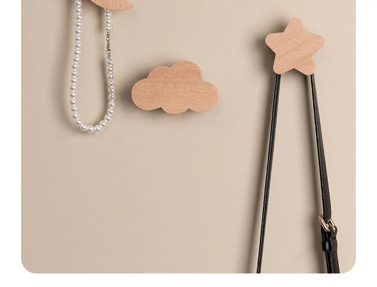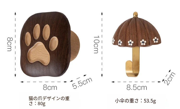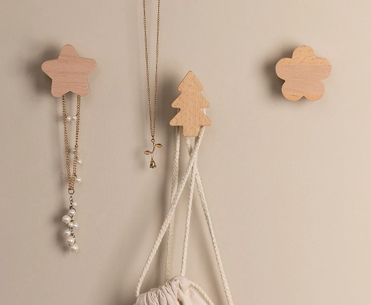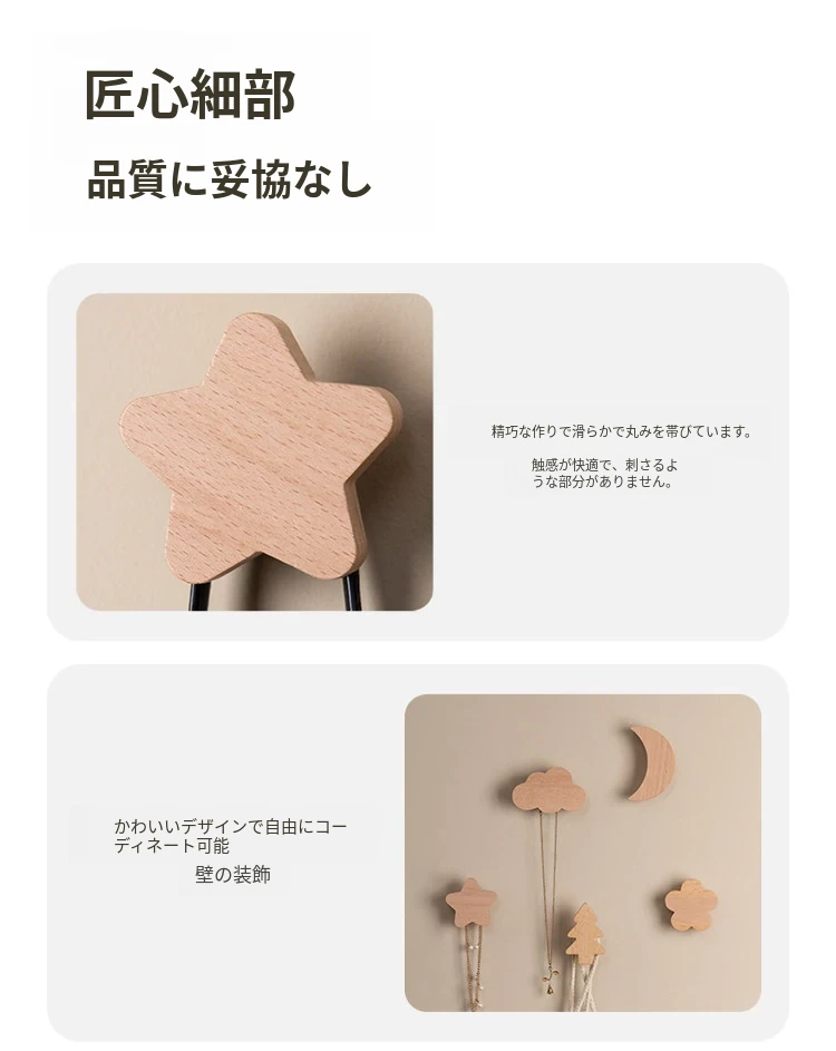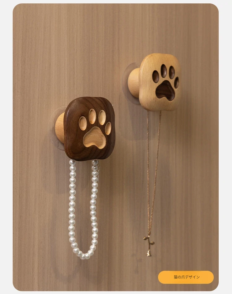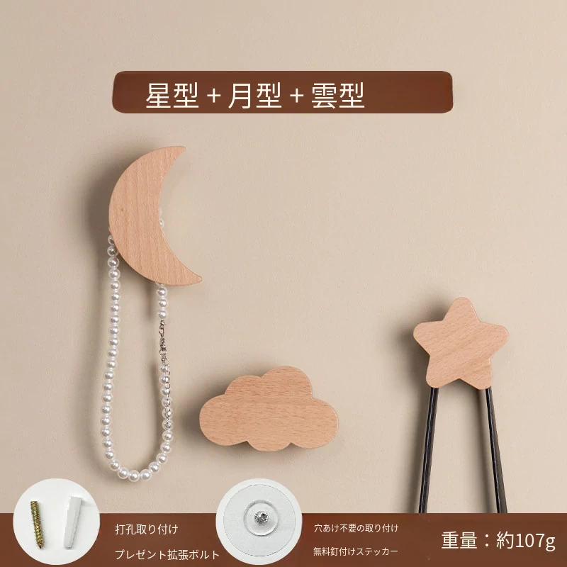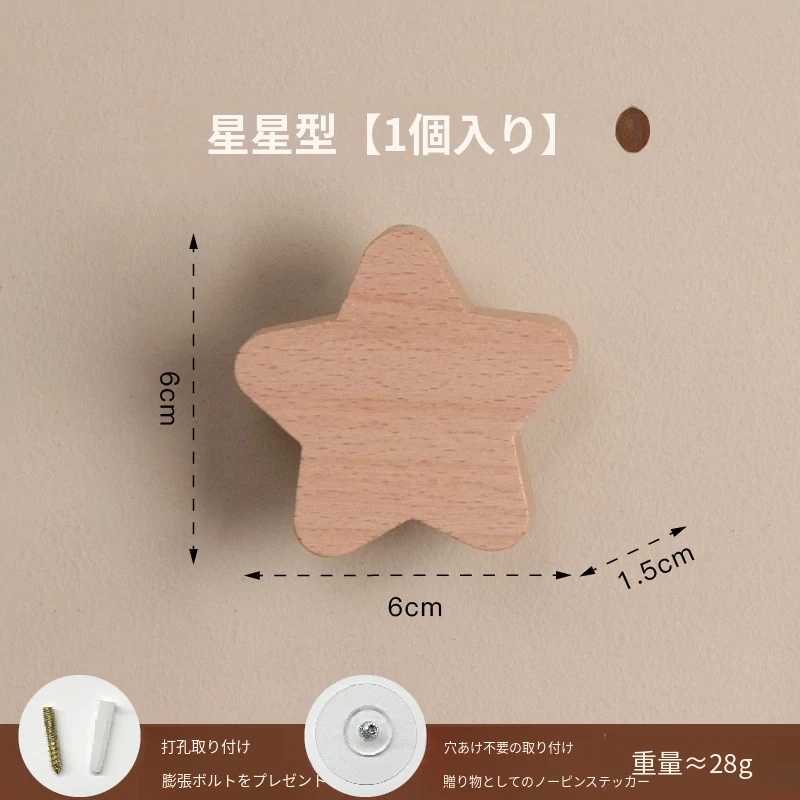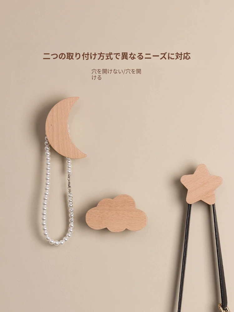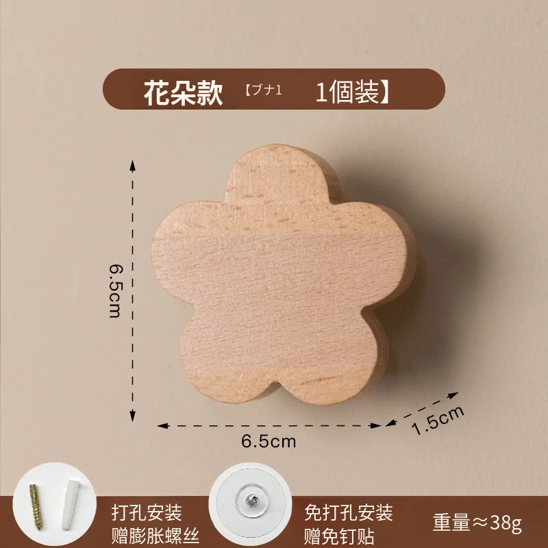 梵瀚のかわいいデザインの無垢材ハンガーフック!ドアの裏や玄関にぴったり、簡単取り付けの粘着式で穴あけ不要。おしゃれに衣類をかけて、スペースを有効活用!
