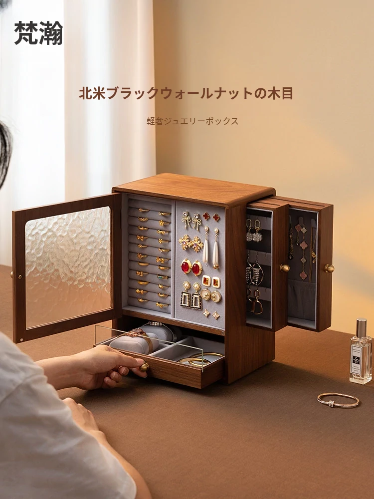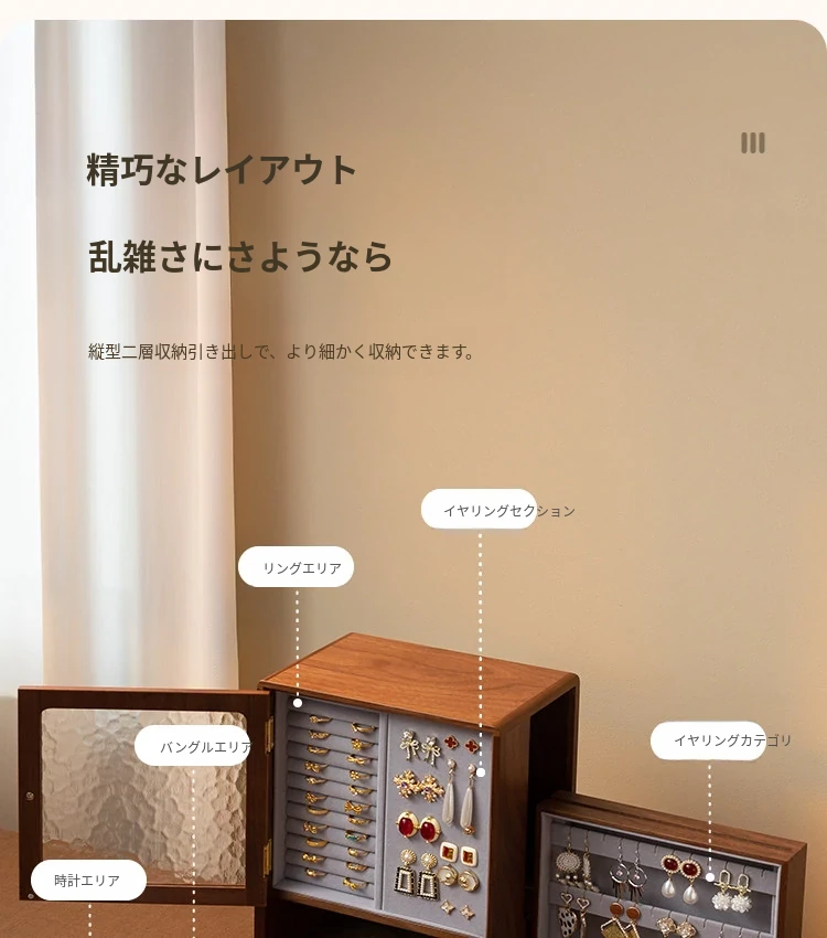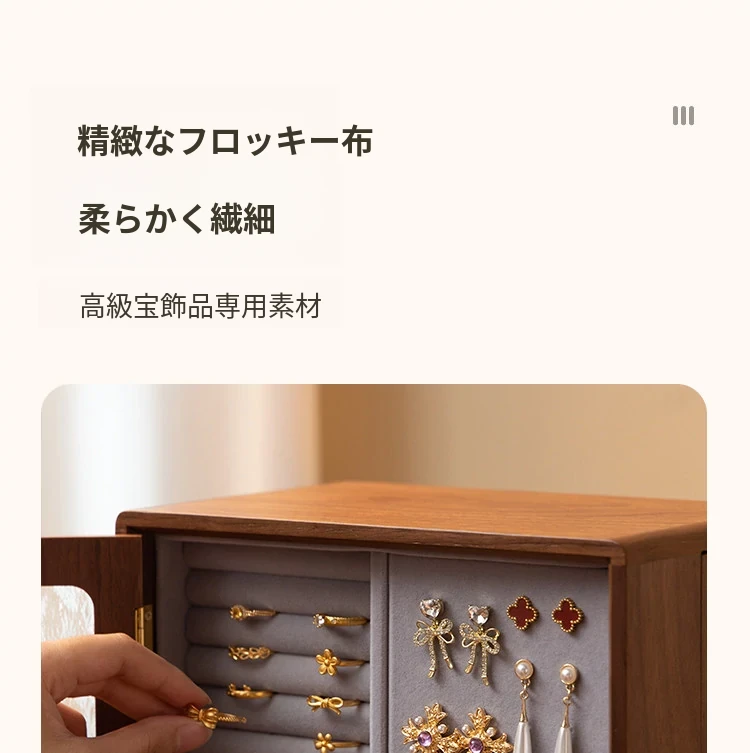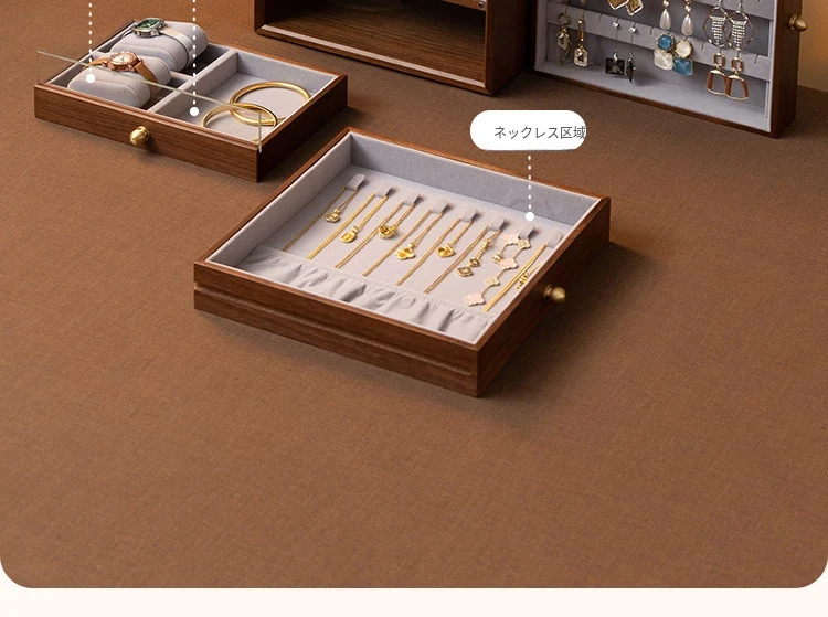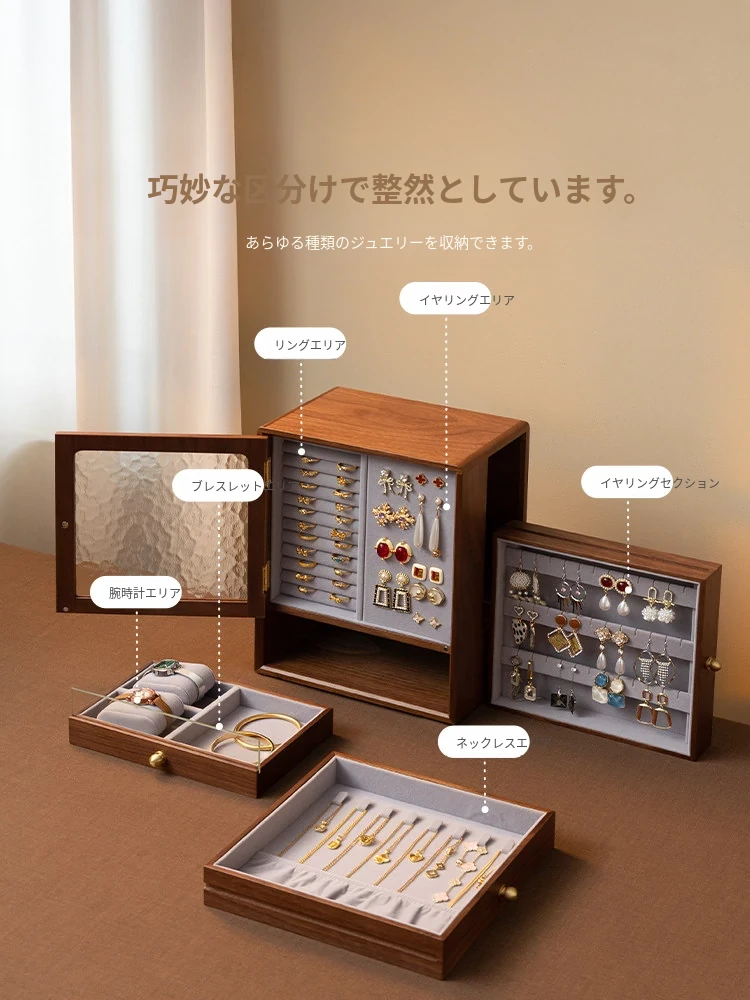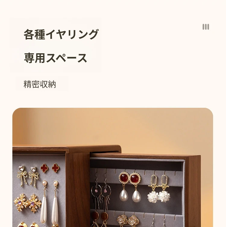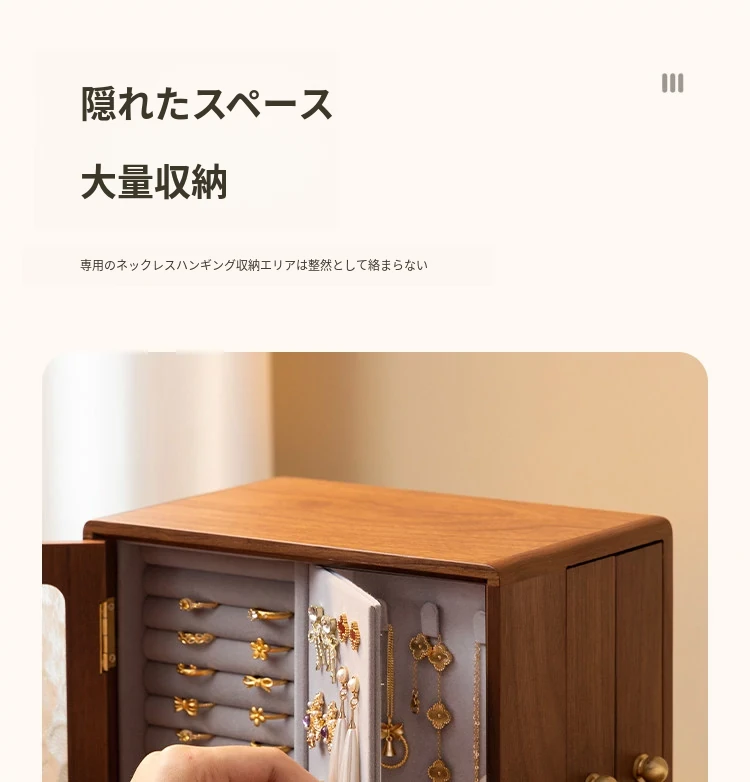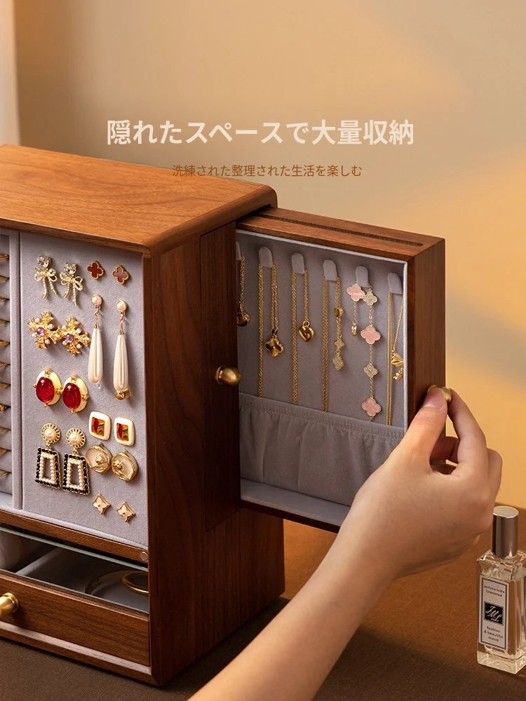 ヴァンハン 高級引き出し式ジュエリーボックス 新年ギフトにぴったり ネックレス・リング・イヤリングを美しく収納できる木製アクセサリーボックス