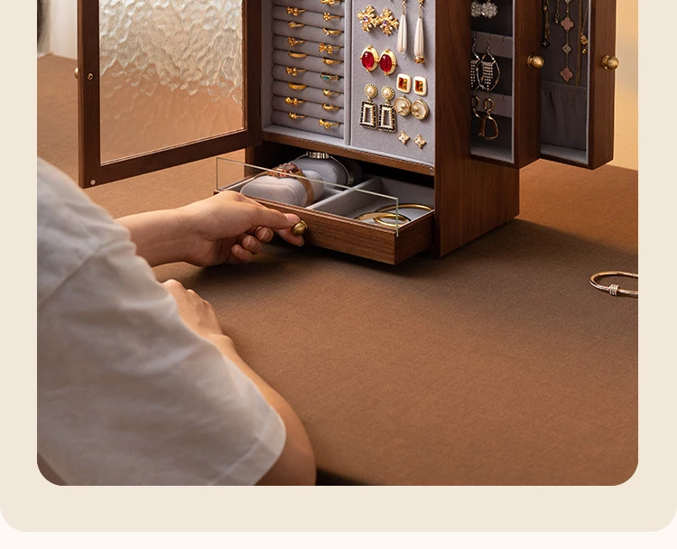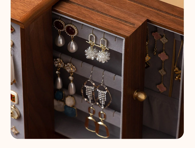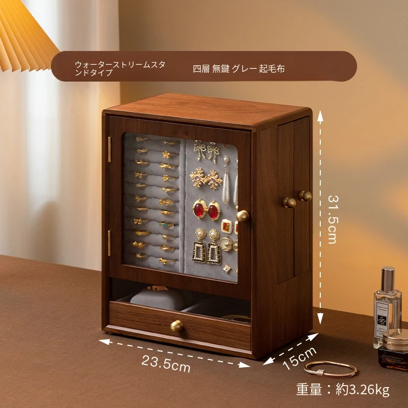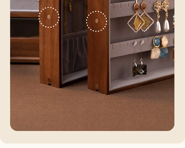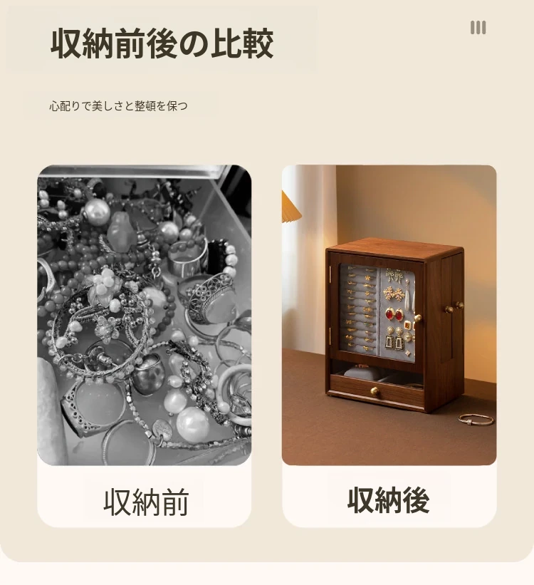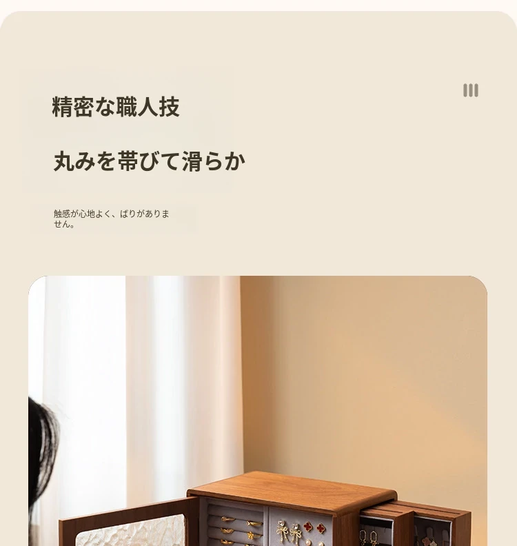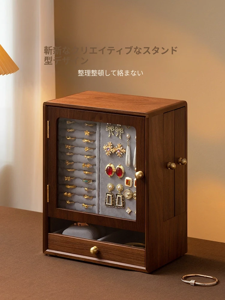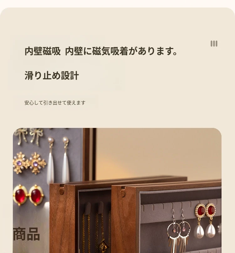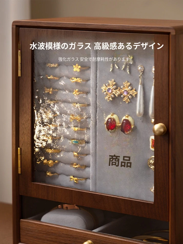 ヴァンハン 高級引き出し式ジュエリーボックス 新年ギフトにぴったり ネックレス・リング・イヤリングを美しく収納できる木製アクセサリーボックス