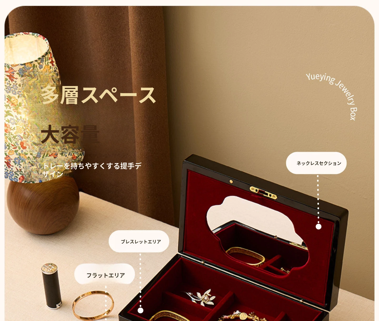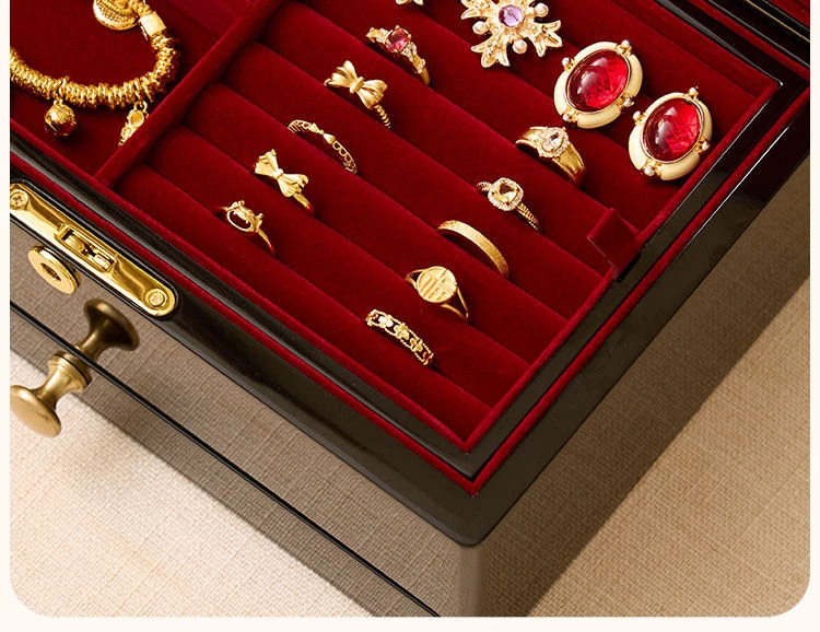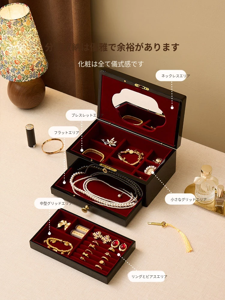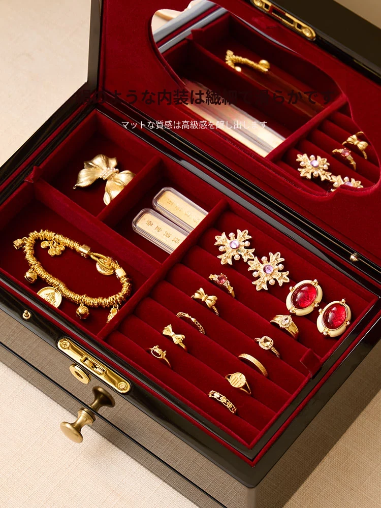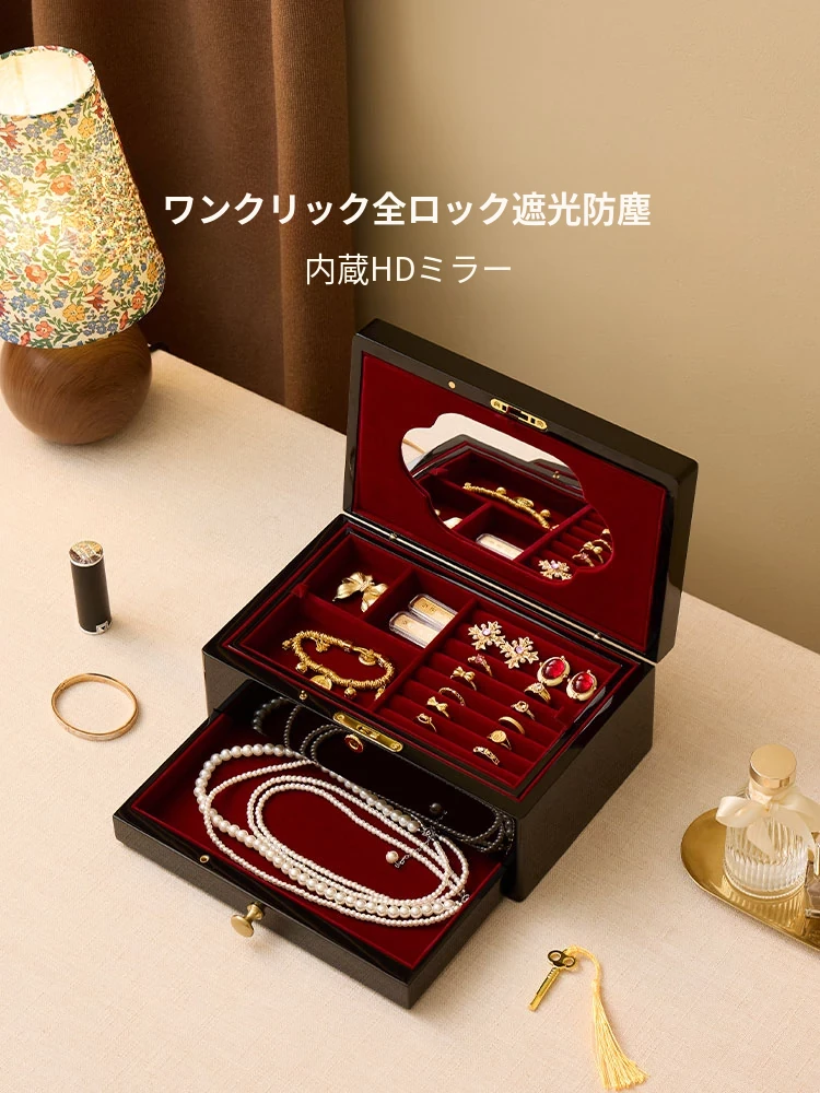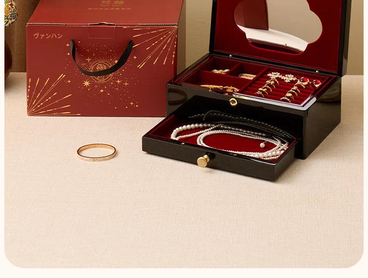 ヴァンハン ロック付き鏡付き高級焼き付けジュエリーボックス - 結婚式や新年、バレンタインデーにぴったりな贈り物!大切な宝石を美しく収納。