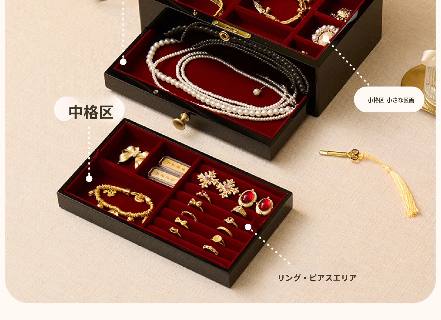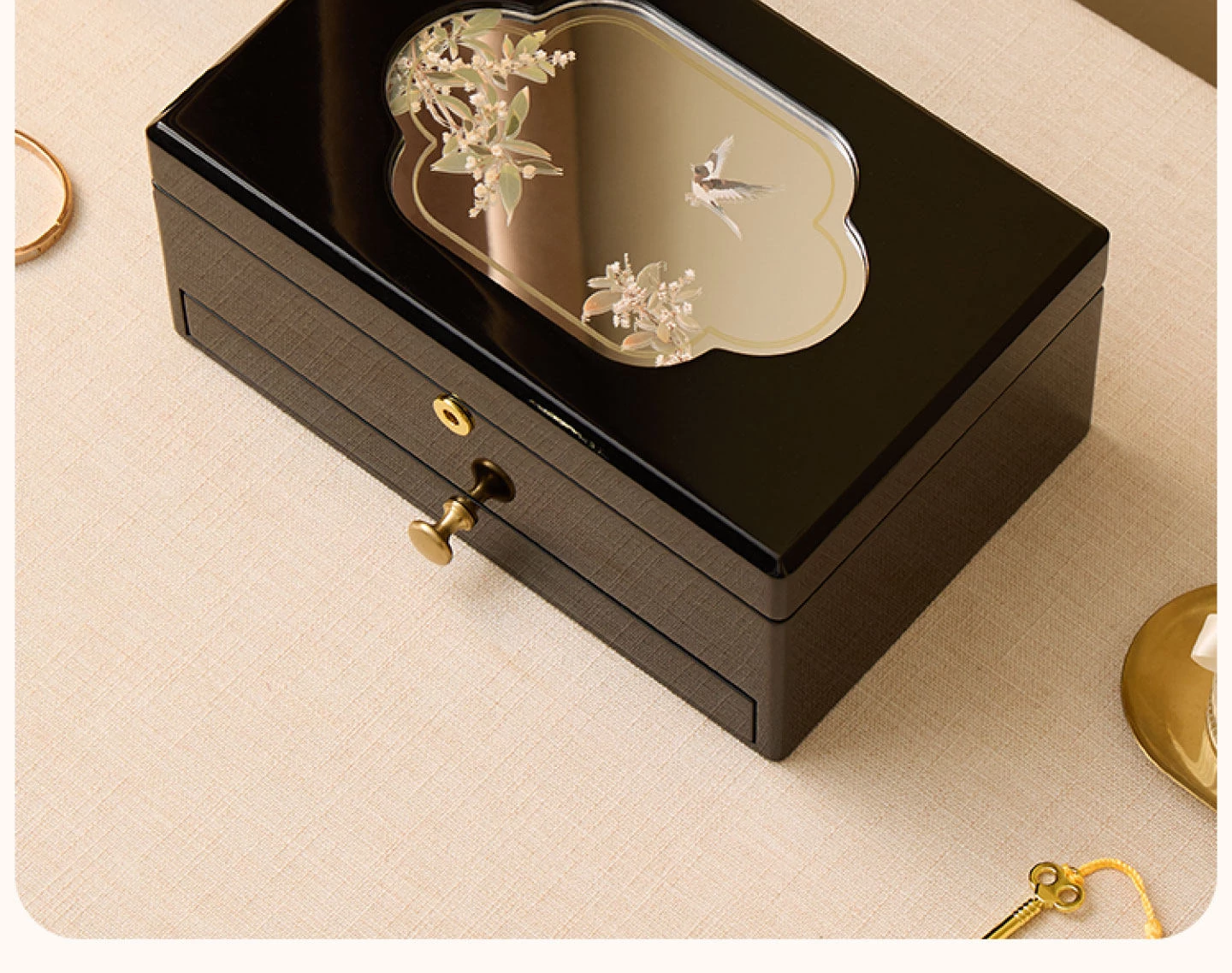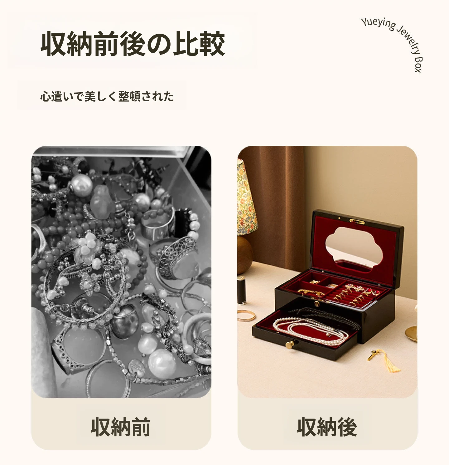ヴァンハン ロック付き鏡付き高級焼き付けジュエリーボックス - 結婚式や新年、バレンタインデーにぴったりな贈り物!大切な宝石を美しく収納。