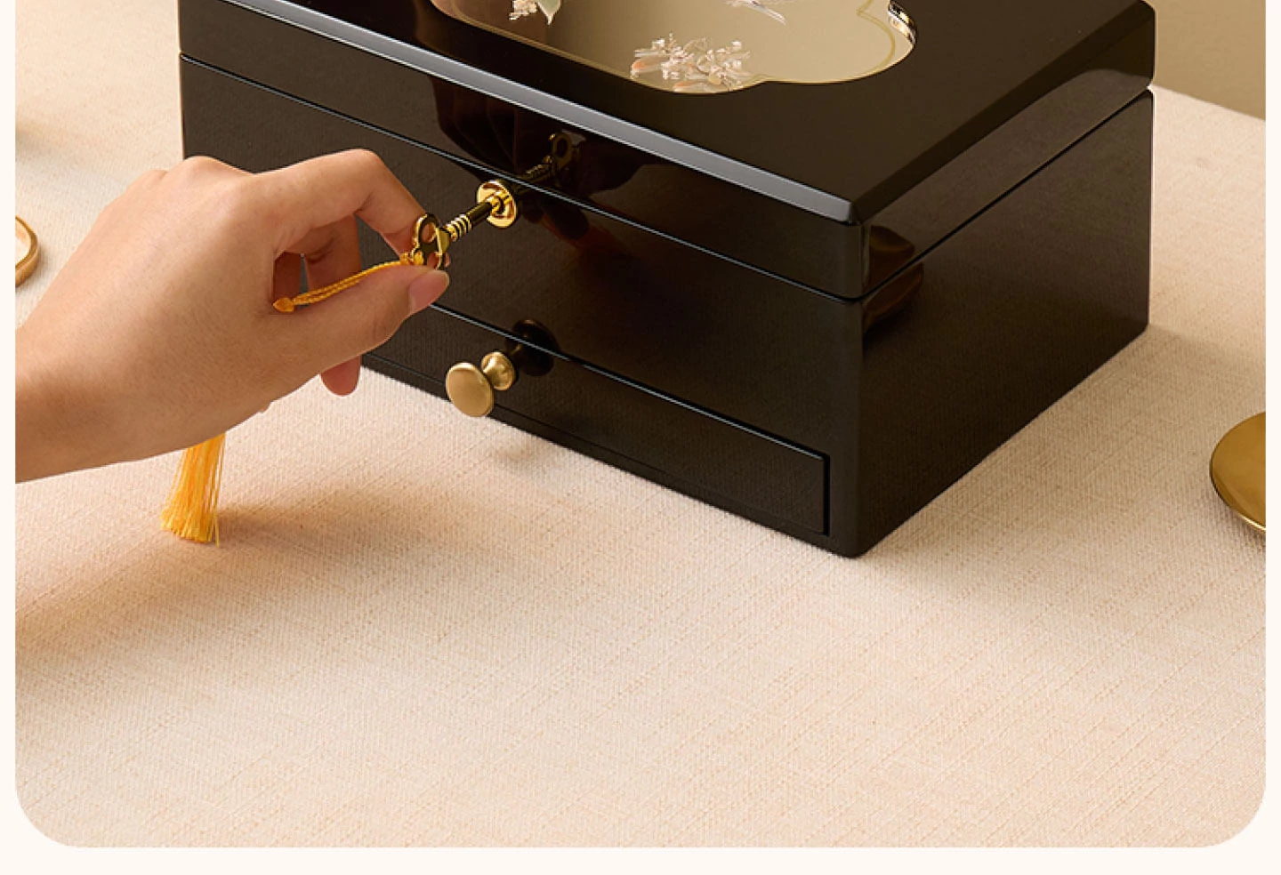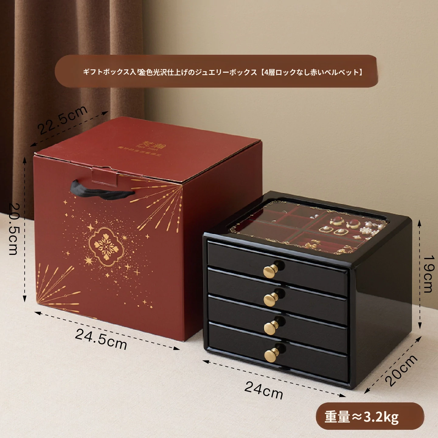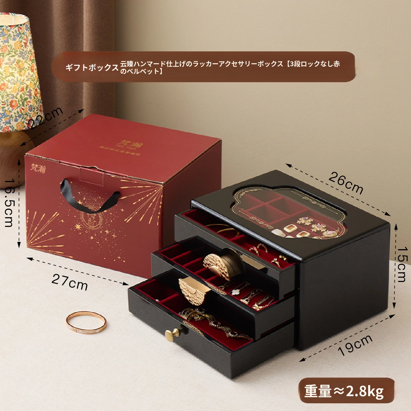 塗装ジュエリーボックス ゴールデンラッキー型 赤ベルベット ギフトボックス入り