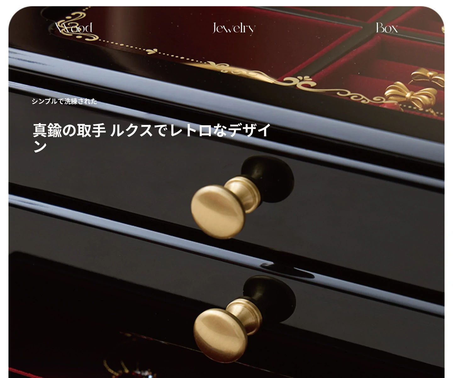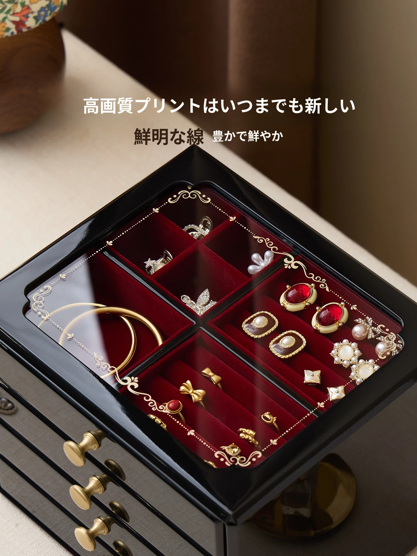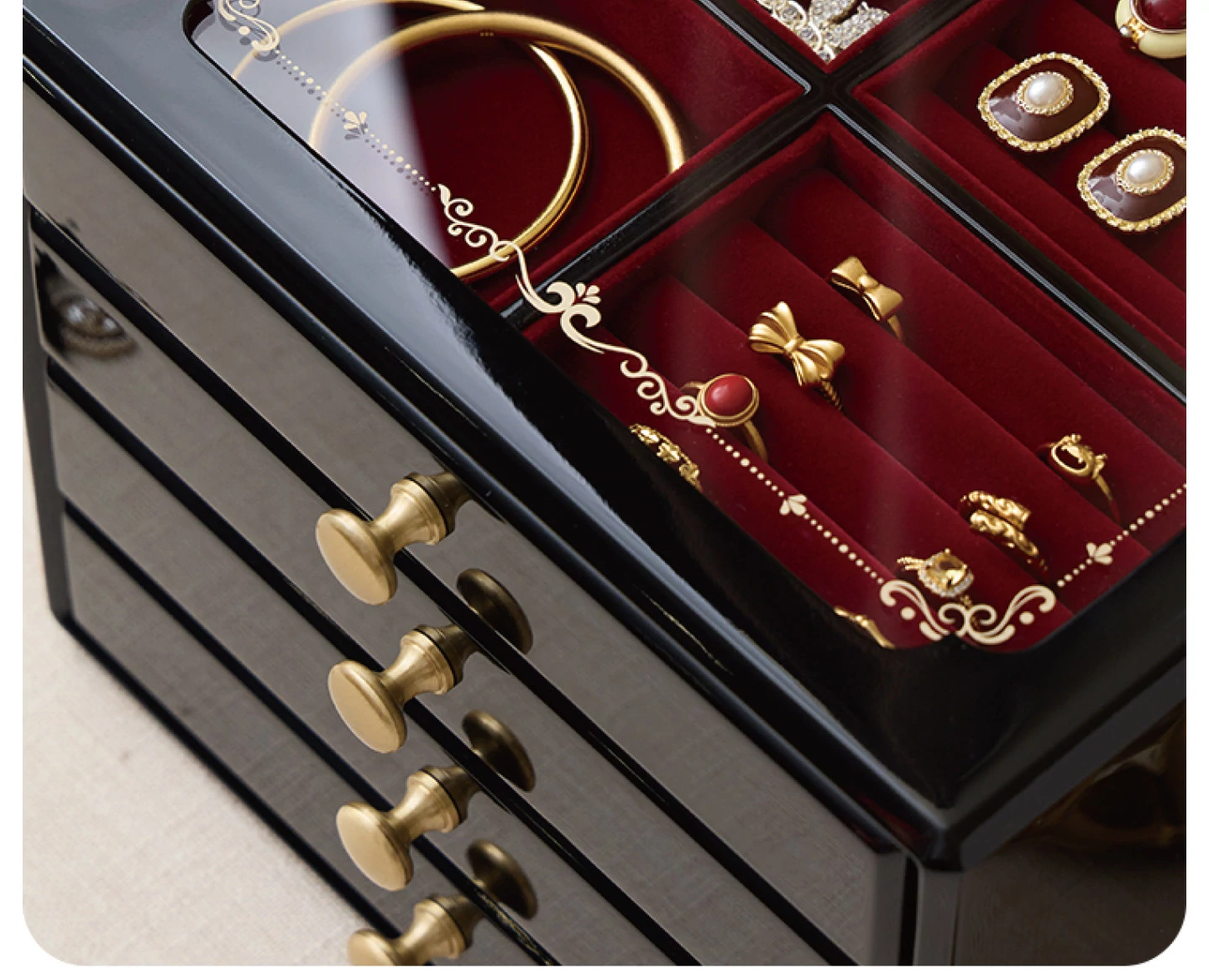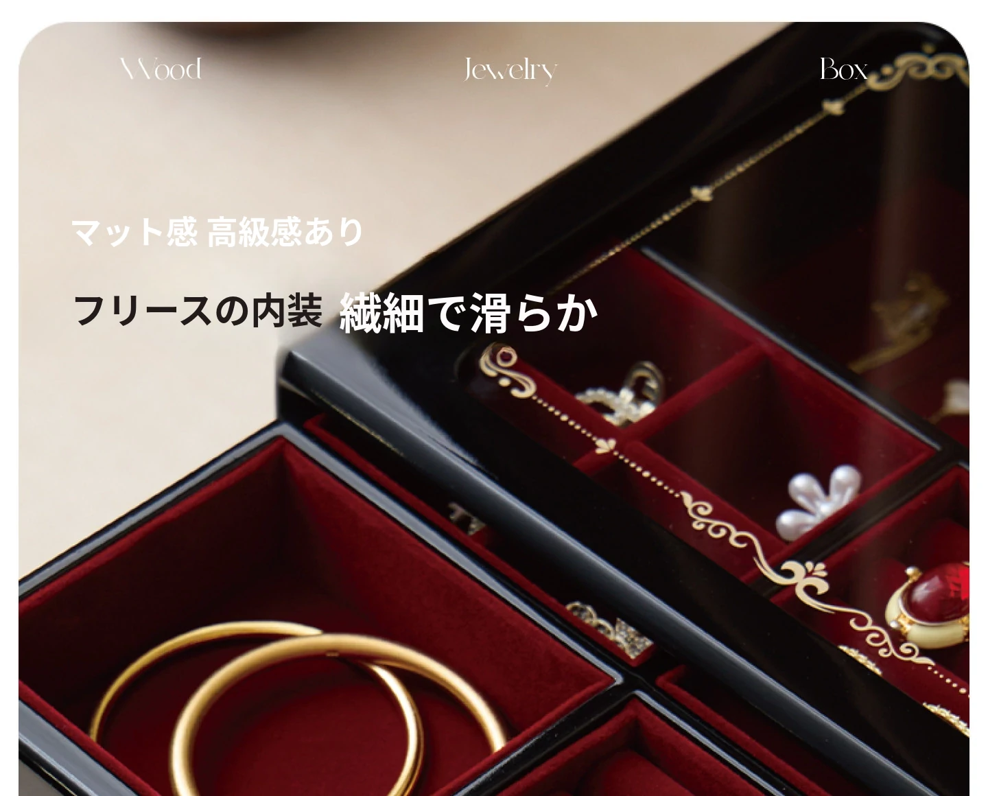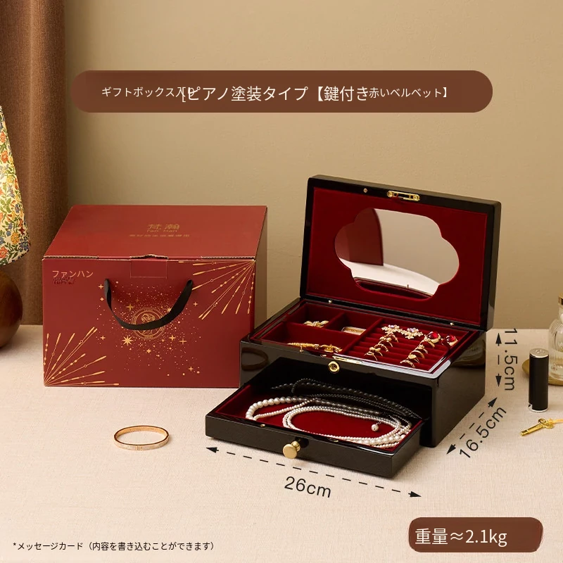 ウッド塗装ジュエリーボックス ゴールドバージョン 赤いベルベット布 ギフトボックス付き