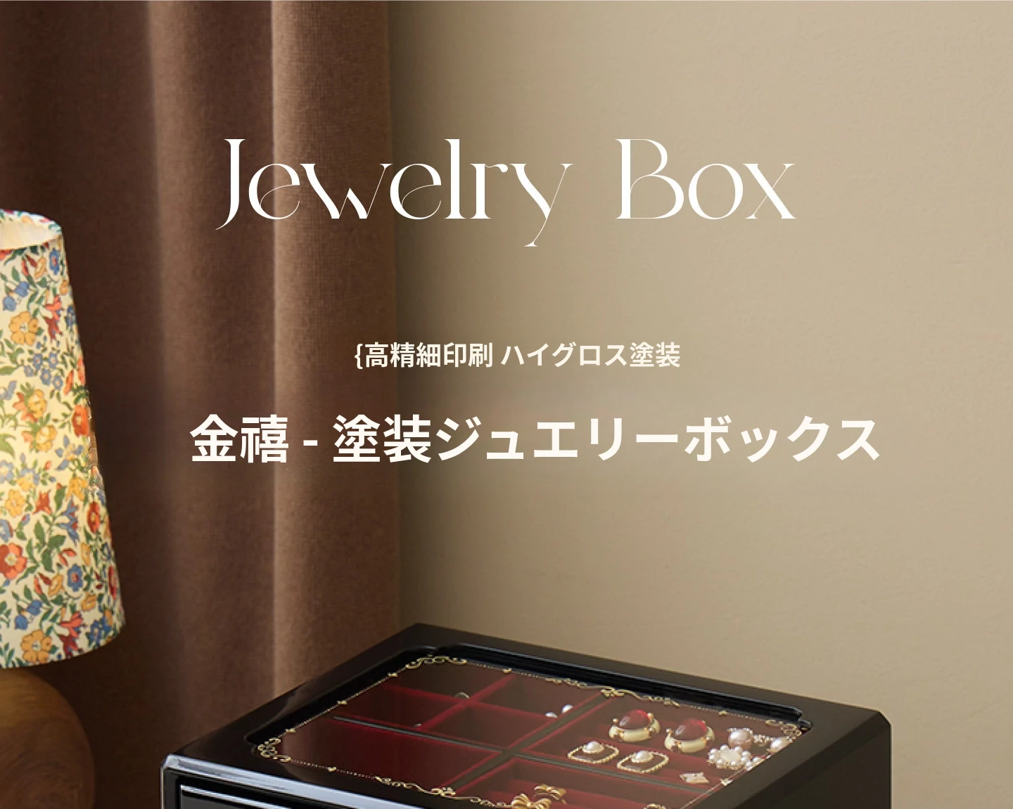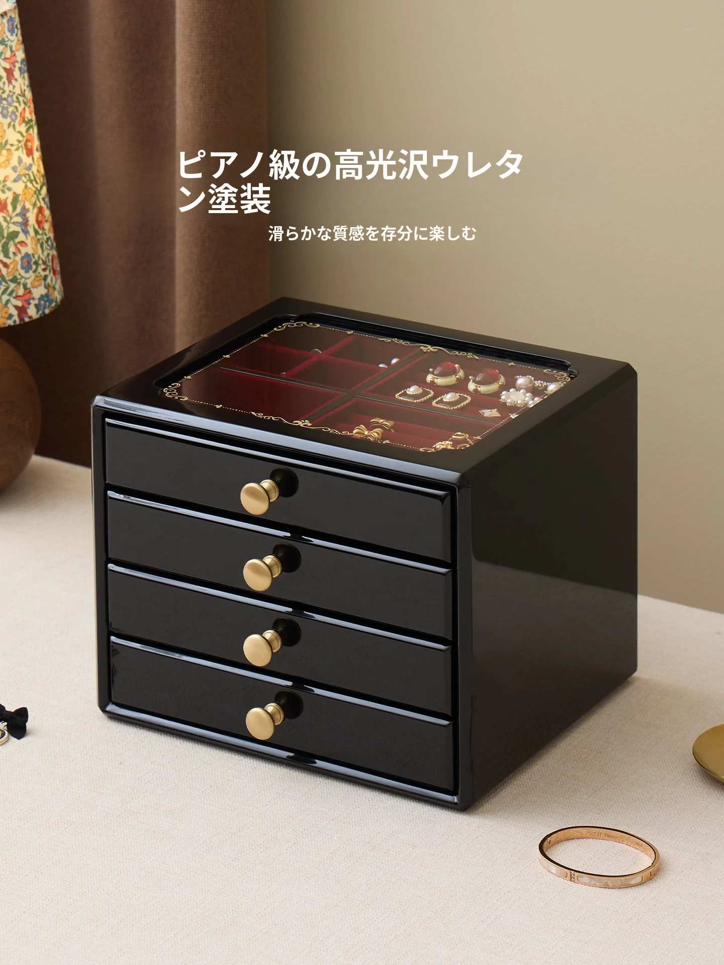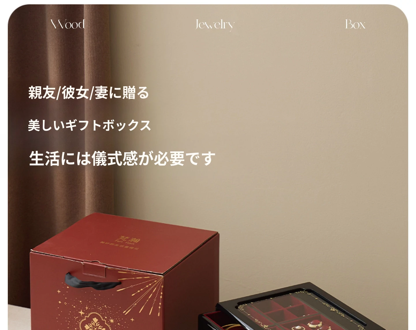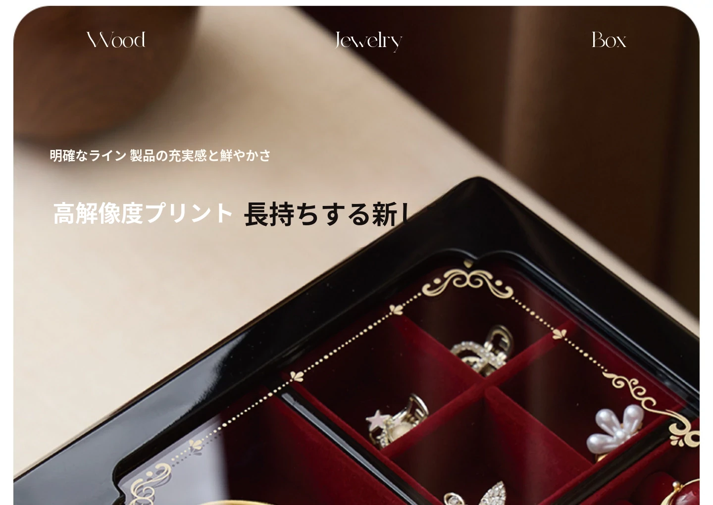 ウッド塗装ジュエリーボックス ゴールドバージョン 赤いベルベット布 ギフトボックス付き
