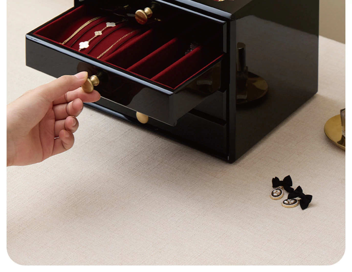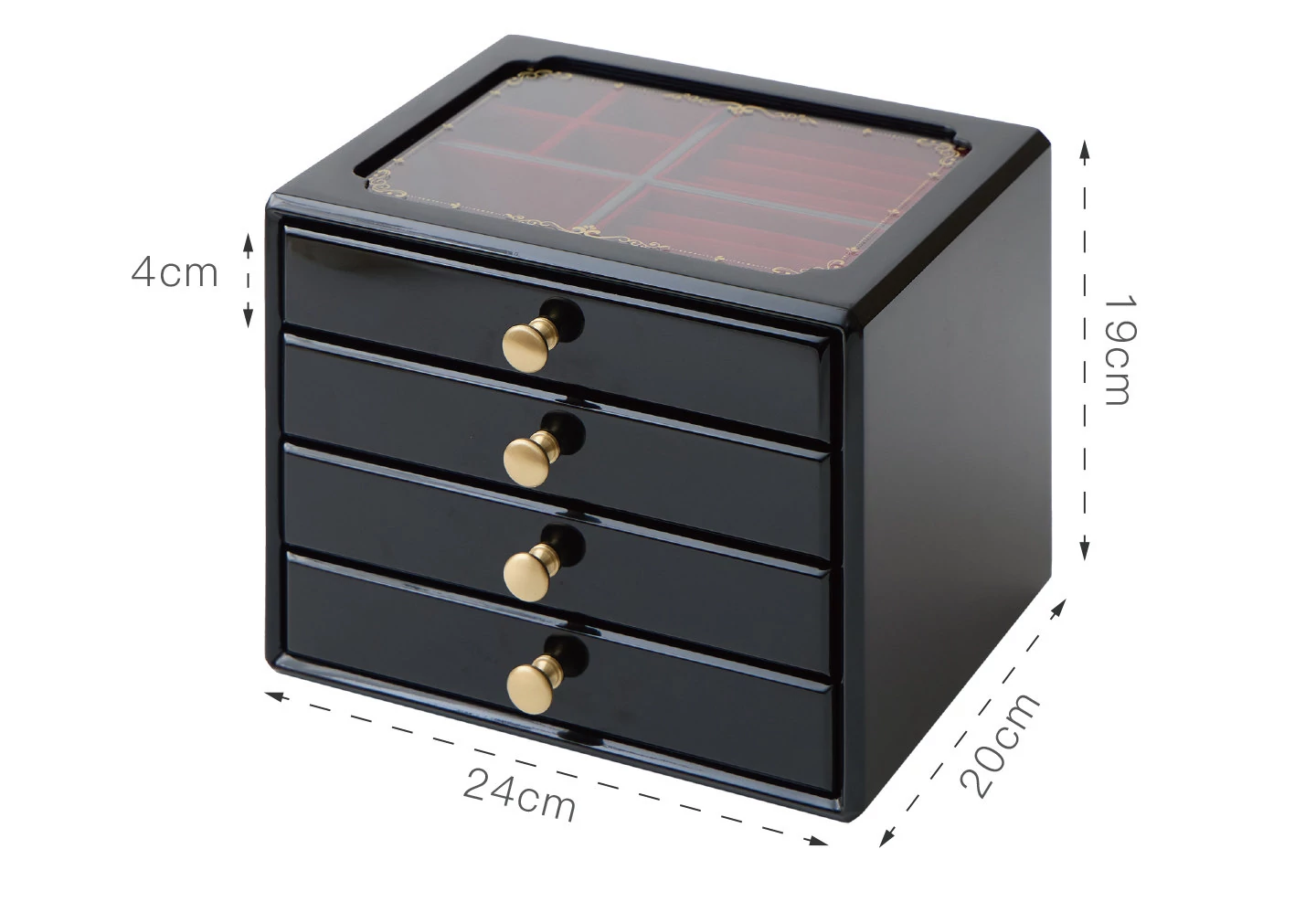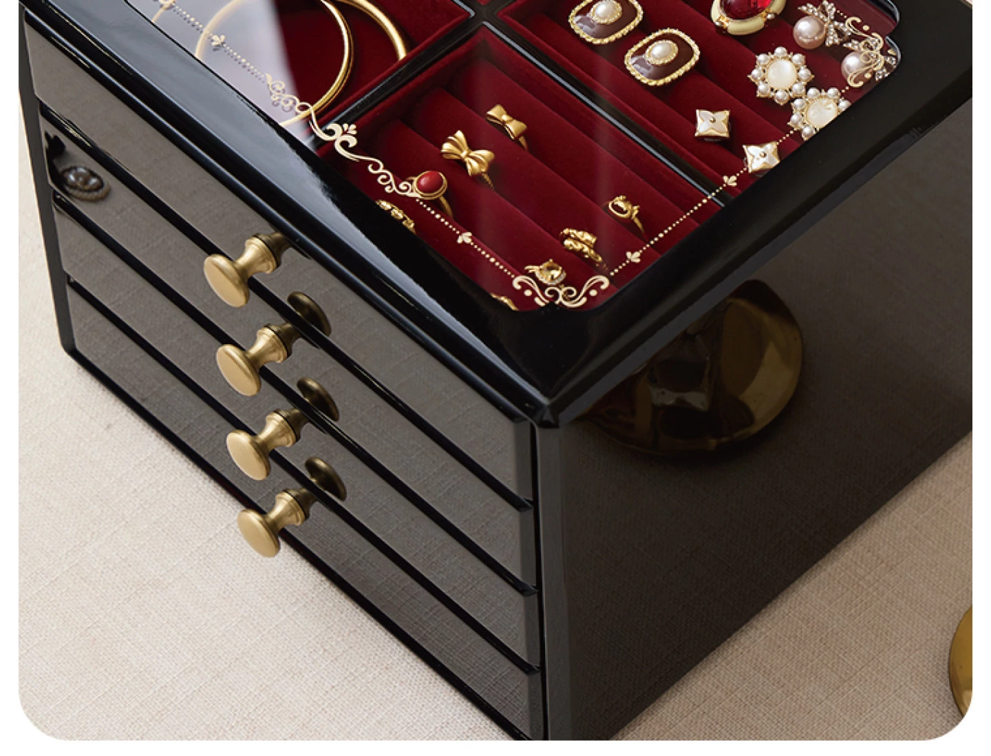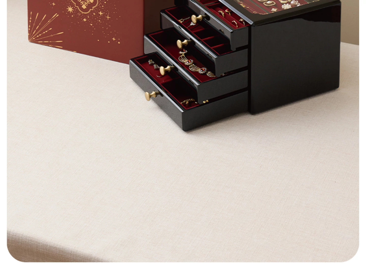 ウッド塗装ジュエリーボックス ゴールドバージョン 赤いベルベット布 ギフトボックス付き