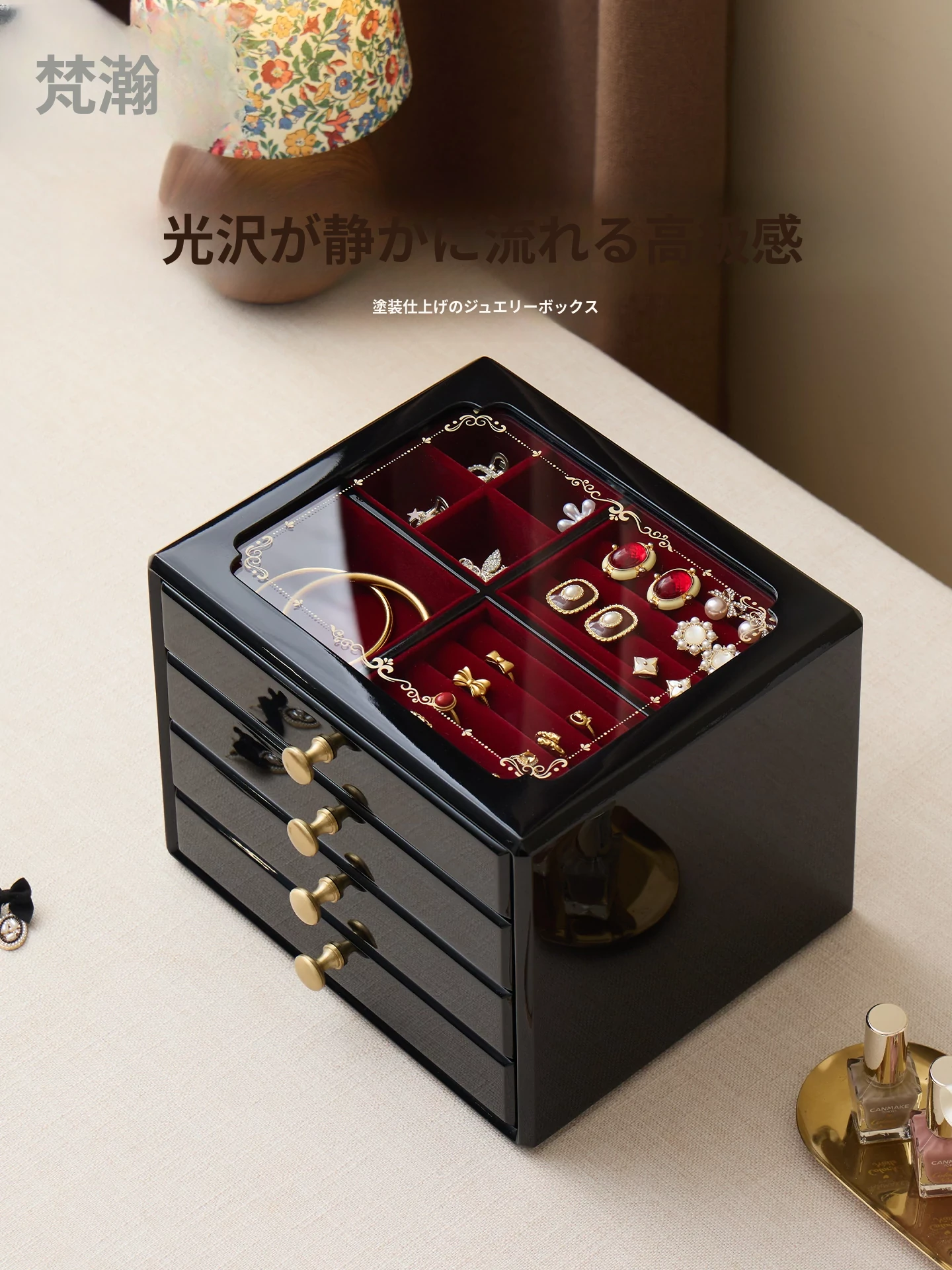 ヴァンハン 高級焼き付けジュエリーボックス 誕生日・新婚・バレンタインにぴったりな贅沢ギフト ゴールドジュエリーの収納ボックス
