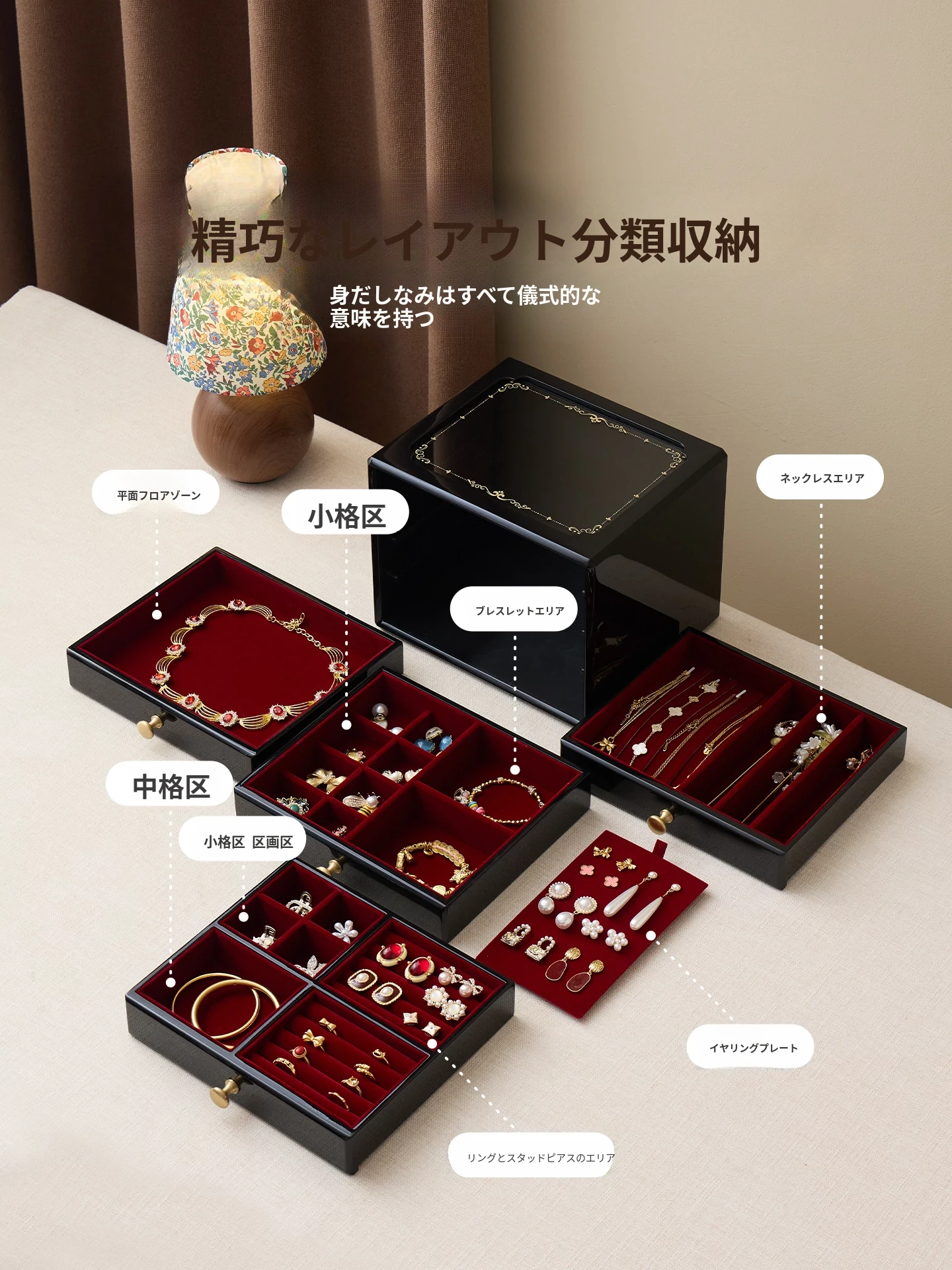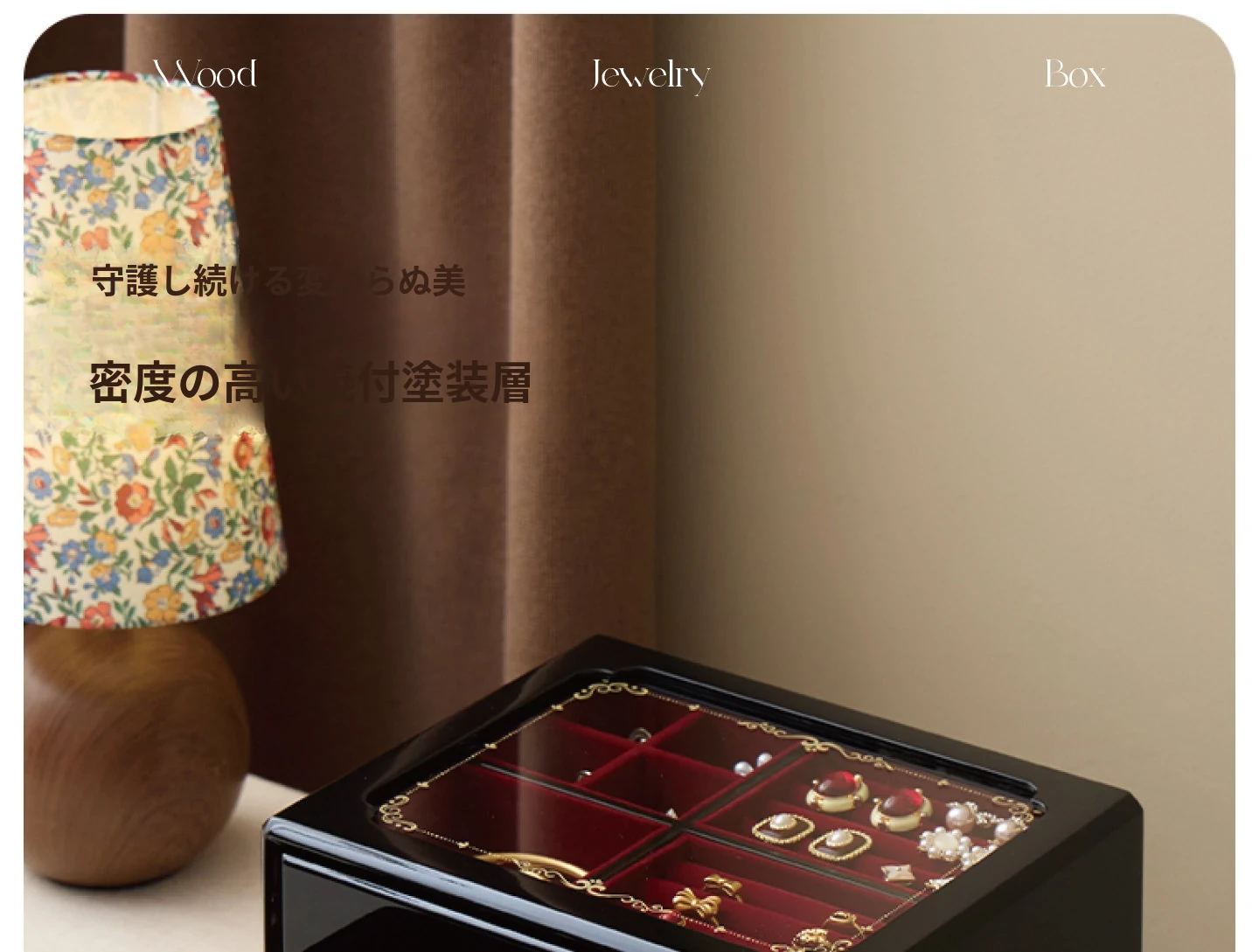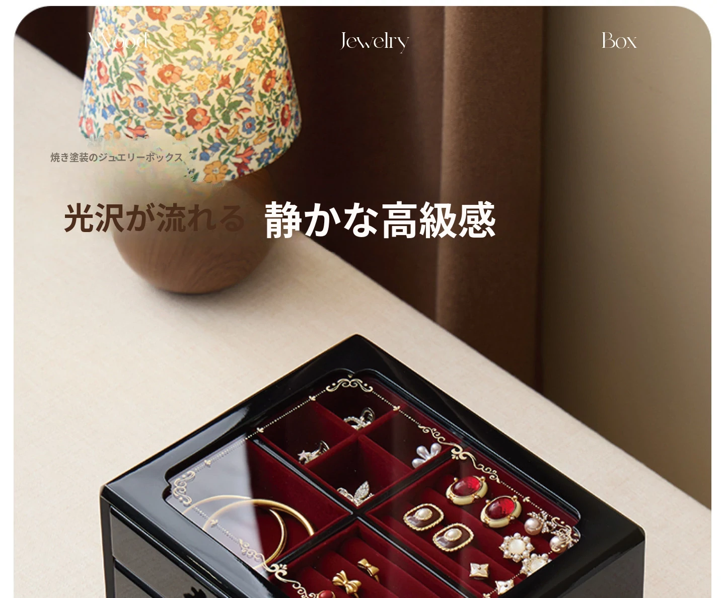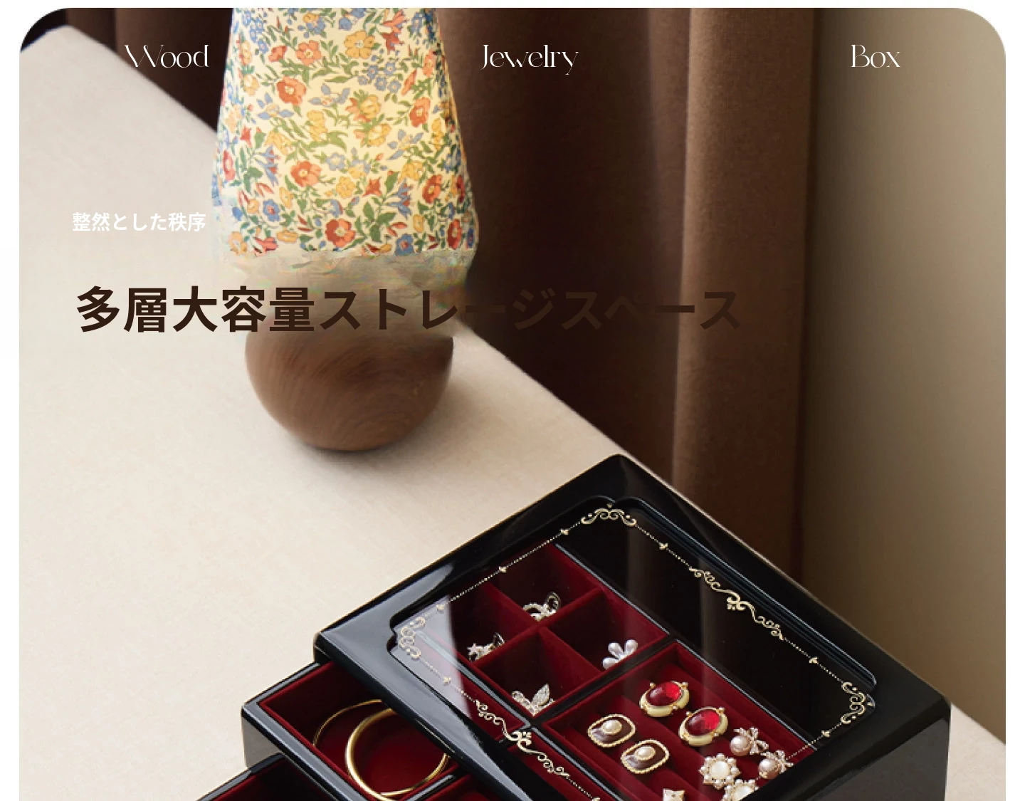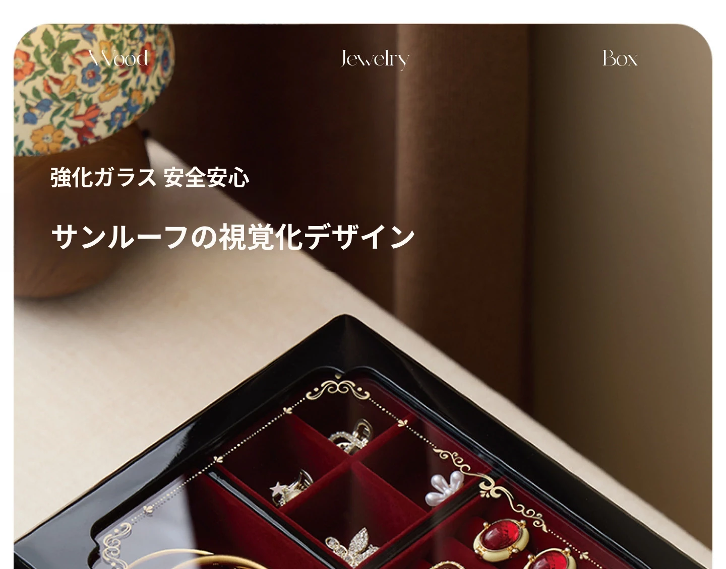 ウッド塗装ジュエリーボックス ウィンドウフラワー 赤いベルベット布 ギフトボックス付き