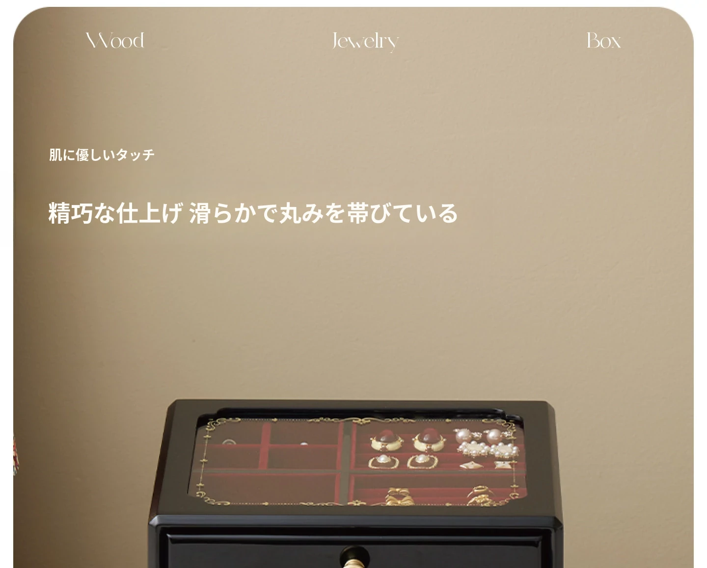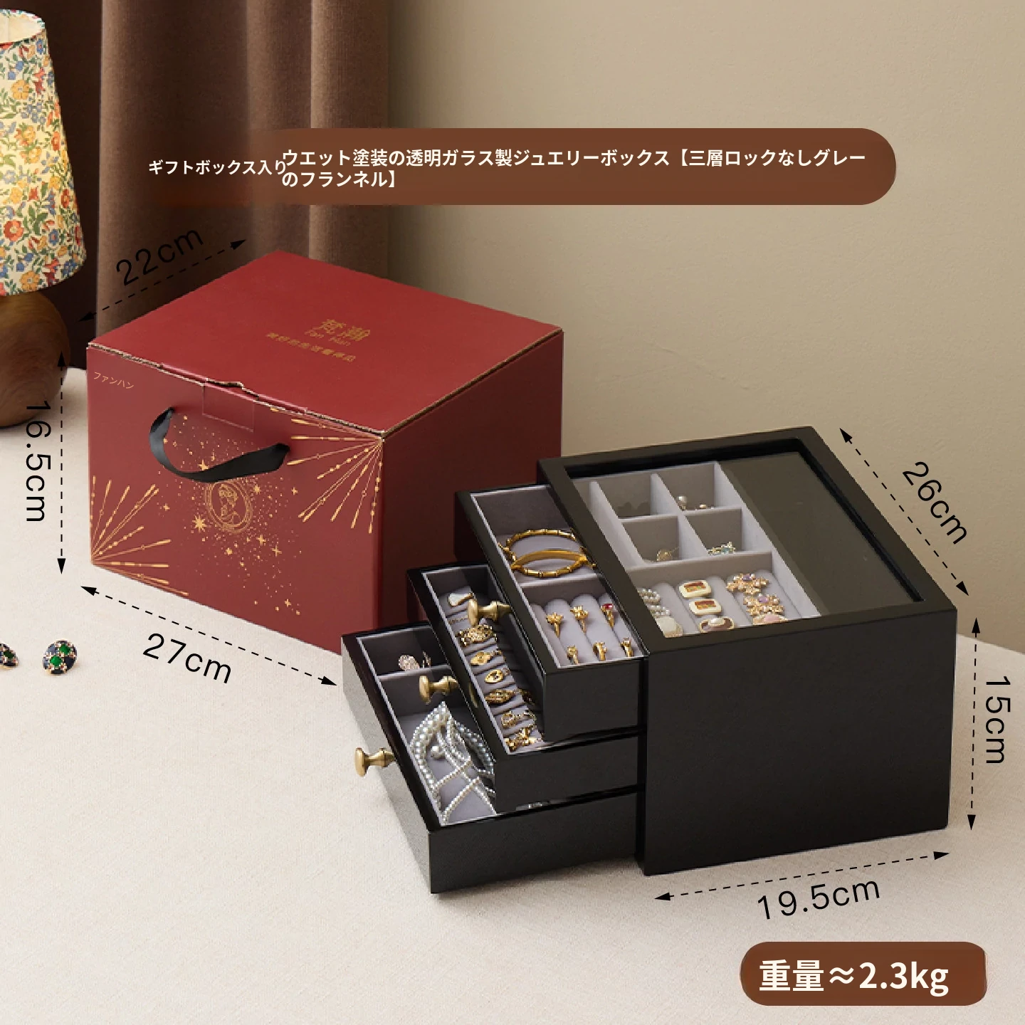 ウッド塗装ジュエリーボックス ガラスバージョン グレーのベルベット布 ギフトボックス付き