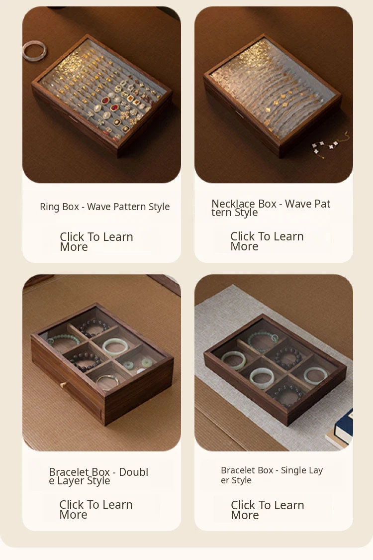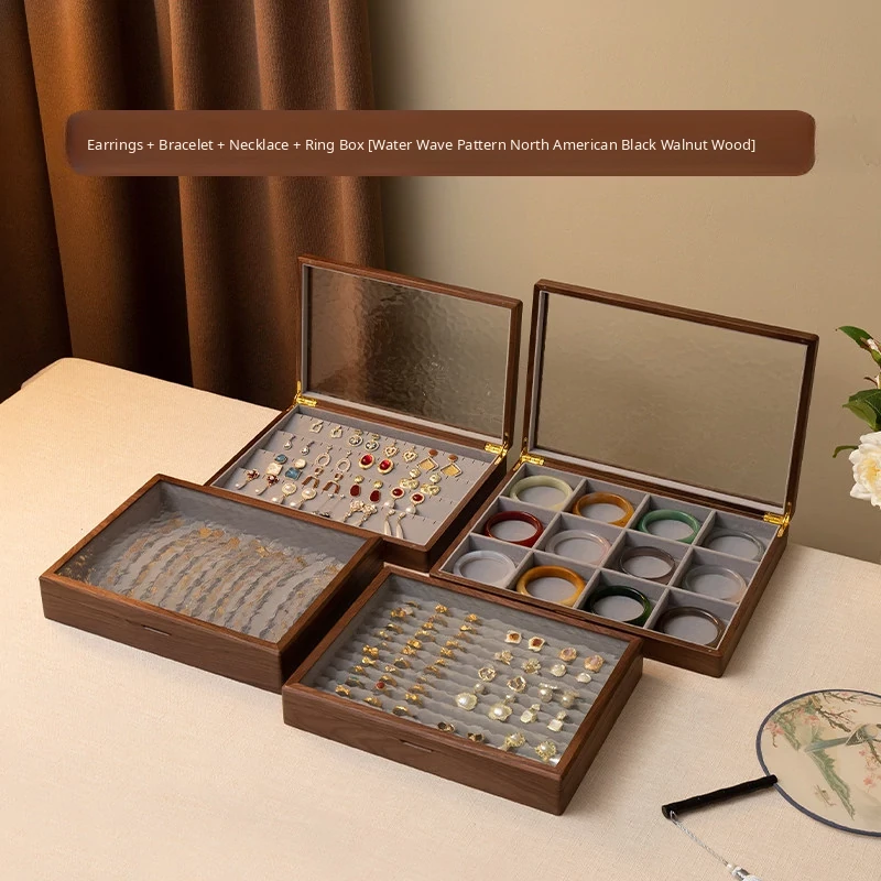 Bracelet Box + Necklace Box + Ring Box + Earring Box North American Black Walnut