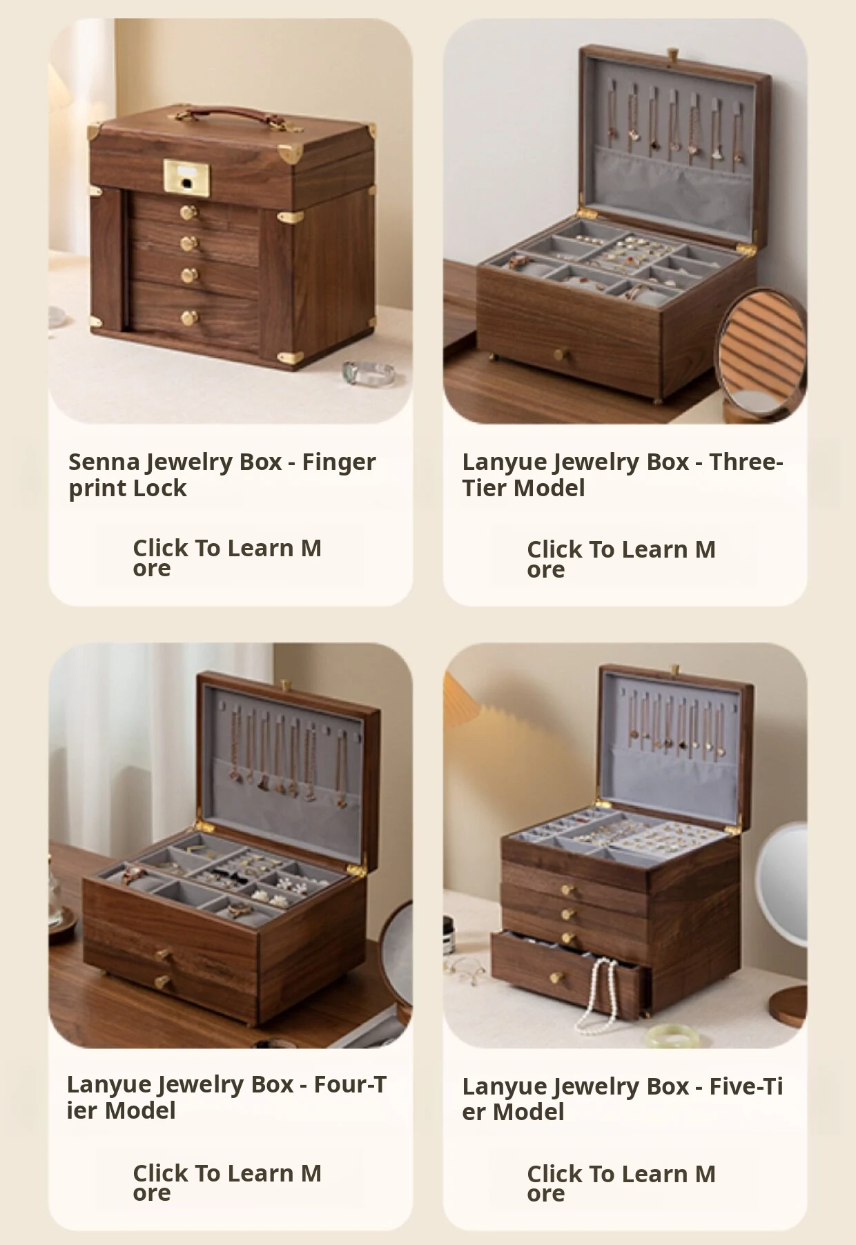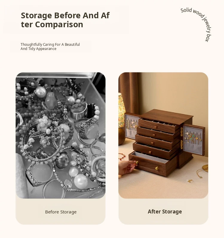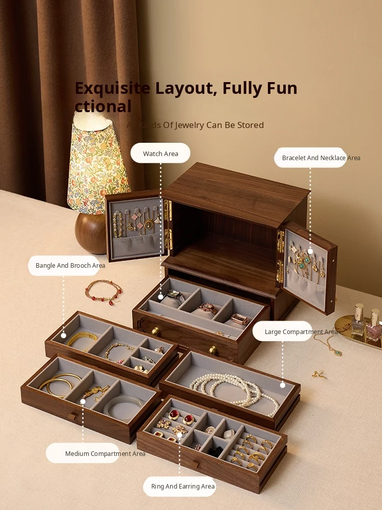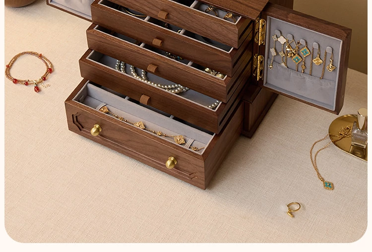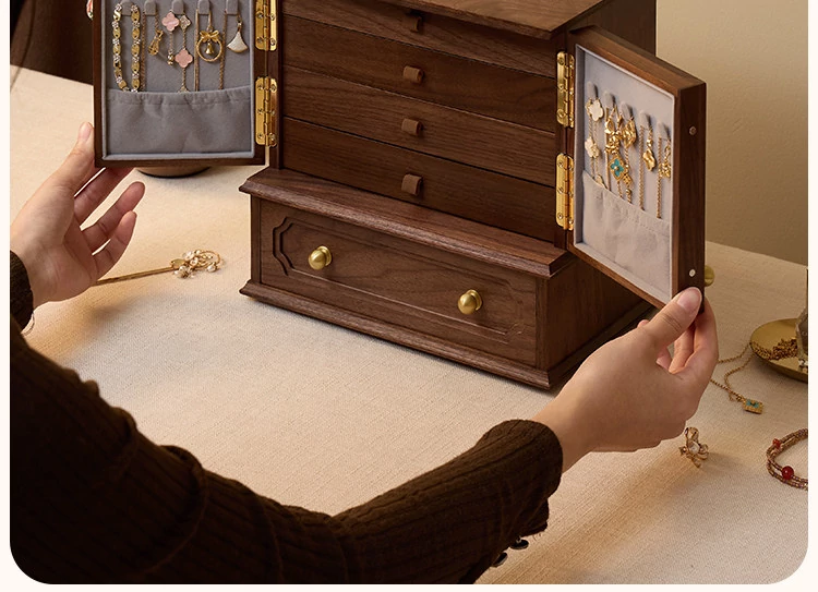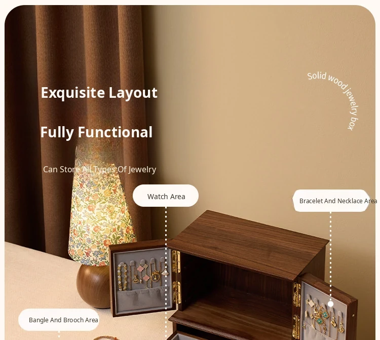 Vanhan Luxury Wooden Jewelry Box - Elegant Storage Organizer for Necklaces, Earrings, Rings, and Gold Accessories - Perfect New Year Gift