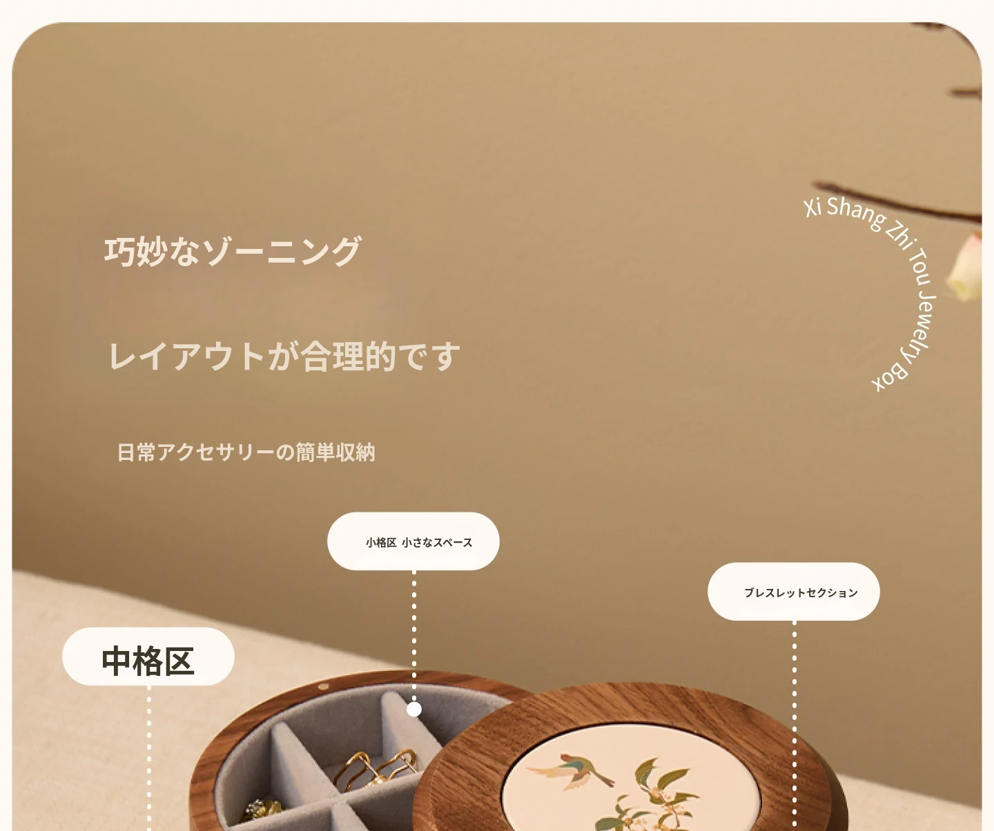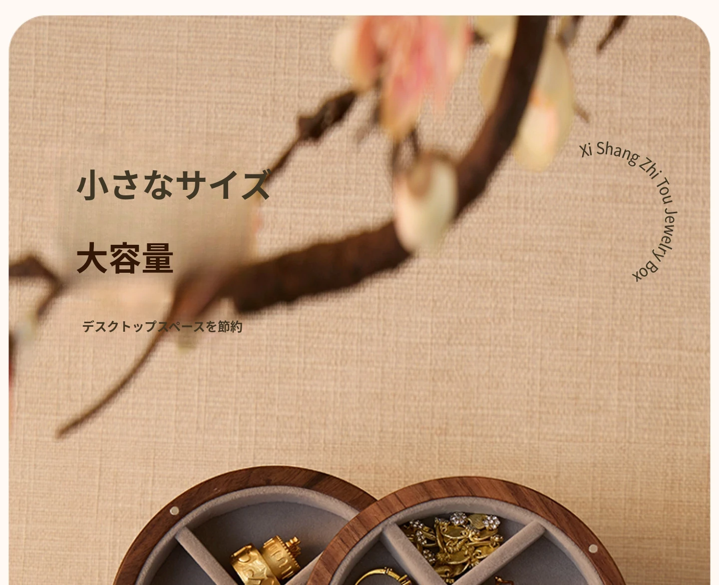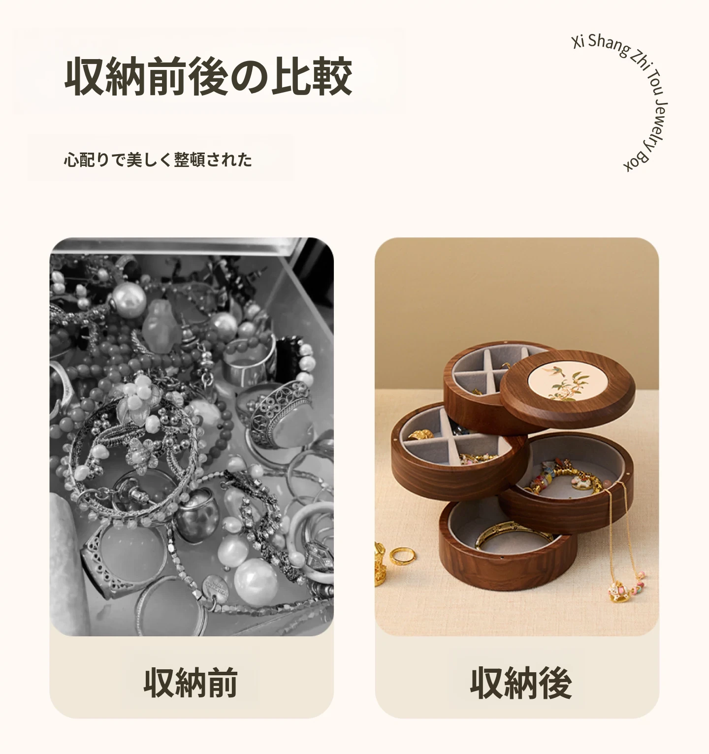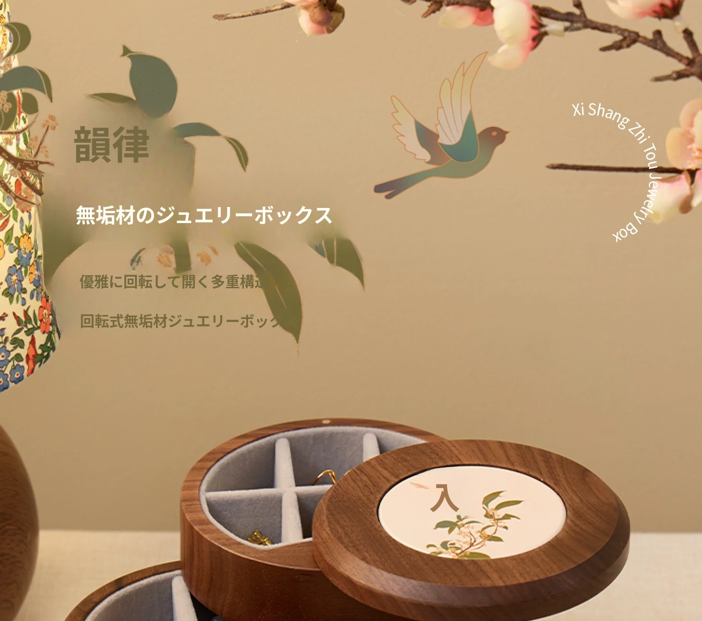 ヴァンハン 多層回転ジュエリーボックス 高級感溢れる無垢材製 結婚・新年・バレンタインに最適なゴールドアクセサリー収納ボックス
