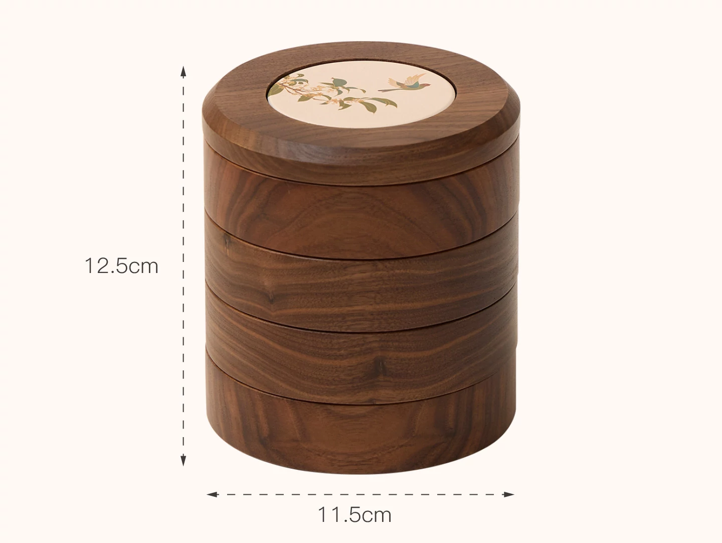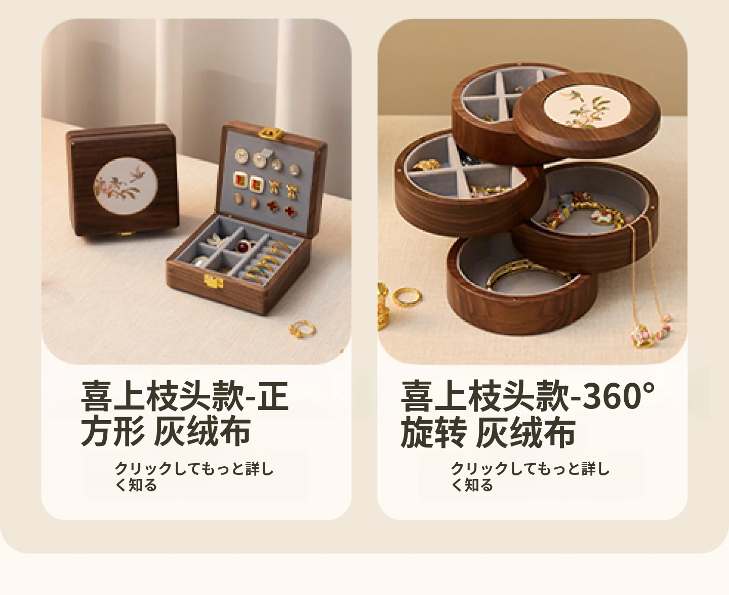 リズムジュエリーボックス 回転タイプ グレーのベルベット 北米黒胡桃 木製【ギフトボックス入り】