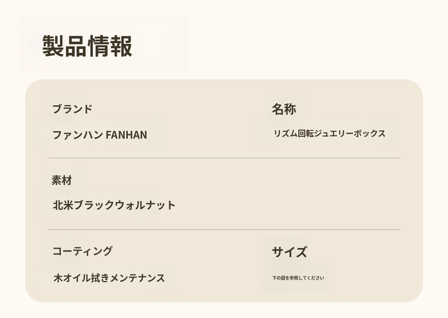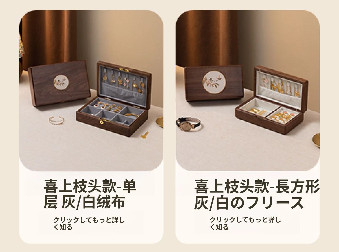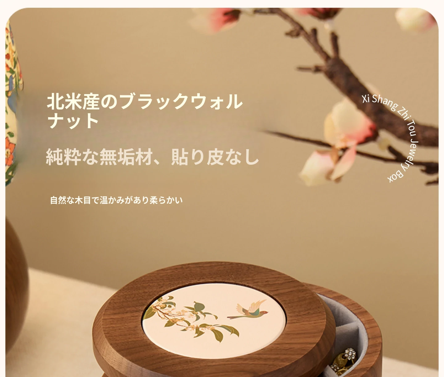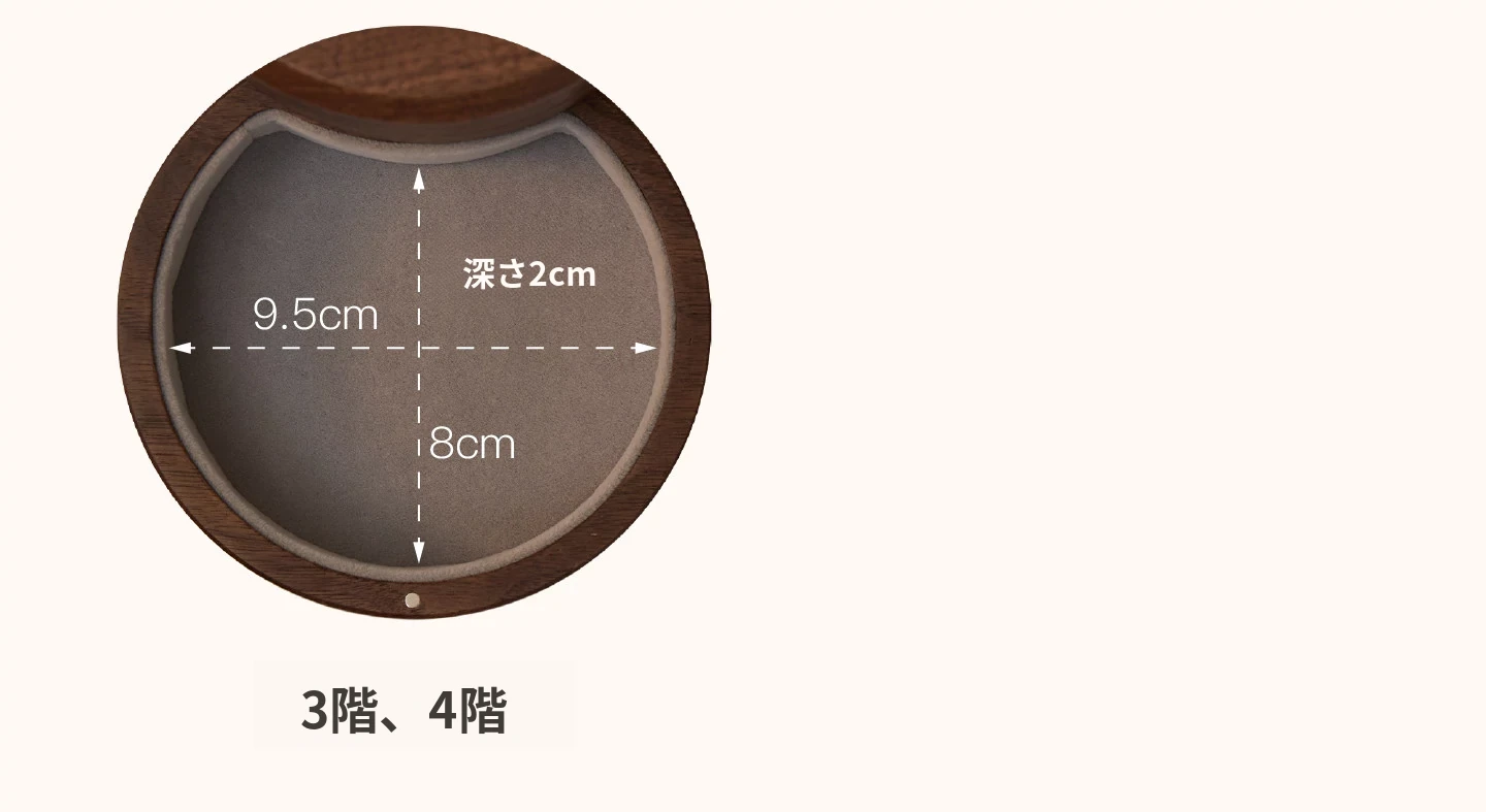 リズムジュエリーボックス 回転タイプ グレーのベルベット 北米黒胡桃 木製