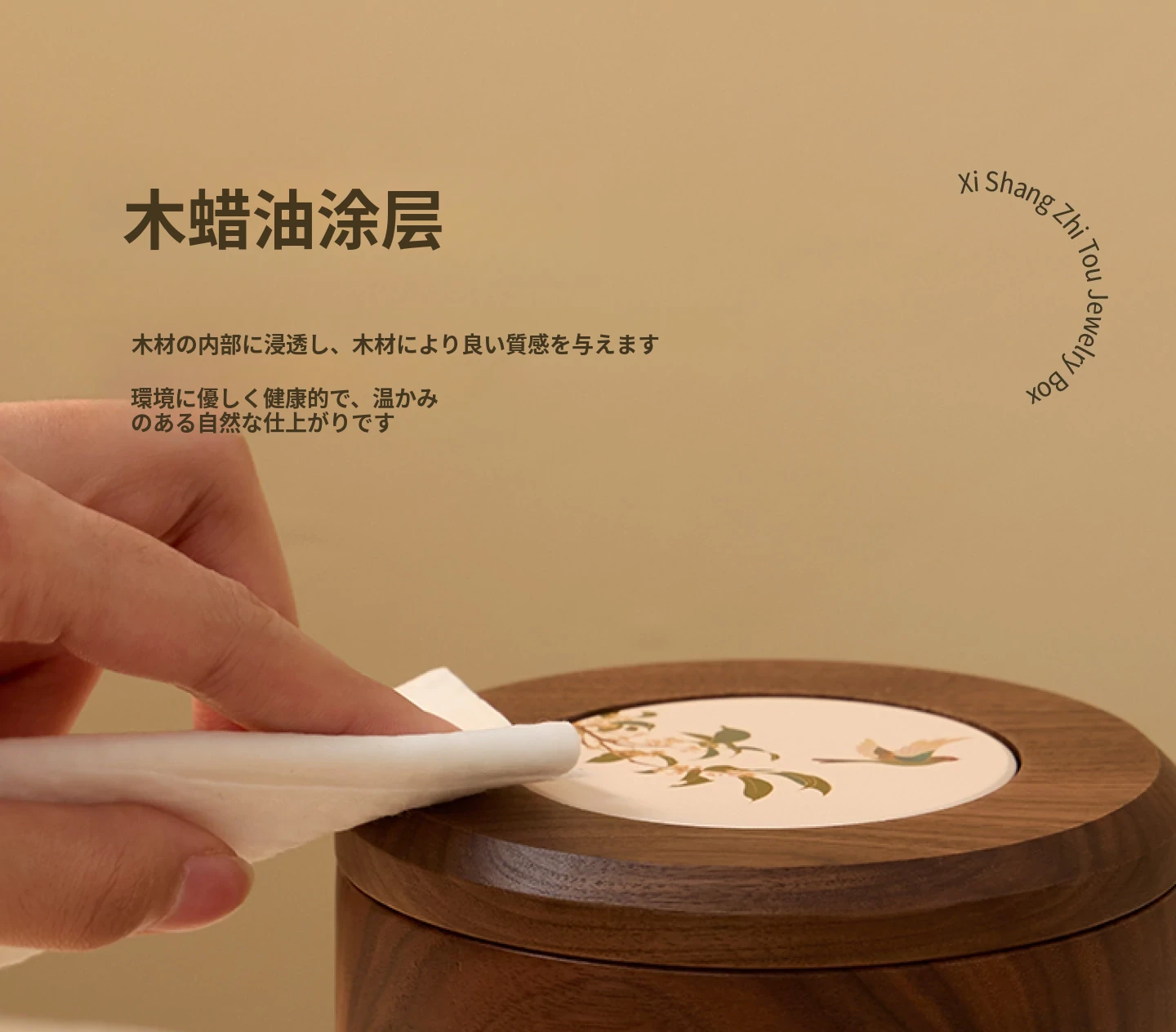 キューブジュエリーボックス セラミックタイプ ホワイトのベルベット 北米黒胡桃 木製