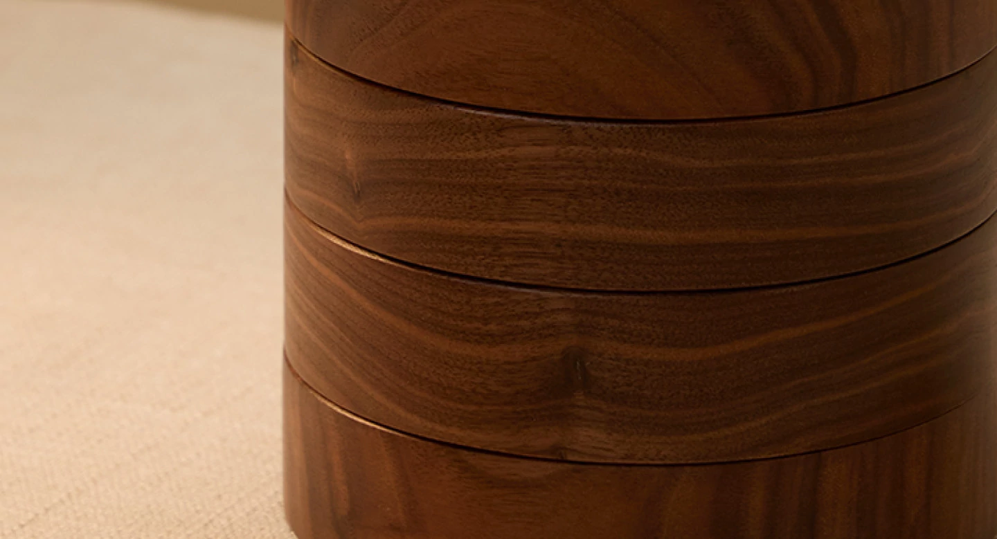 キューブジュエリーボックス セラミックタイプ グレーのベルベット 北米黒胡桃 木製