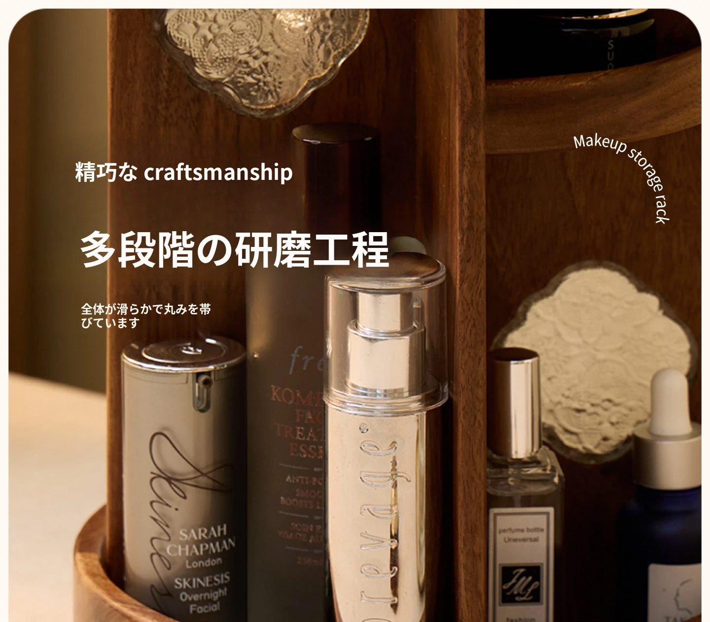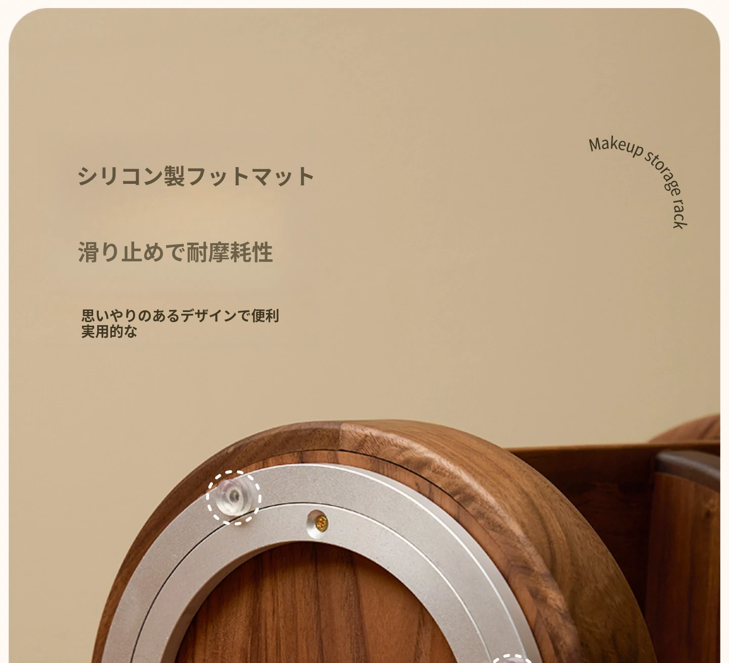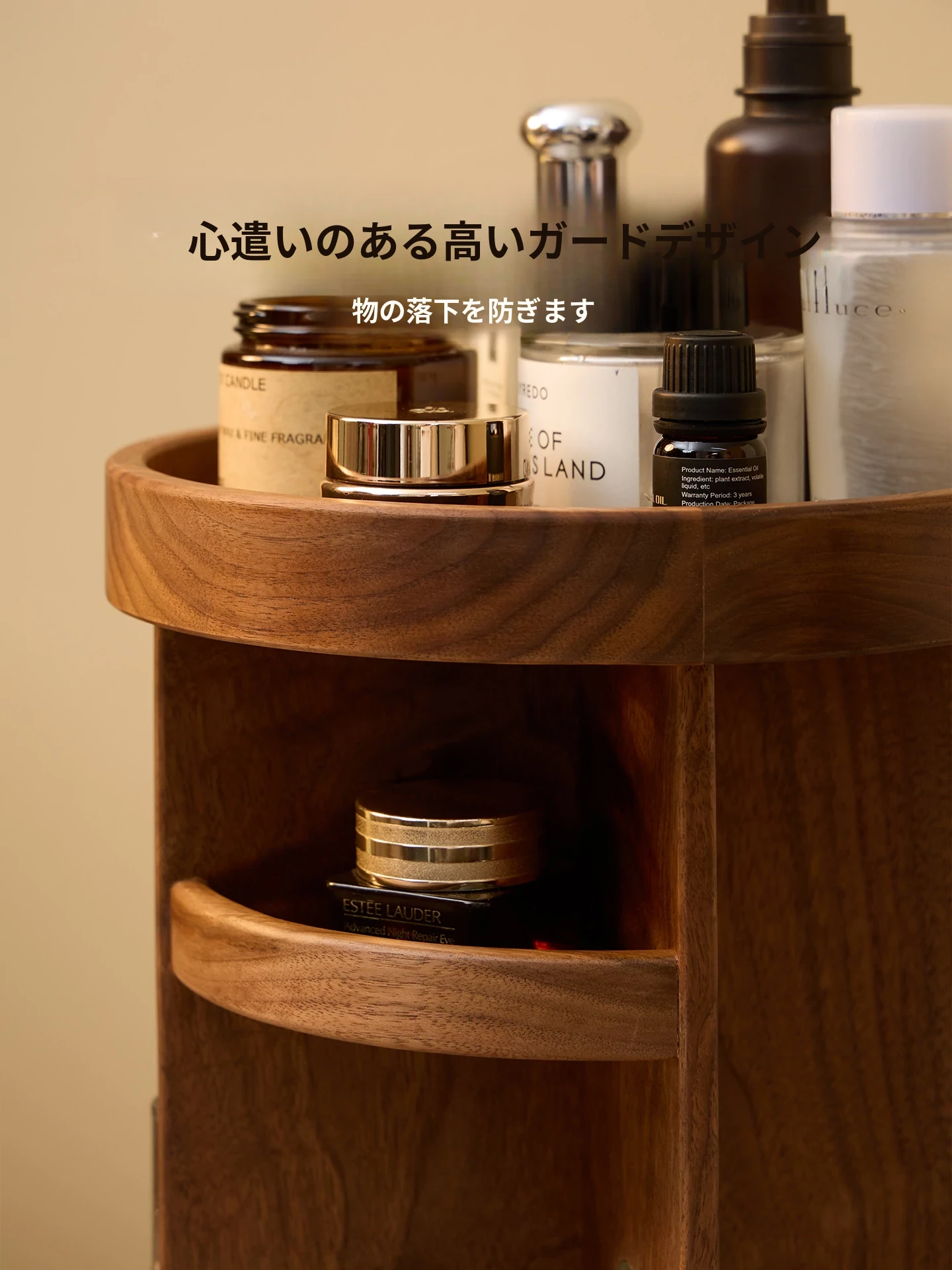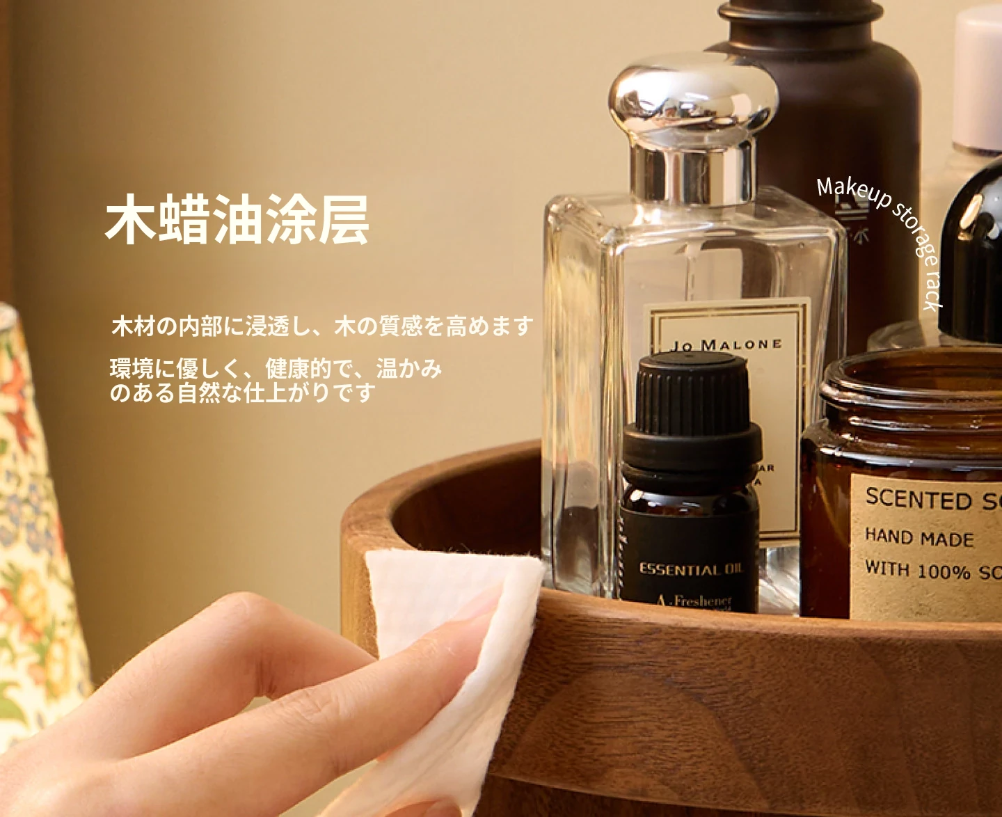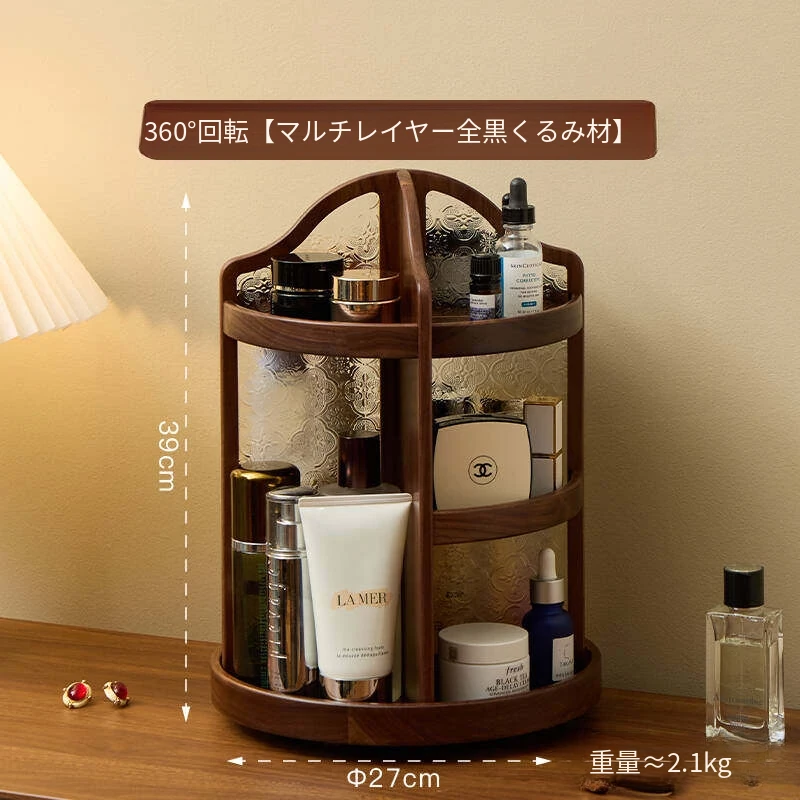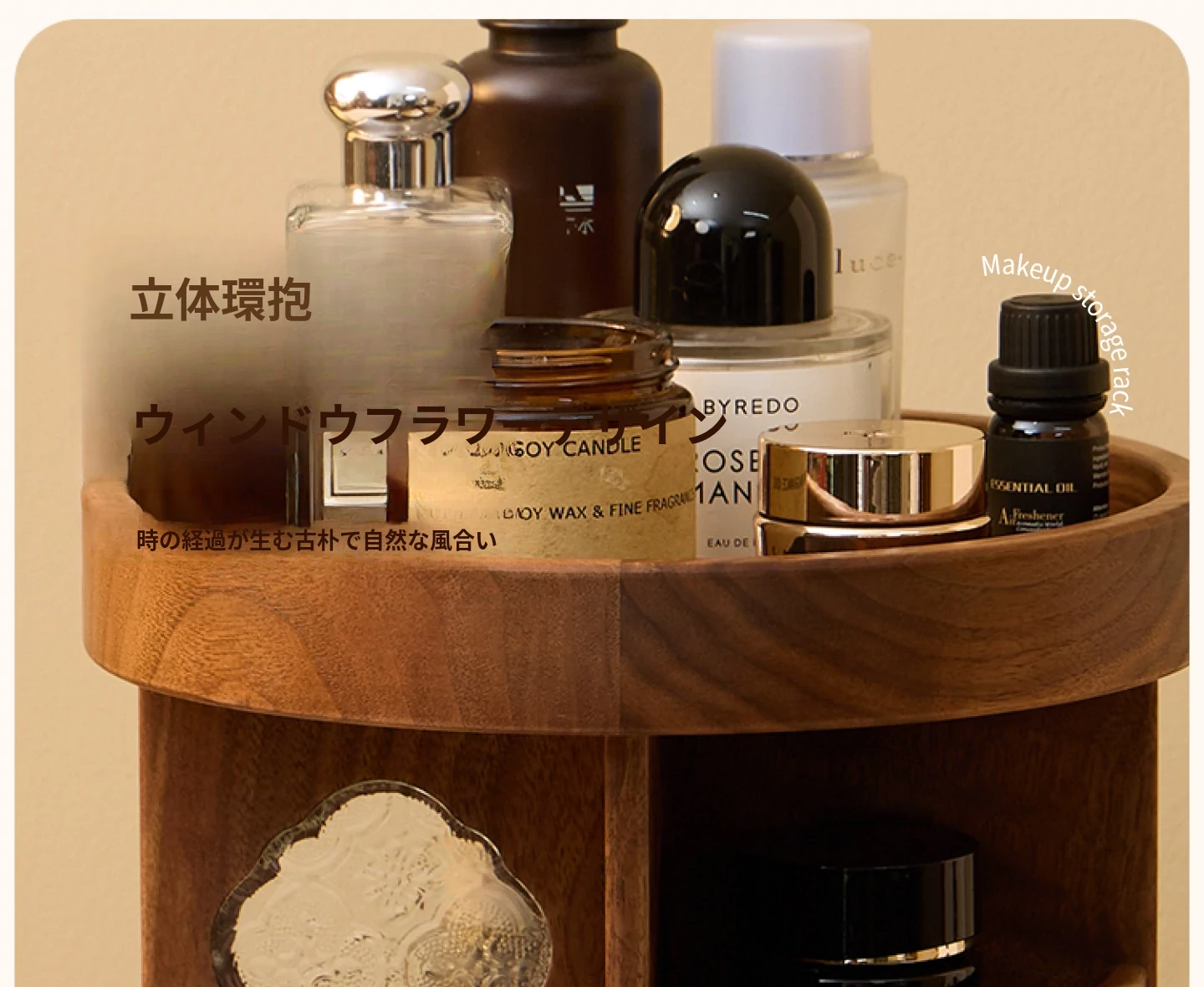 ヴァンハン ブラックウォールナット回転メイクボックス デスクトップ軽奢華収納ラック ドレッサー用スキンケアアイテム収納棚 - 高級感溢れるデザインで、あなたの美容アイテムをスタイリッシュに整理!