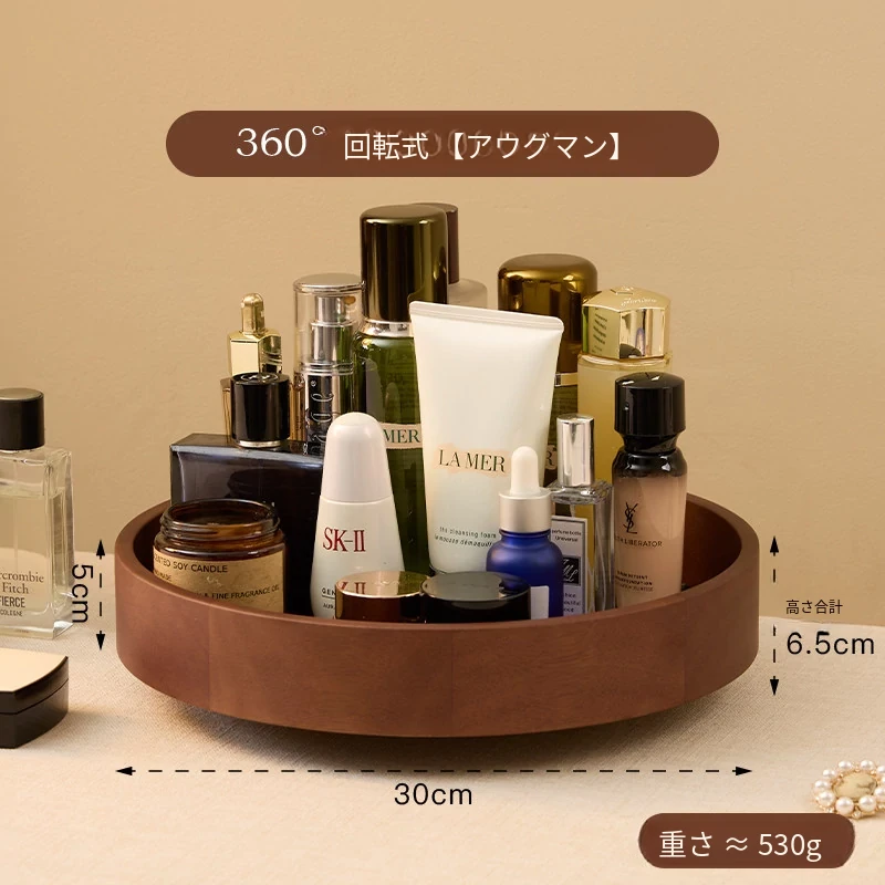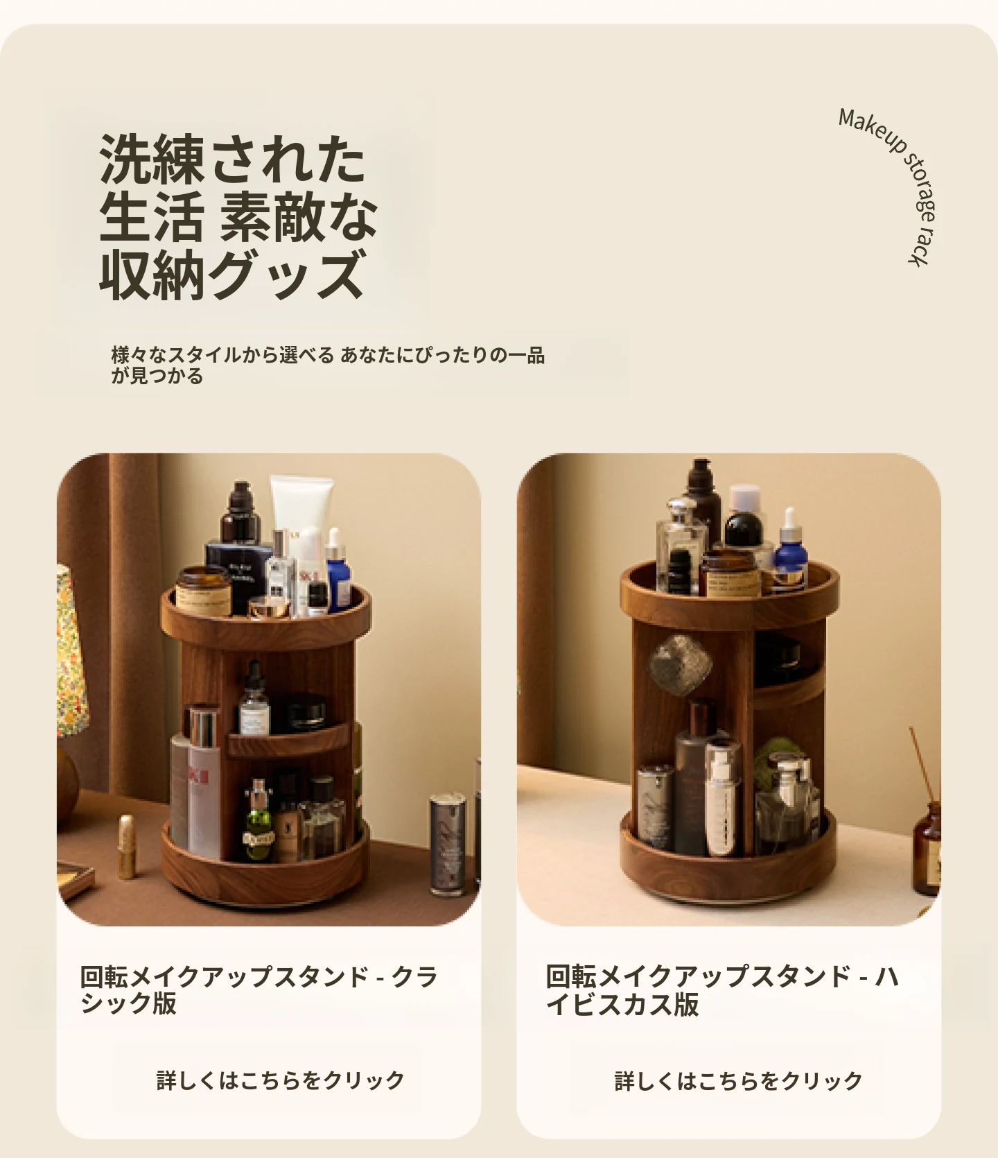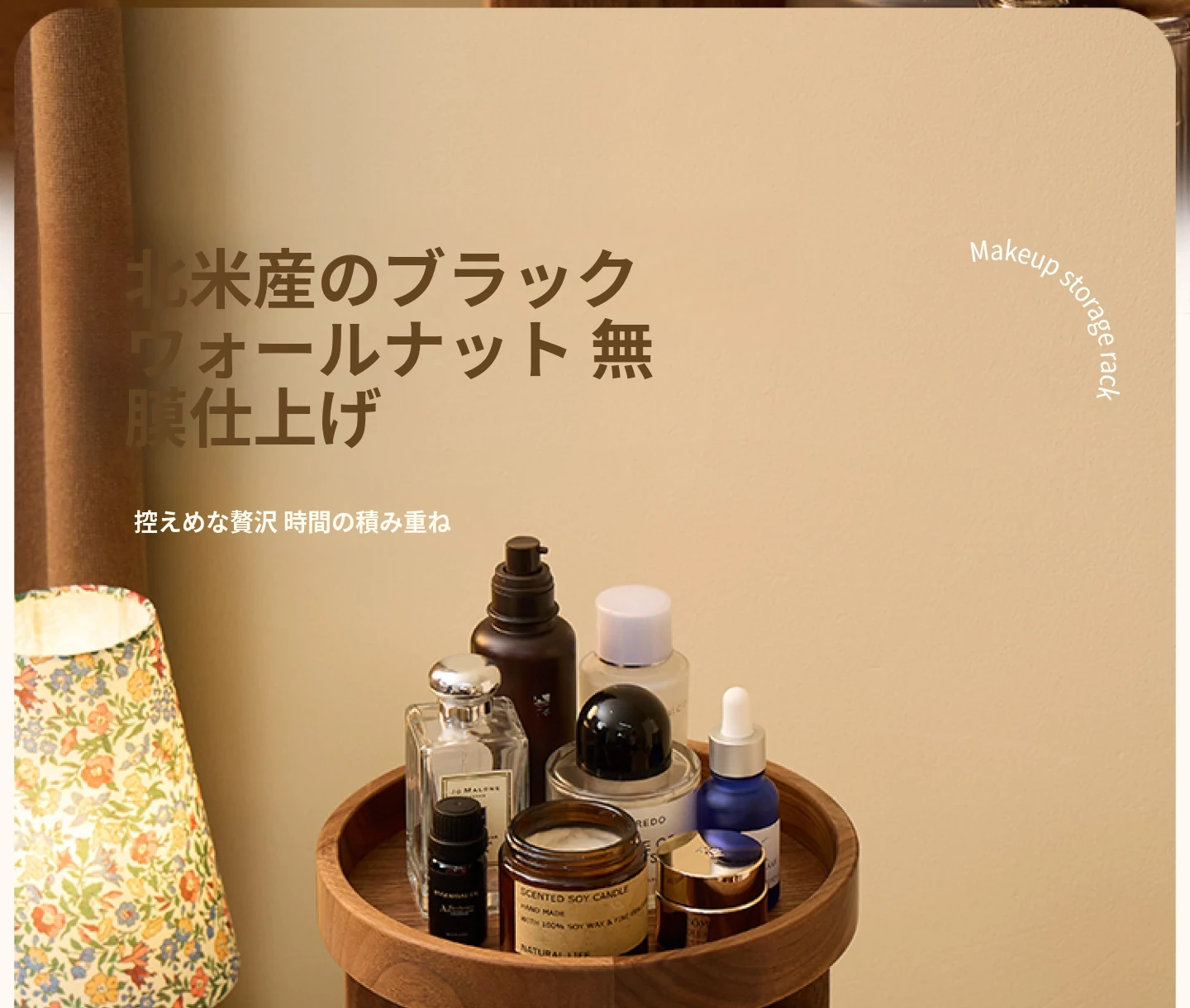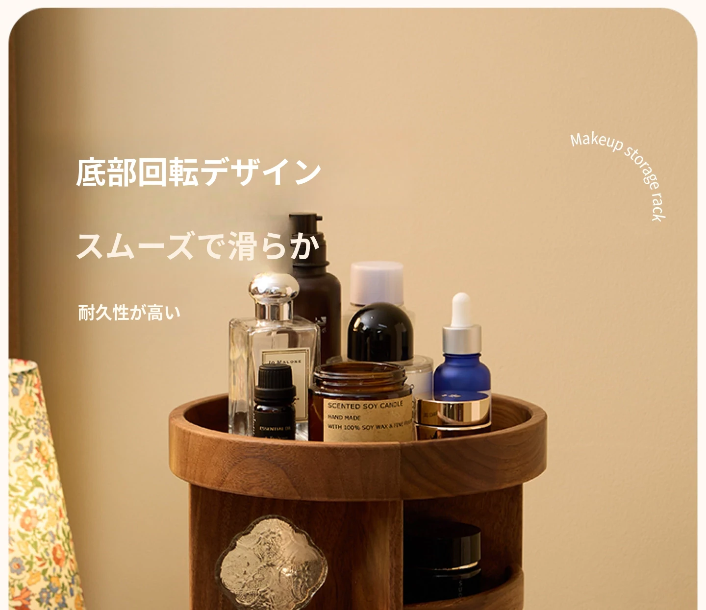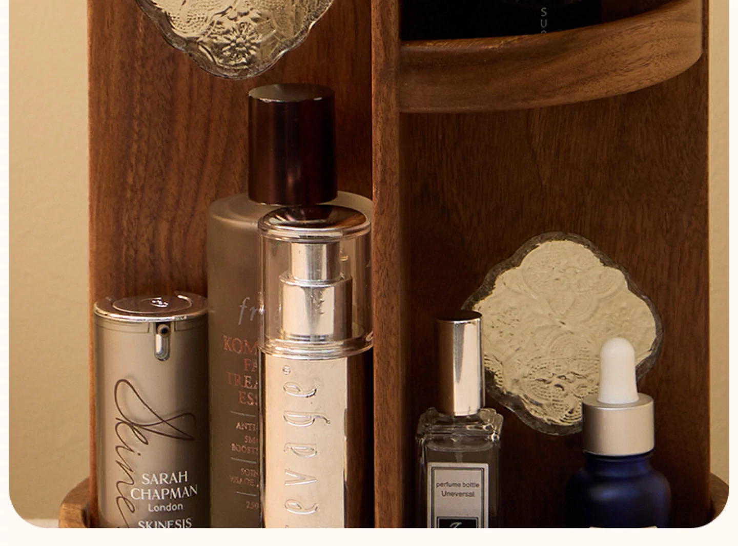 ヴァンハン ブラックウォールナット回転メイクボックス デスクトップ軽奢華収納ラック ドレッサー用スキンケアアイテム収納棚 - 高級感溢れるデザインで、あなたの美容アイテムをスタイリッシュに整理!