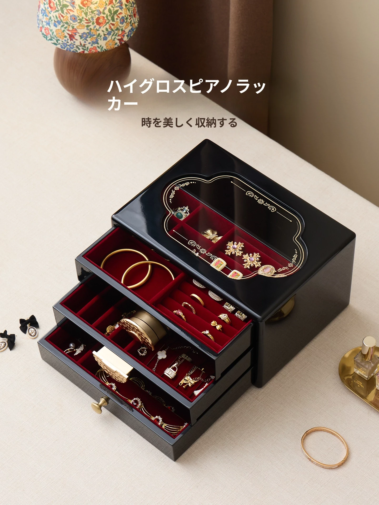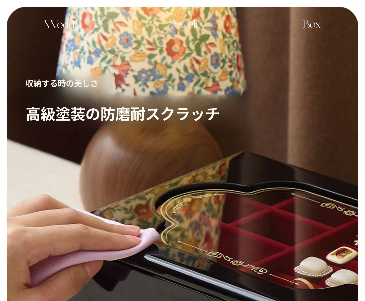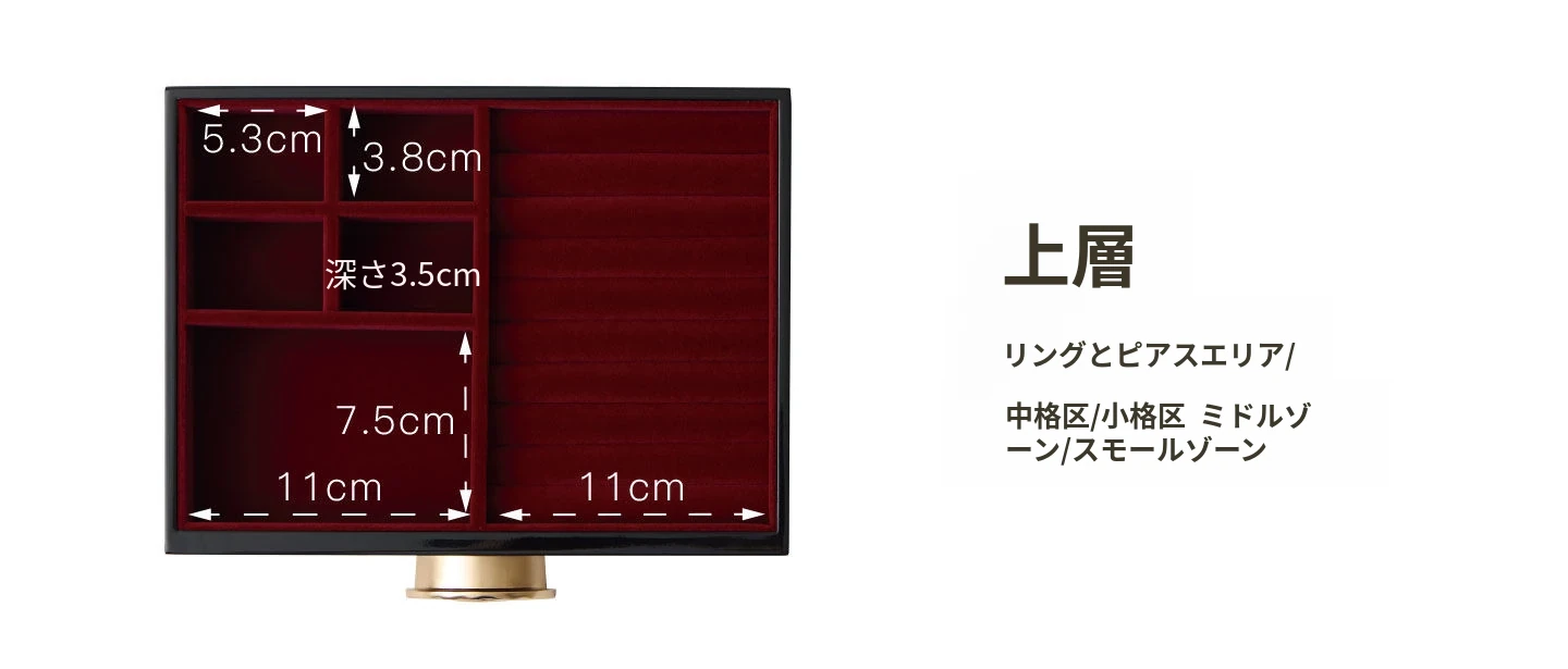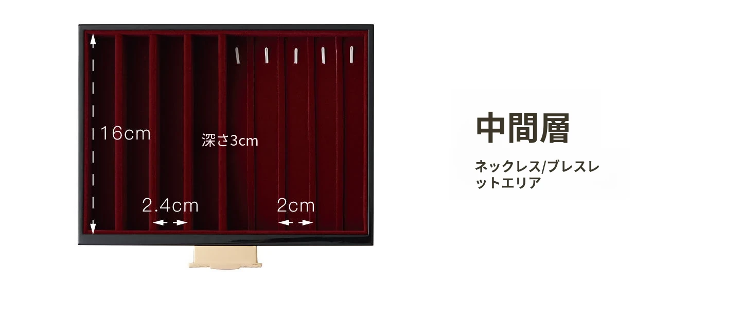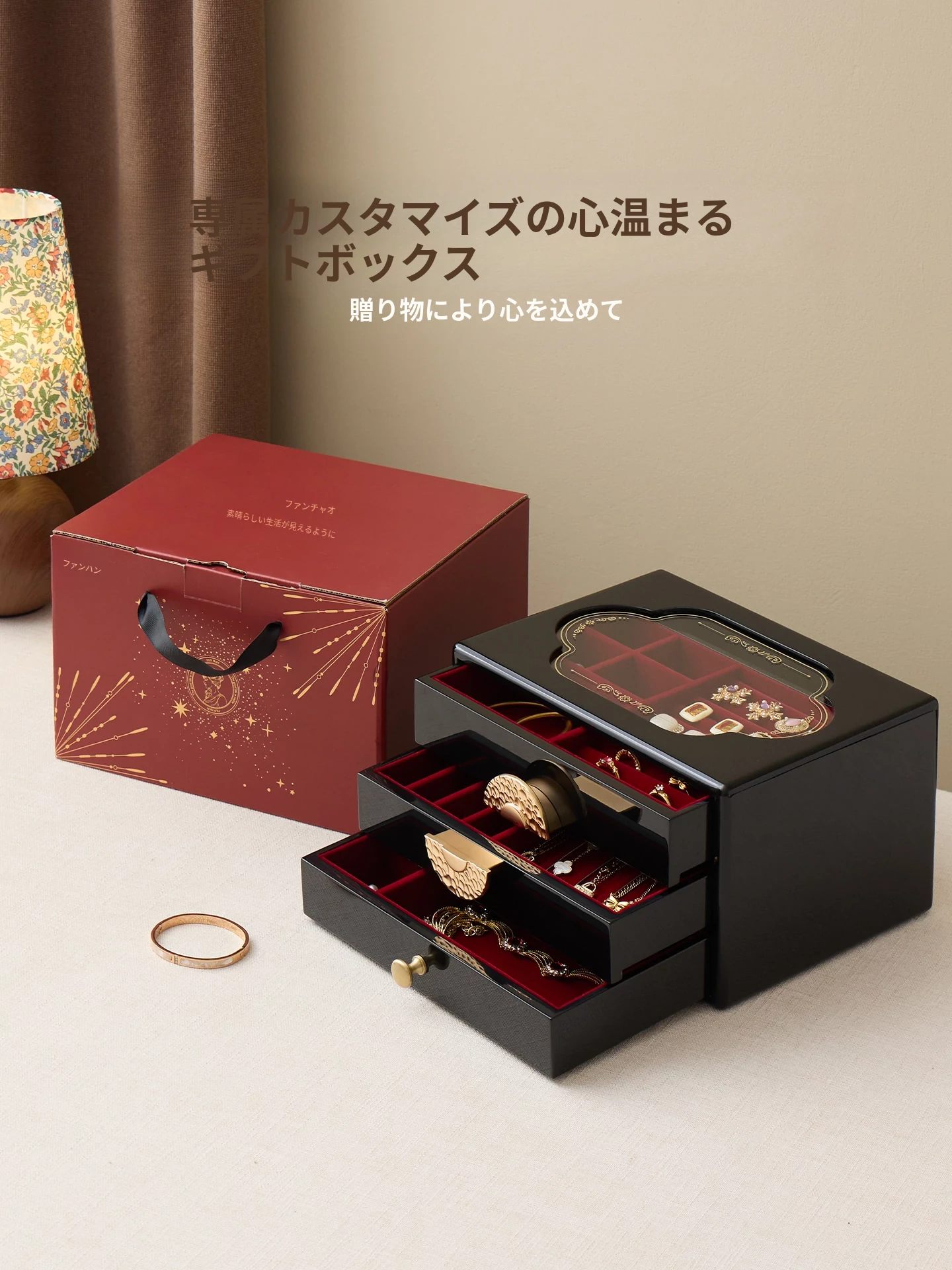 ラッカー仕上げのジュエリーボックス ゴールデンホリデータイプ 赤のベルベット布 ギフトボックス入り