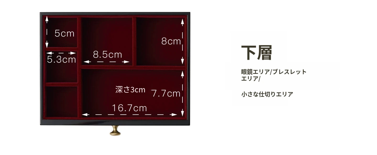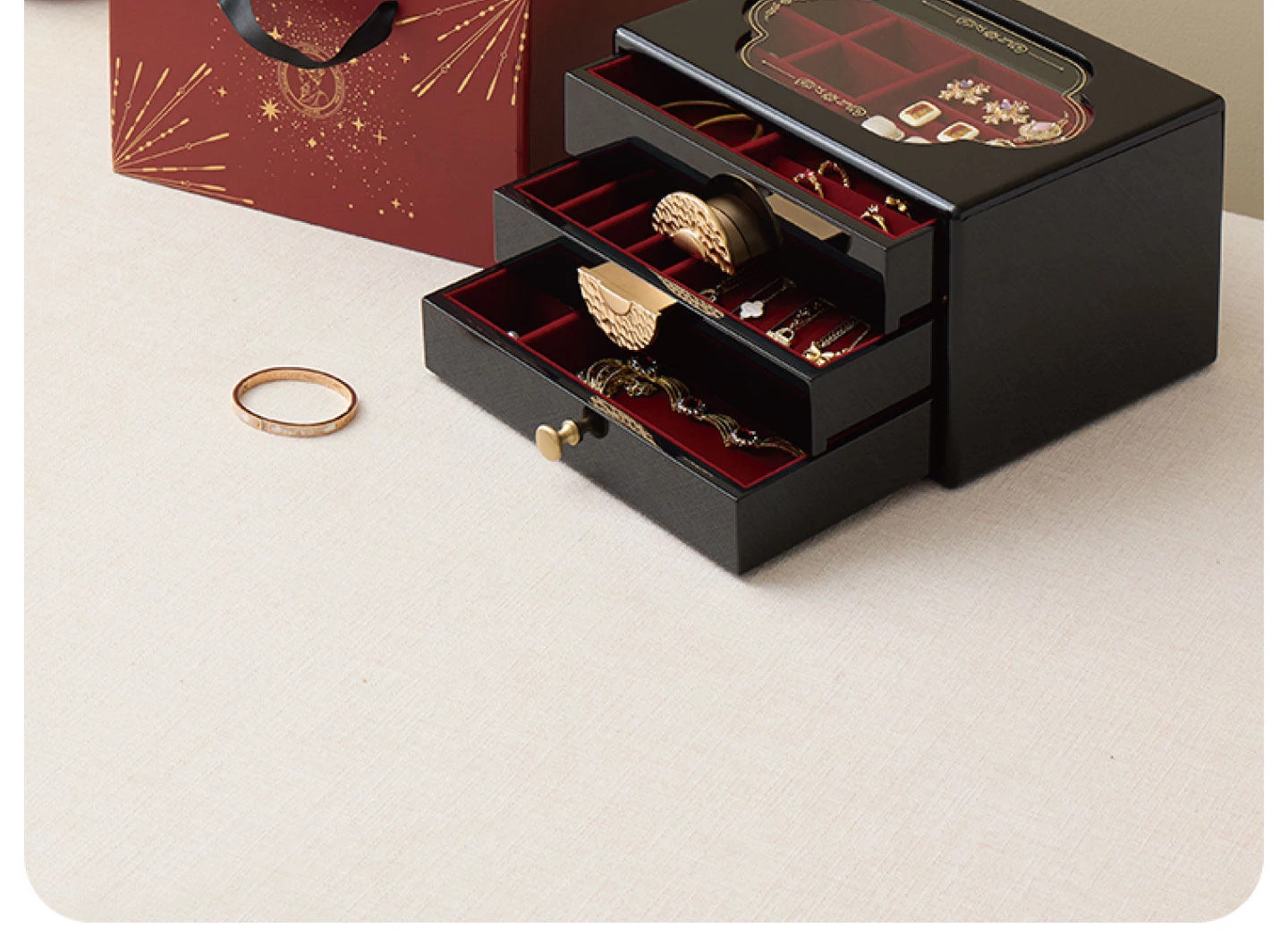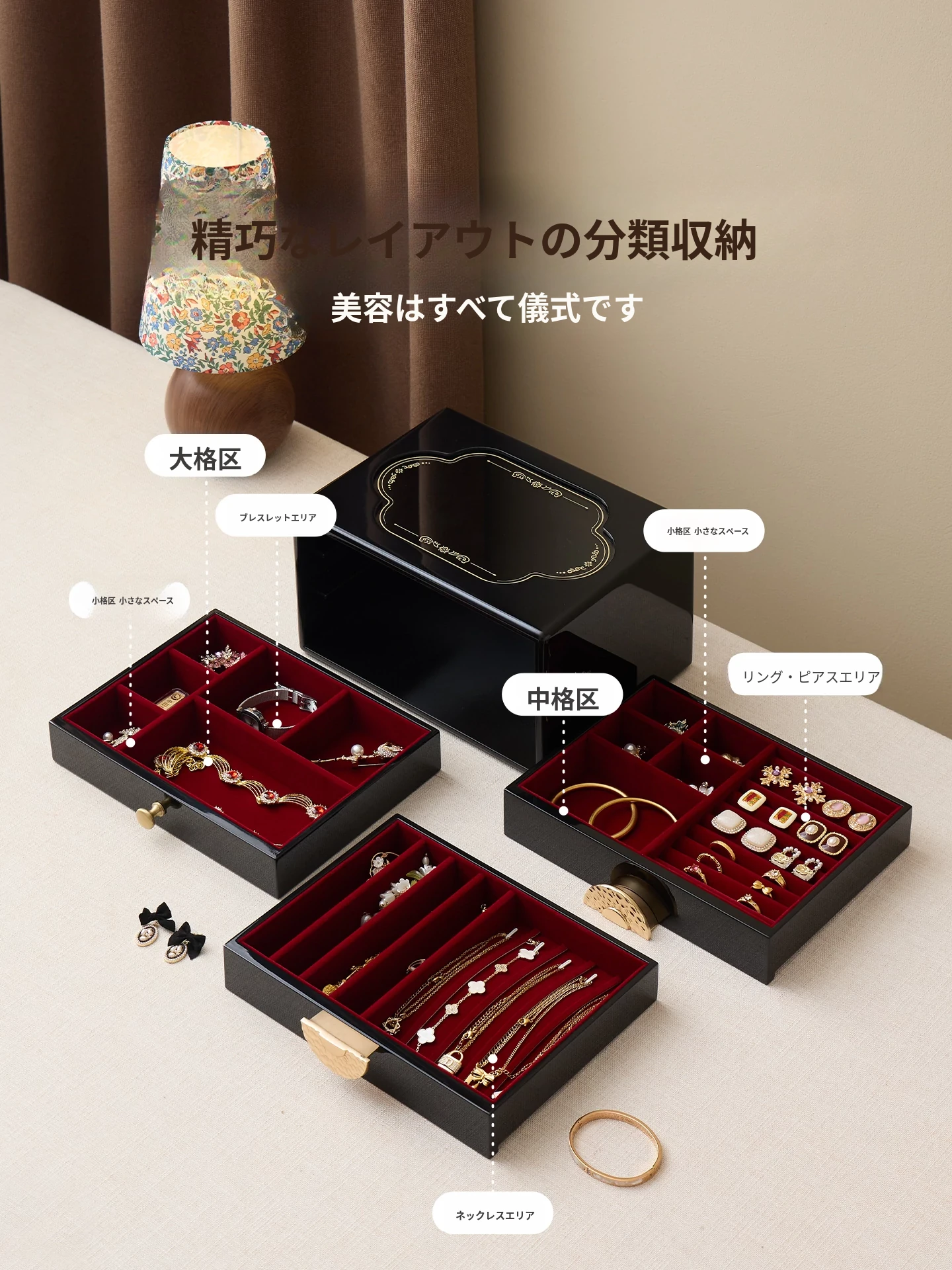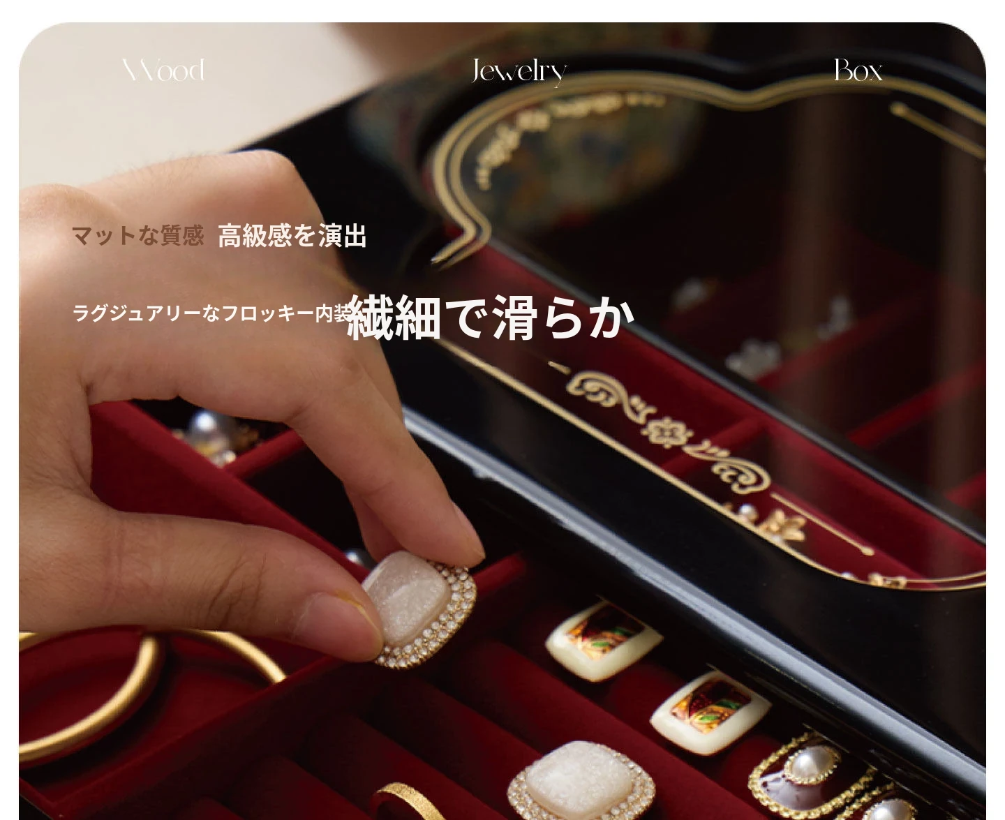 ラッカー仕上げのジュエリーボックス ゴールデンホリデータイプ 赤のベルベット布 ギフトボックス入り