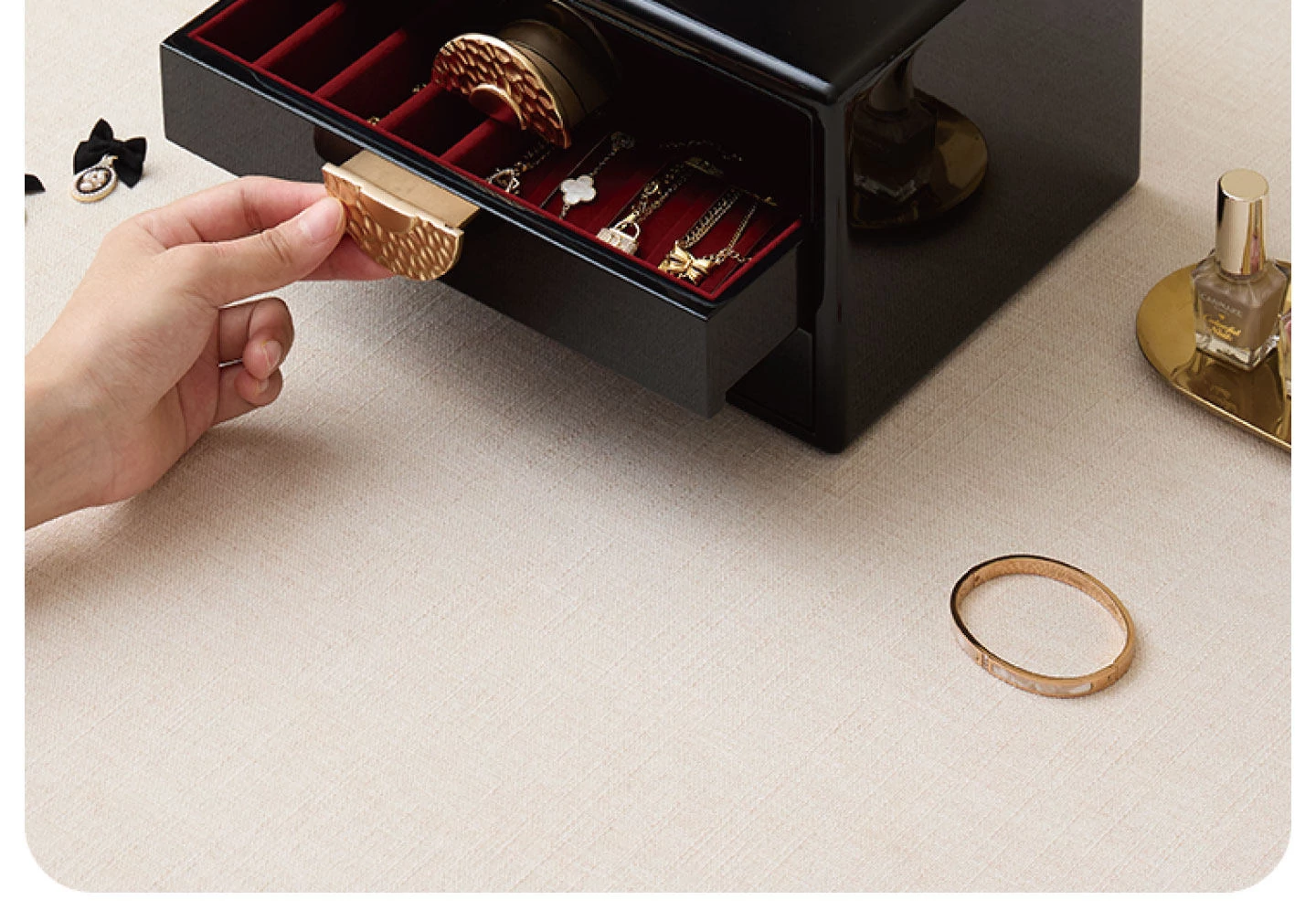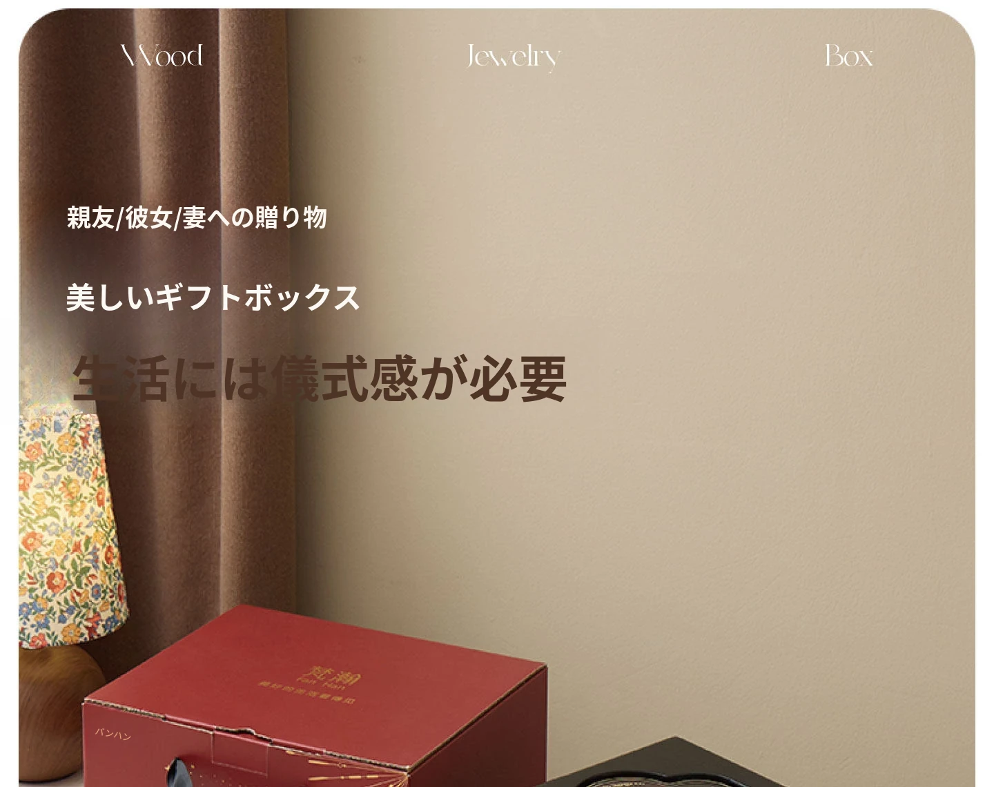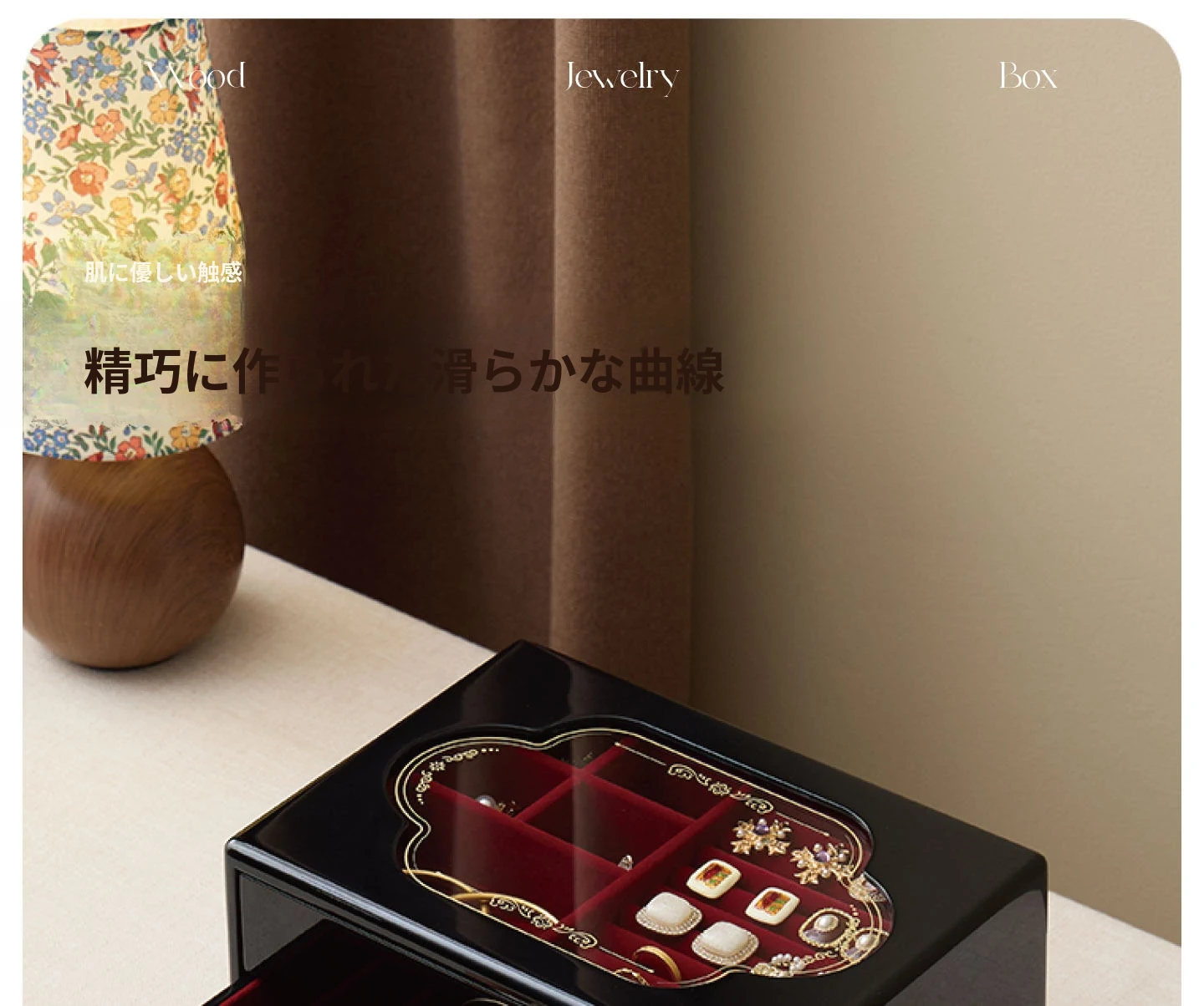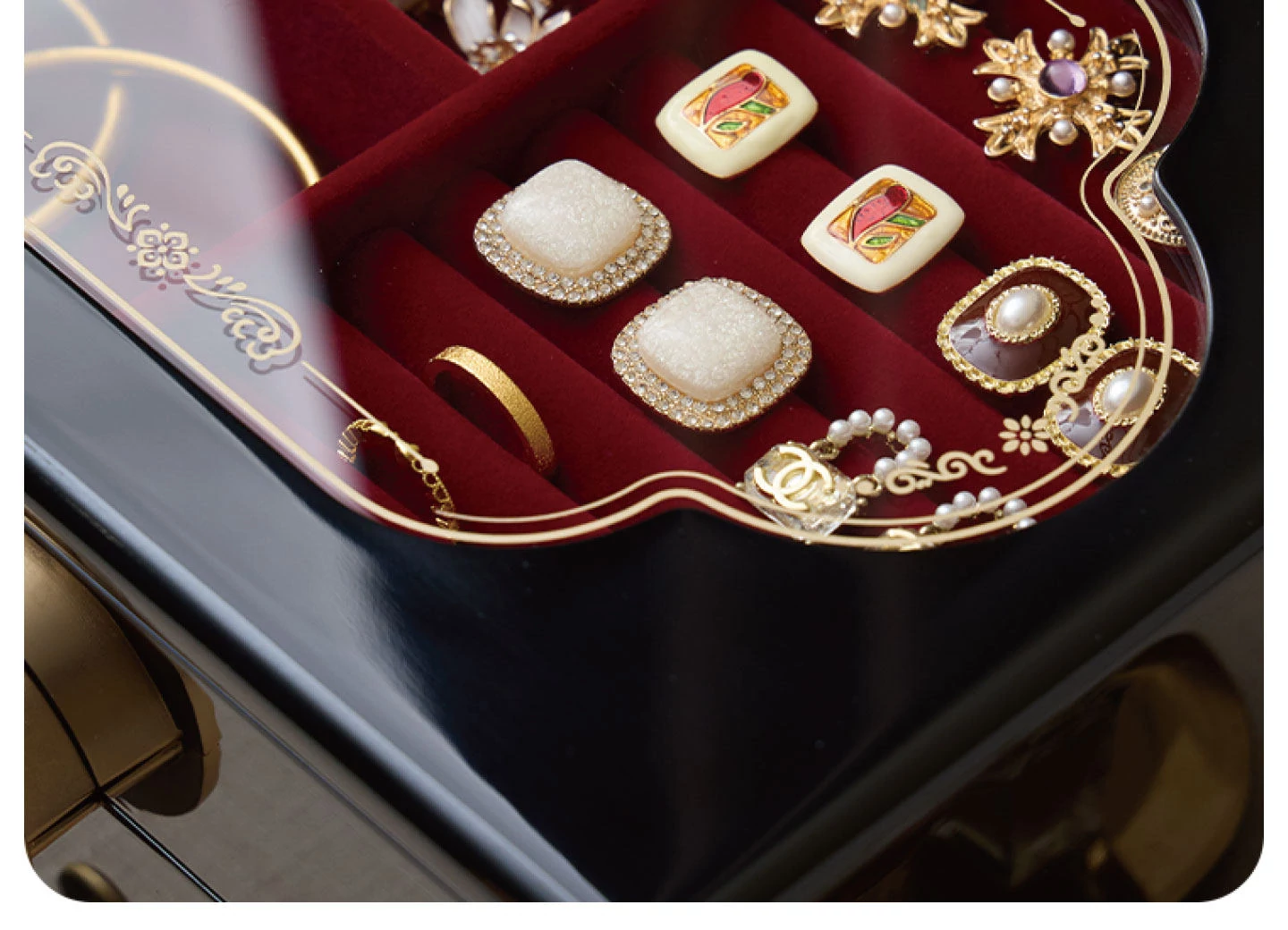 ラッカー仕上げのジュエリーボックス ゴールデンホリデータイプ 赤のベルベット布 ギフトボックス入り