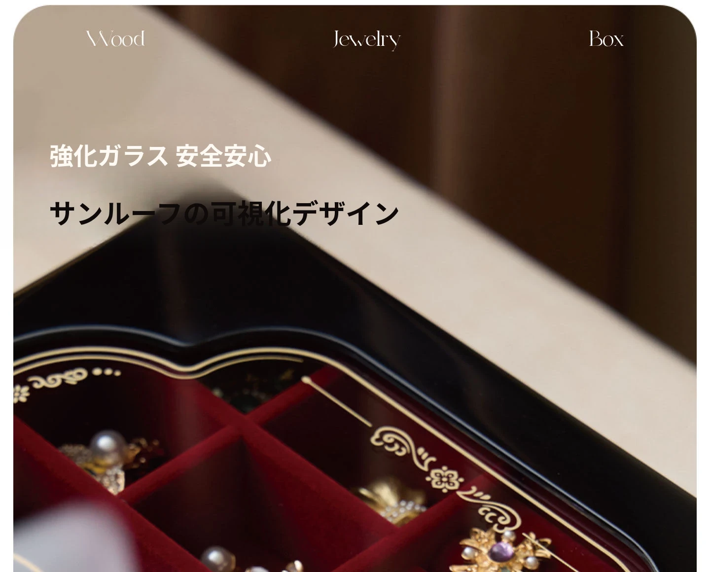 ラッカー仕上げのジュエリーボックス ガラスタイプ 赤のベルベット布 ギフトボックス入り