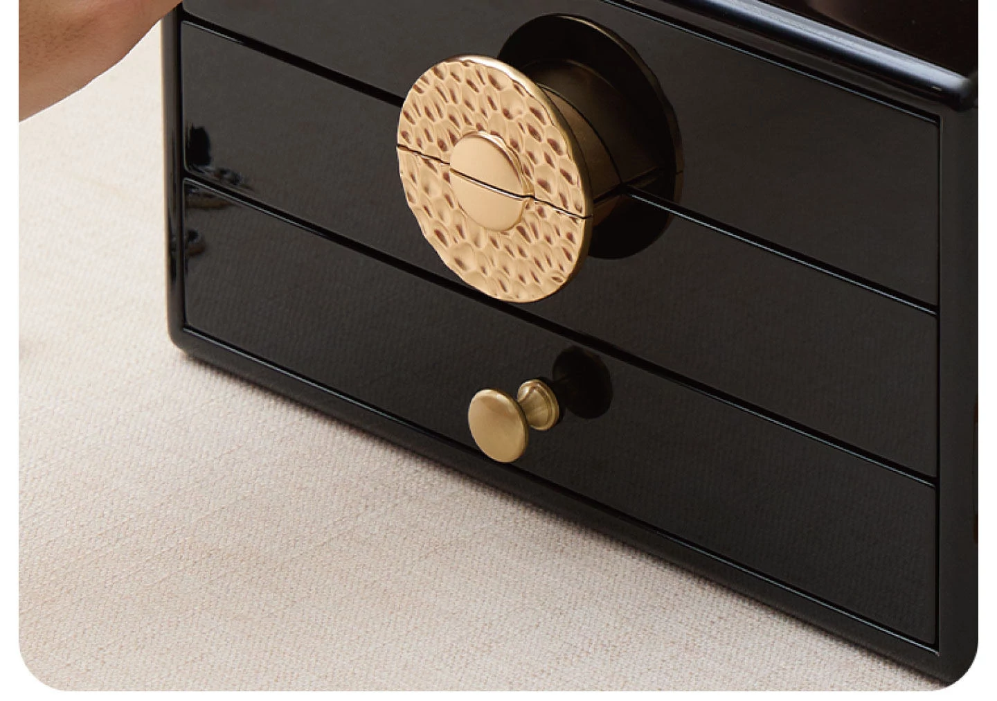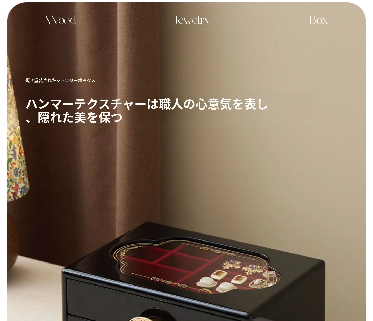 ラッカー仕上げのジュエリーボックス ハンマーテクスチャータイプ 赤のベルベット布 ギフトボックス入り
