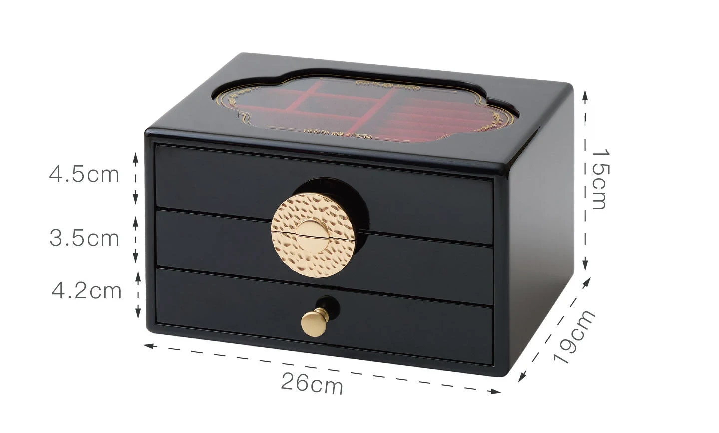 ラッカー仕上げのジュエリーボックス 窓花タイプ 赤のベルベット布 ギフトボックス入り