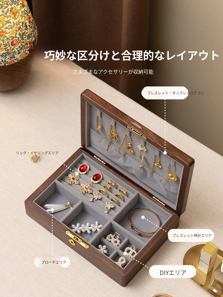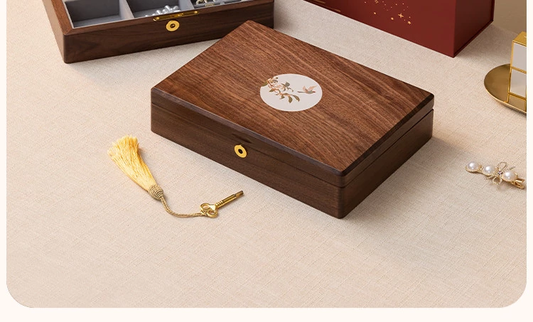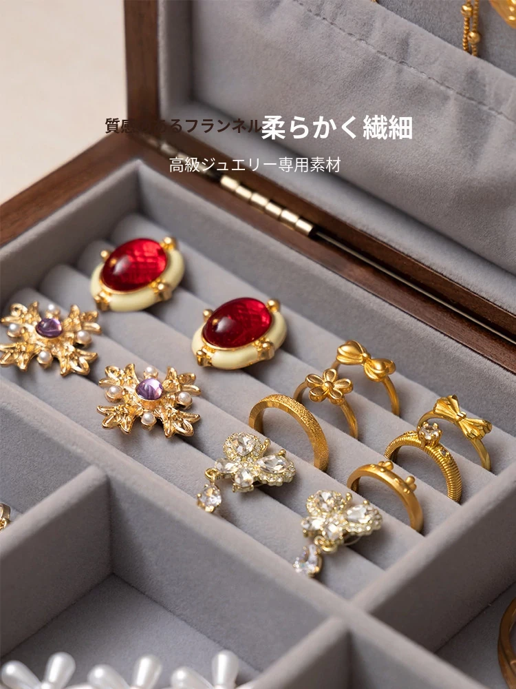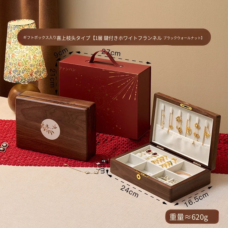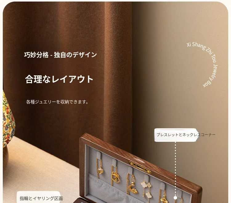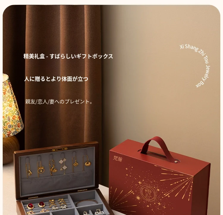 ヴァンハン 高級木製ジュエリーボックス 鍵付き 精巧なデザイン 新年の贈り物に最適!指輪・ネックレス・ゴールドジュエリーを美しく収納。