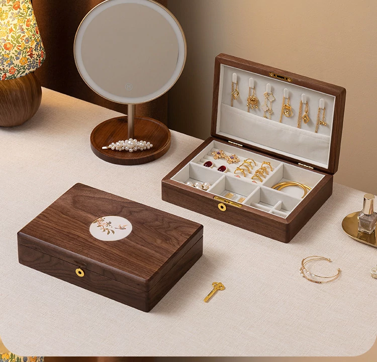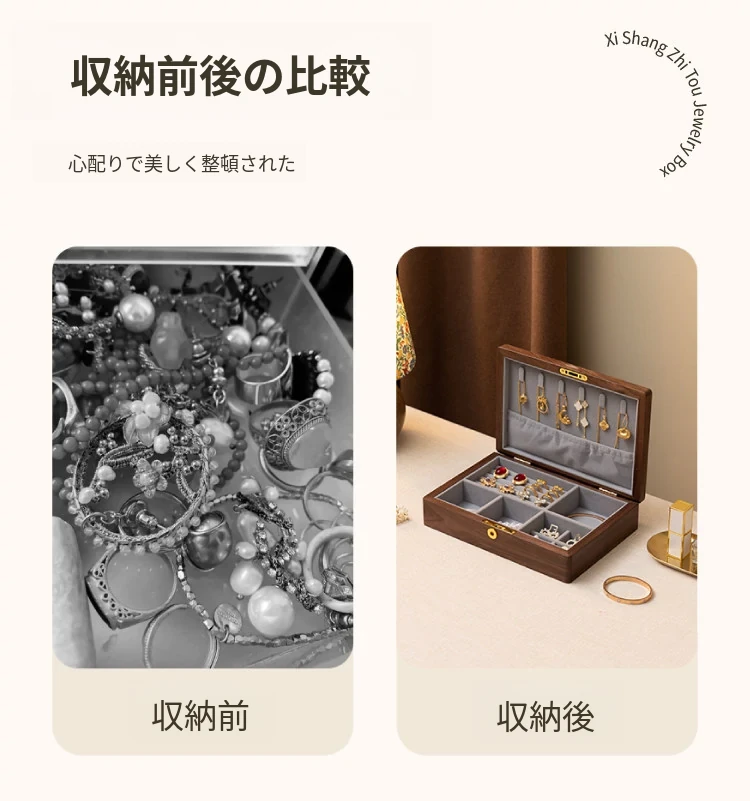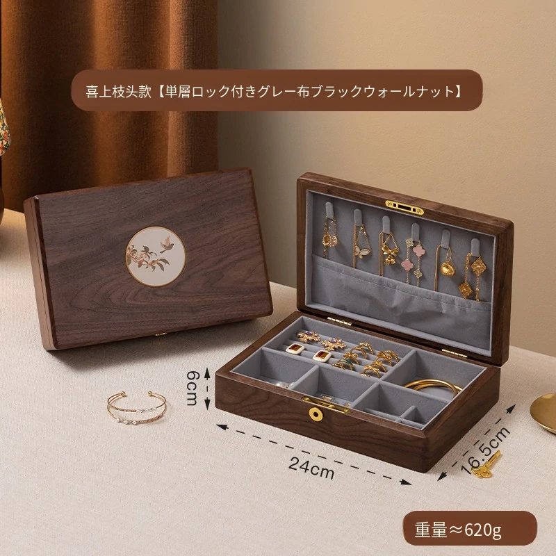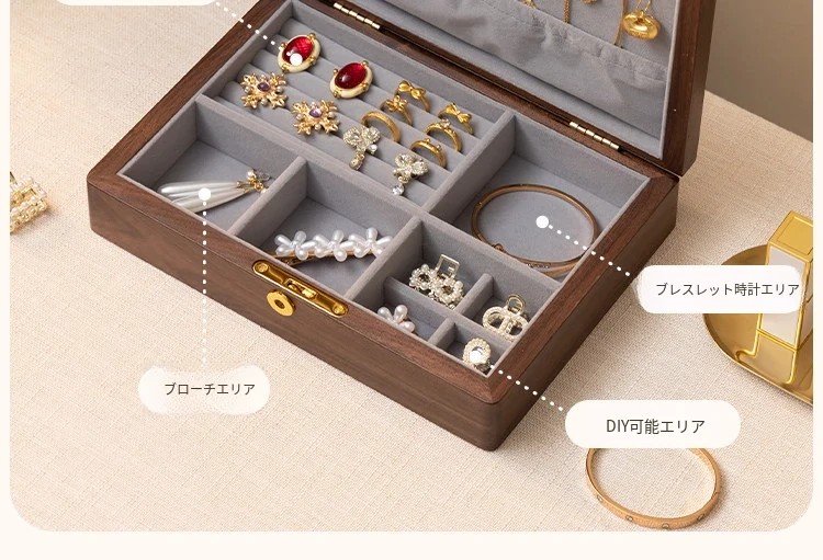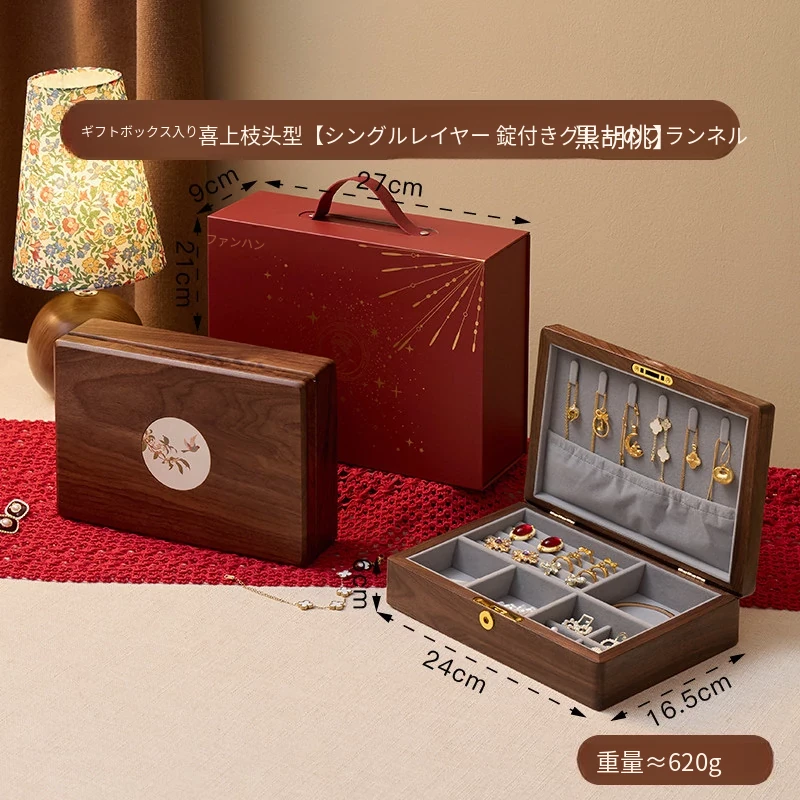 ヴァンハン 高級木製ジュエリーボックス 鍵付き 精巧なデザイン 新年の贈り物に最適!指輪・ネックレス・ゴールドジュエリーを美しく収納。