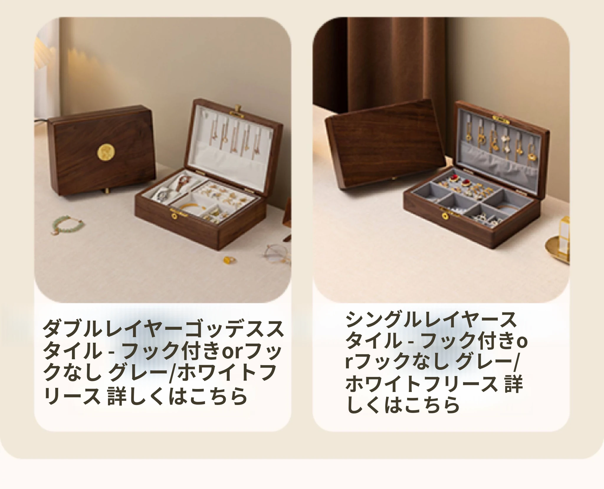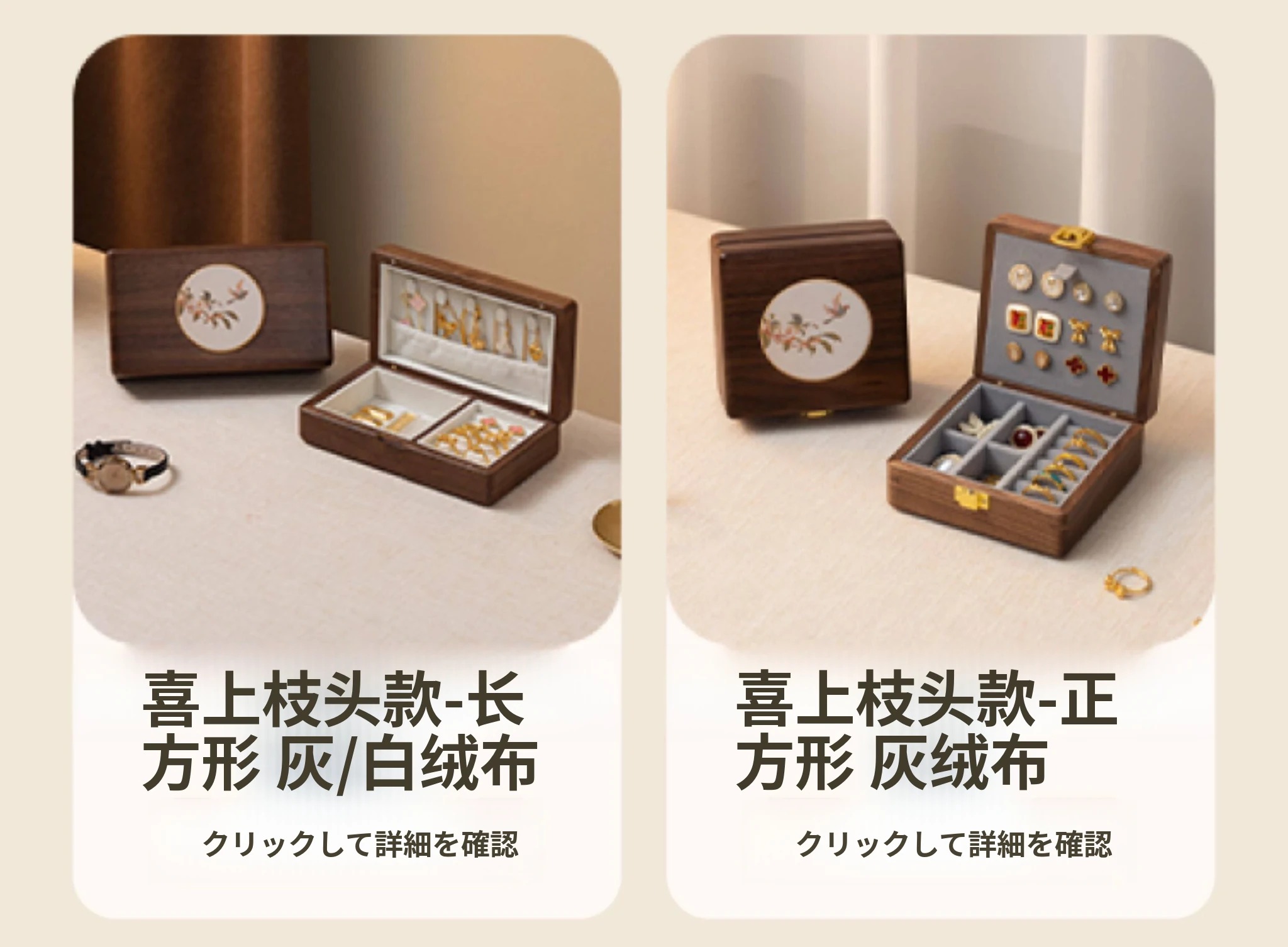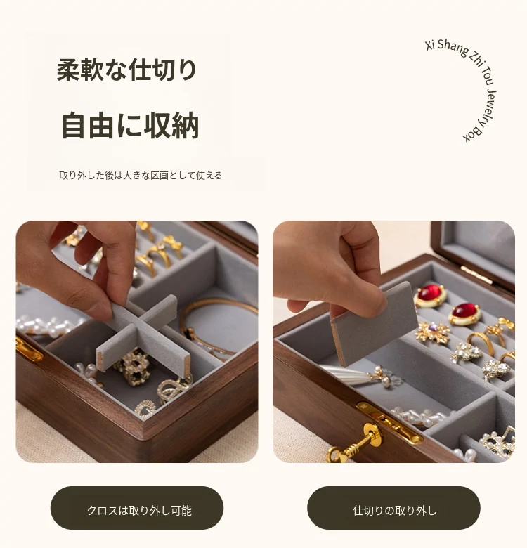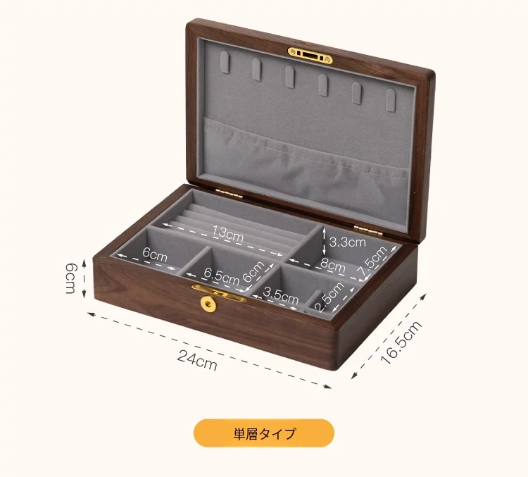 方糖ジュエリーボックス 陶器タイプ グレーのフランネル 北米ブラックウォールナットモデル