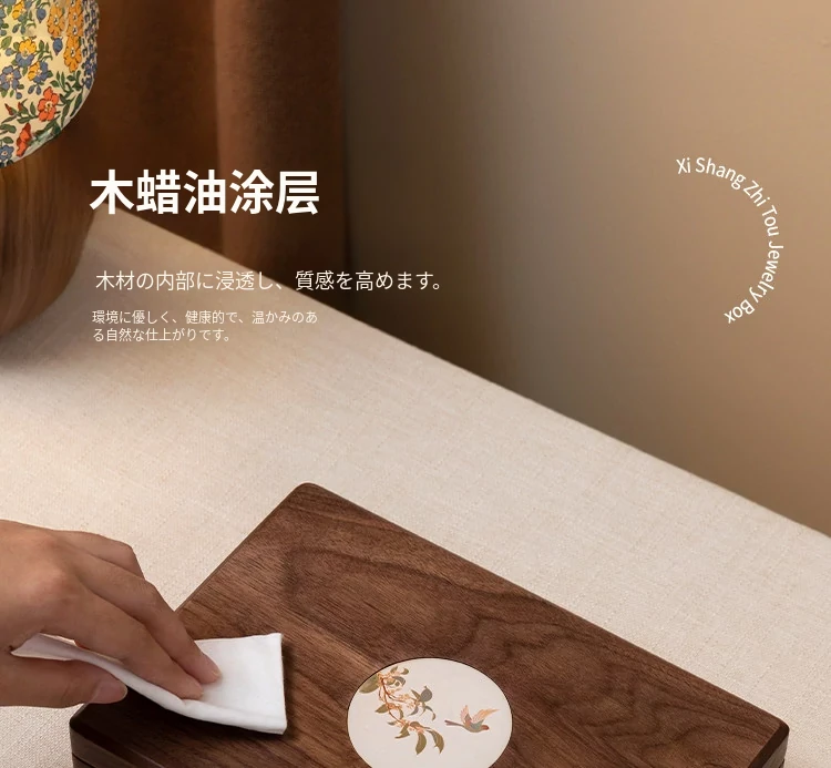 キャンディジュエリーボックス 陶器タイプ ホワイトのフランネル 北米ブラックウォールナット