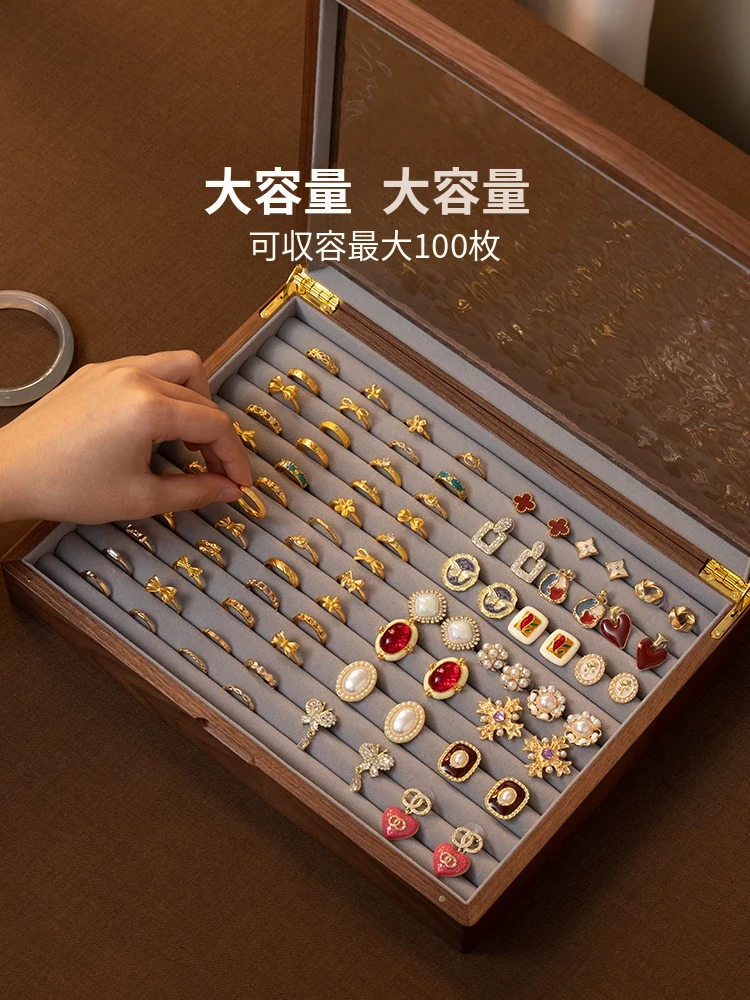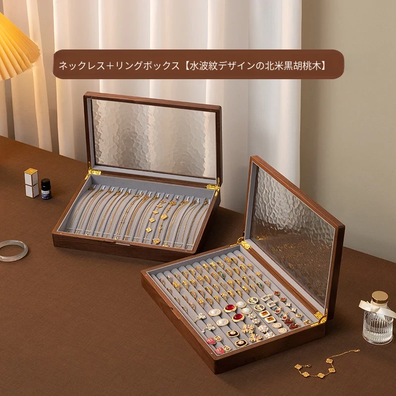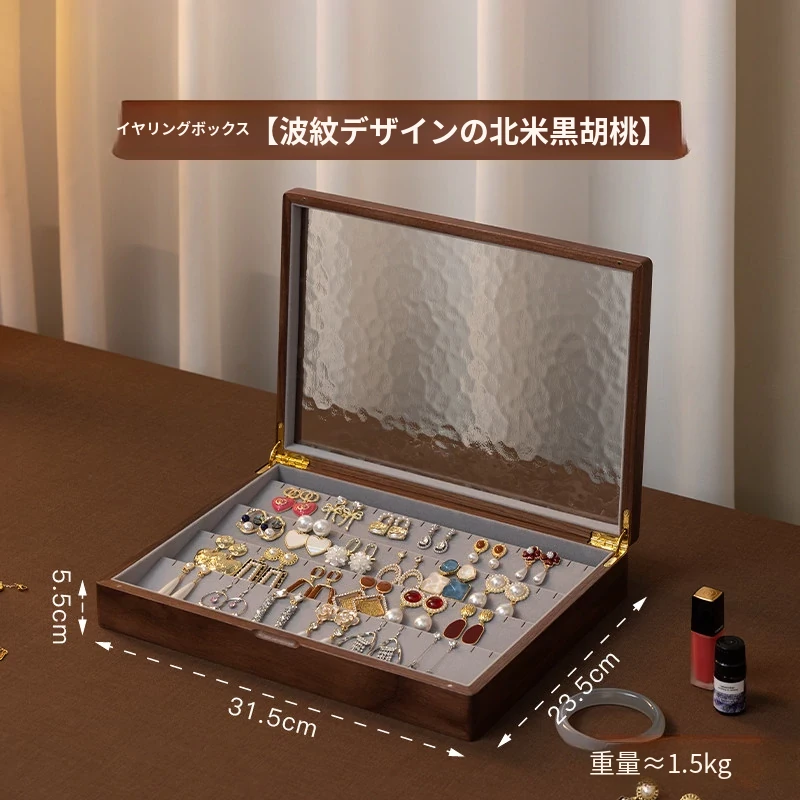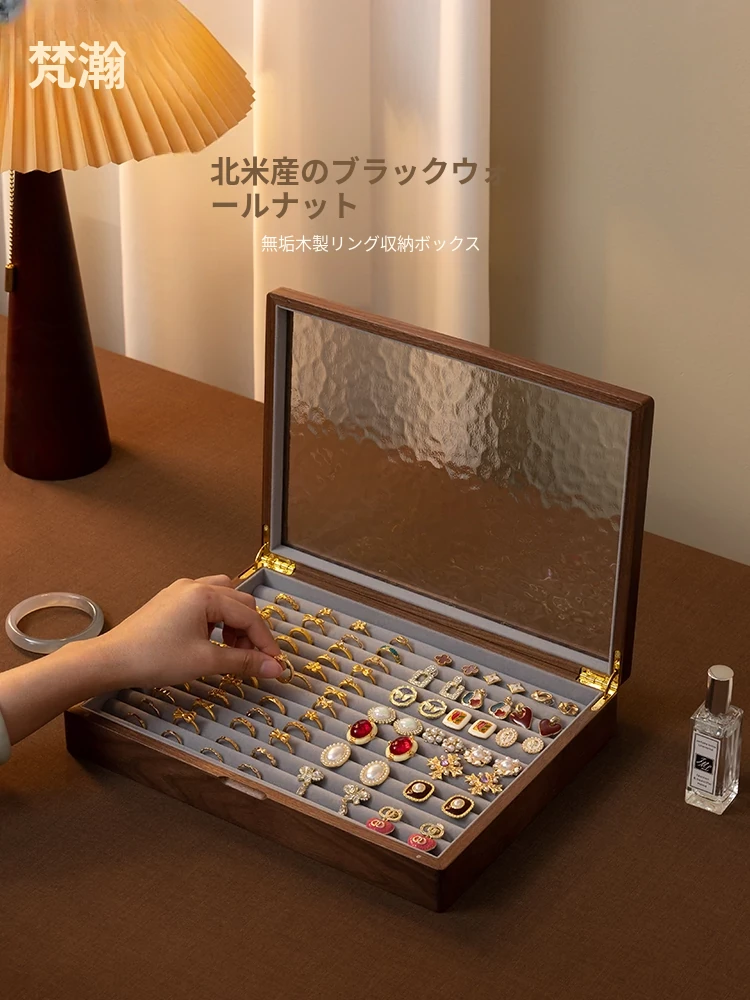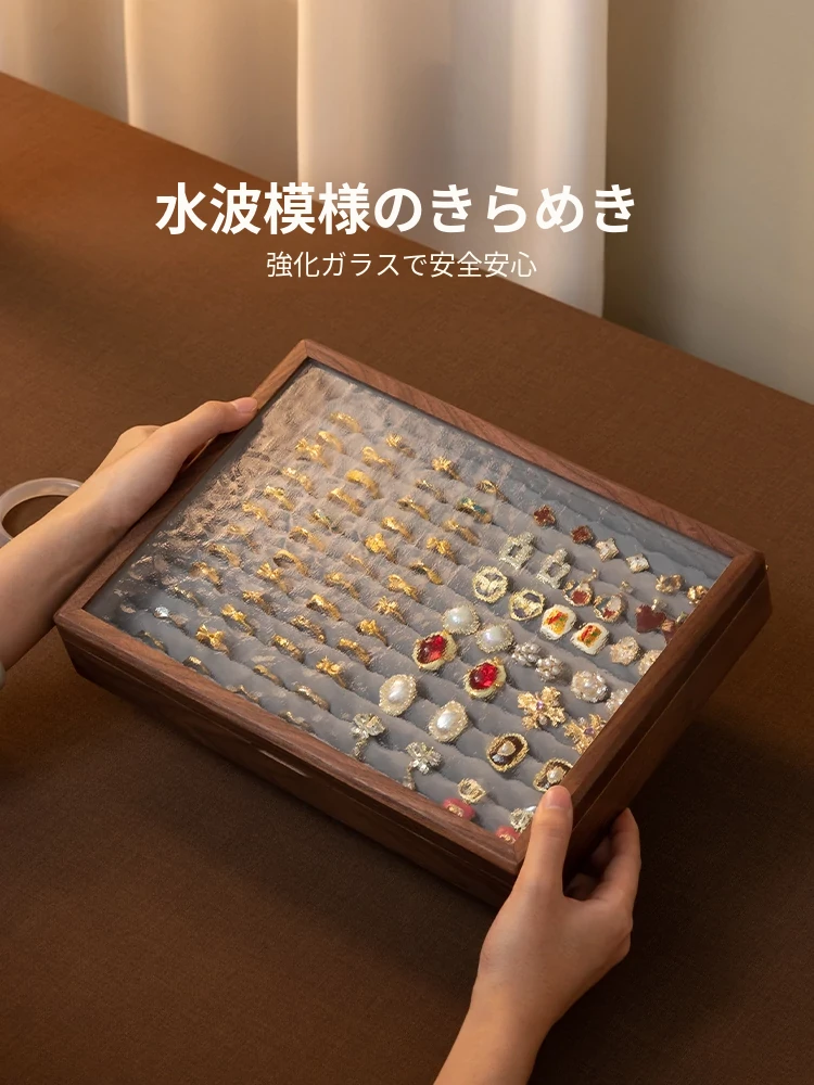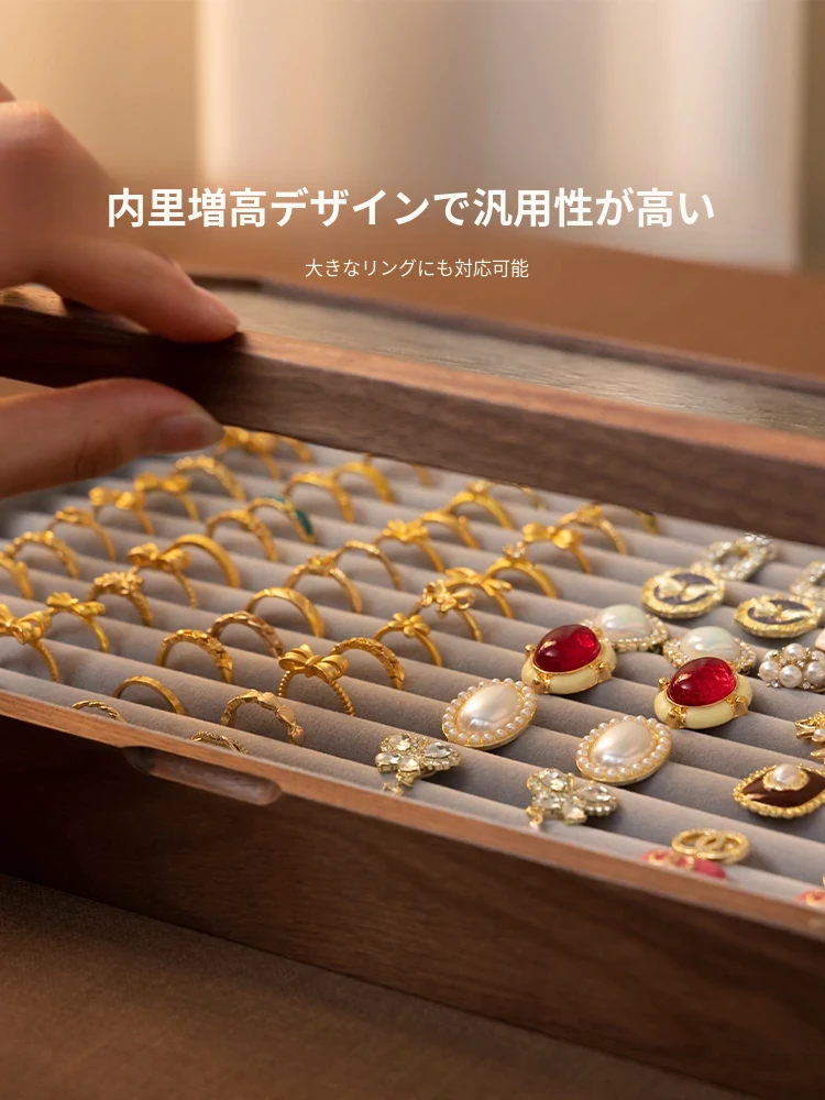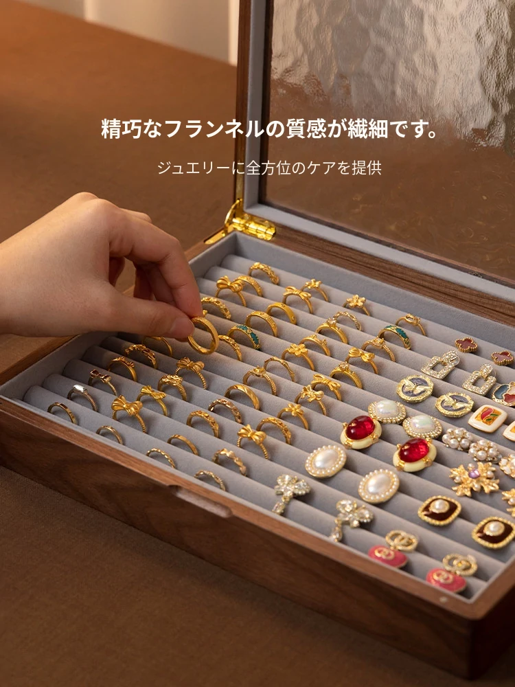 ヴァンハン 高級実木製リング収納ボックス 大容量 ガラス製ジュエリーボックス 防酸化イヤリングケース すっきり整理して美しくディスプレイ!
