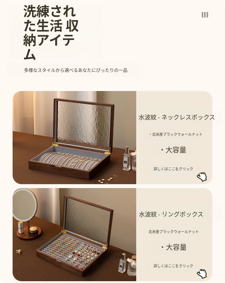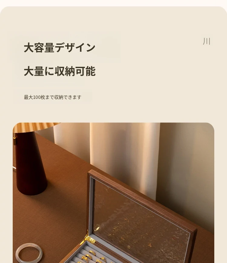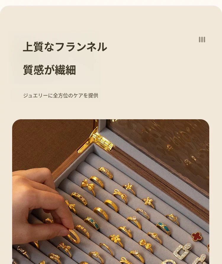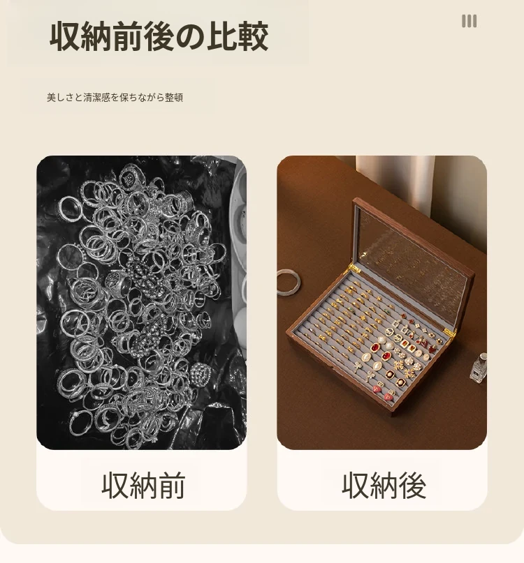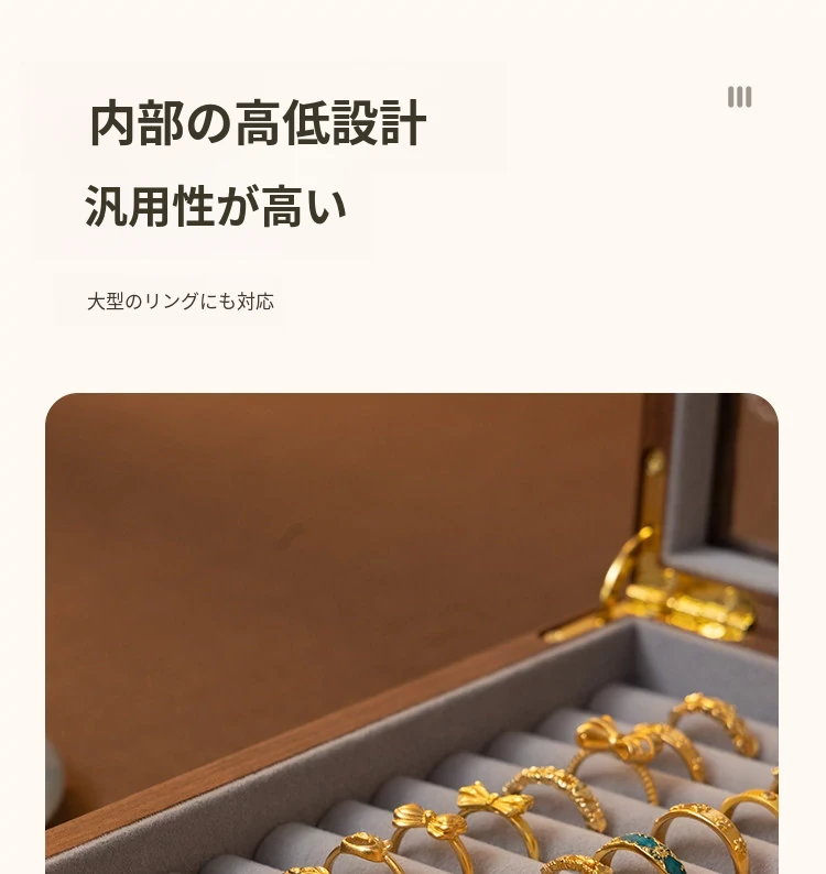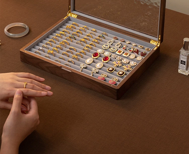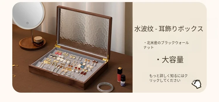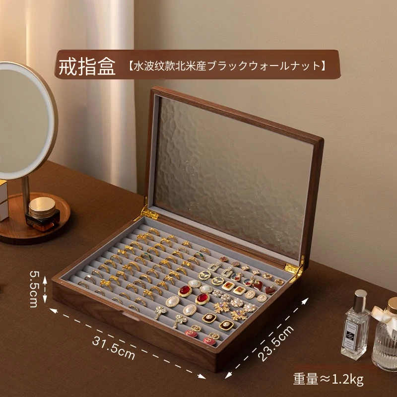 ヴァンハン 高級実木製リング収納ボックス 大容量 ガラス製ジュエリーボックス 防酸化イヤリングケース すっきり整理して美しくディスプレイ!