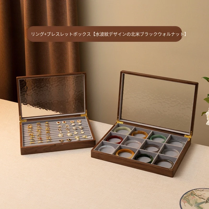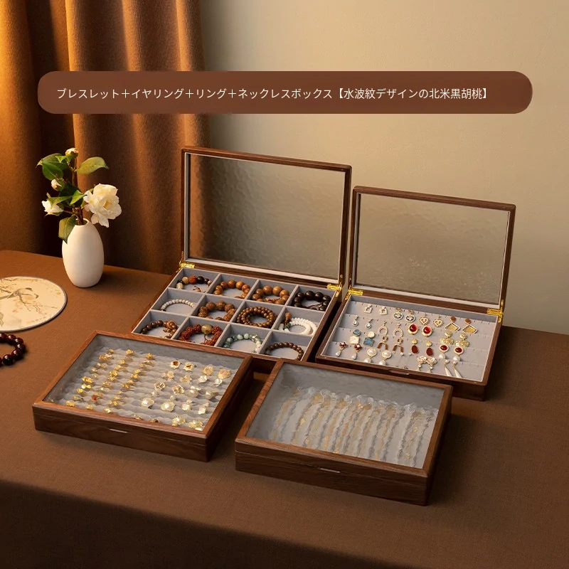 ブレスレットボックス+ネックレスボックス+リングボックス+イヤリングボックス 北米ブラックウォールナット