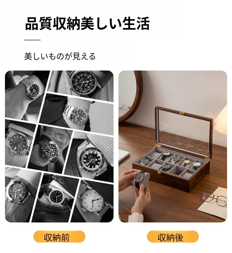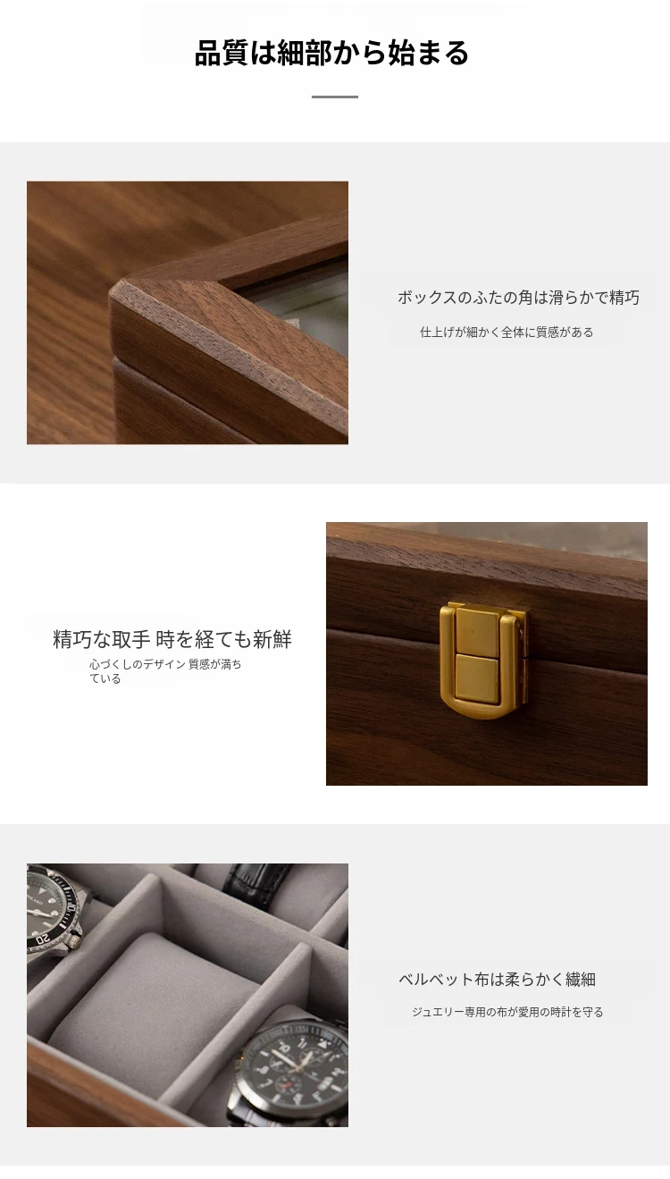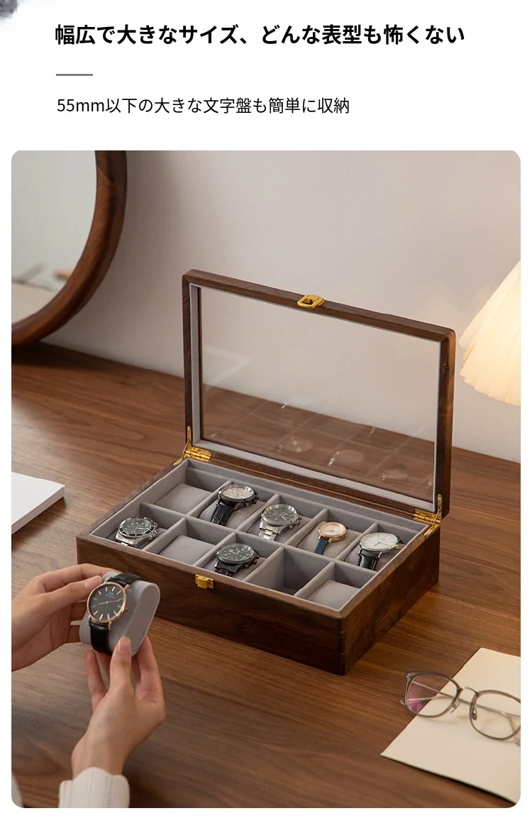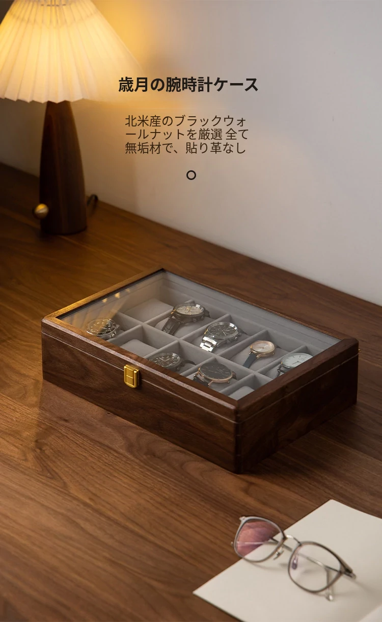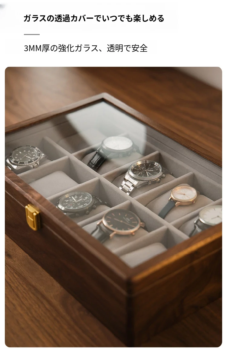 ヴァンハン 高級ブラックウオールナット木製腕時計収納ボックス 男性向けの軽やかな贅沢ギフト 腕時計ディスプレイケース メカニカルウォッチにも最適!