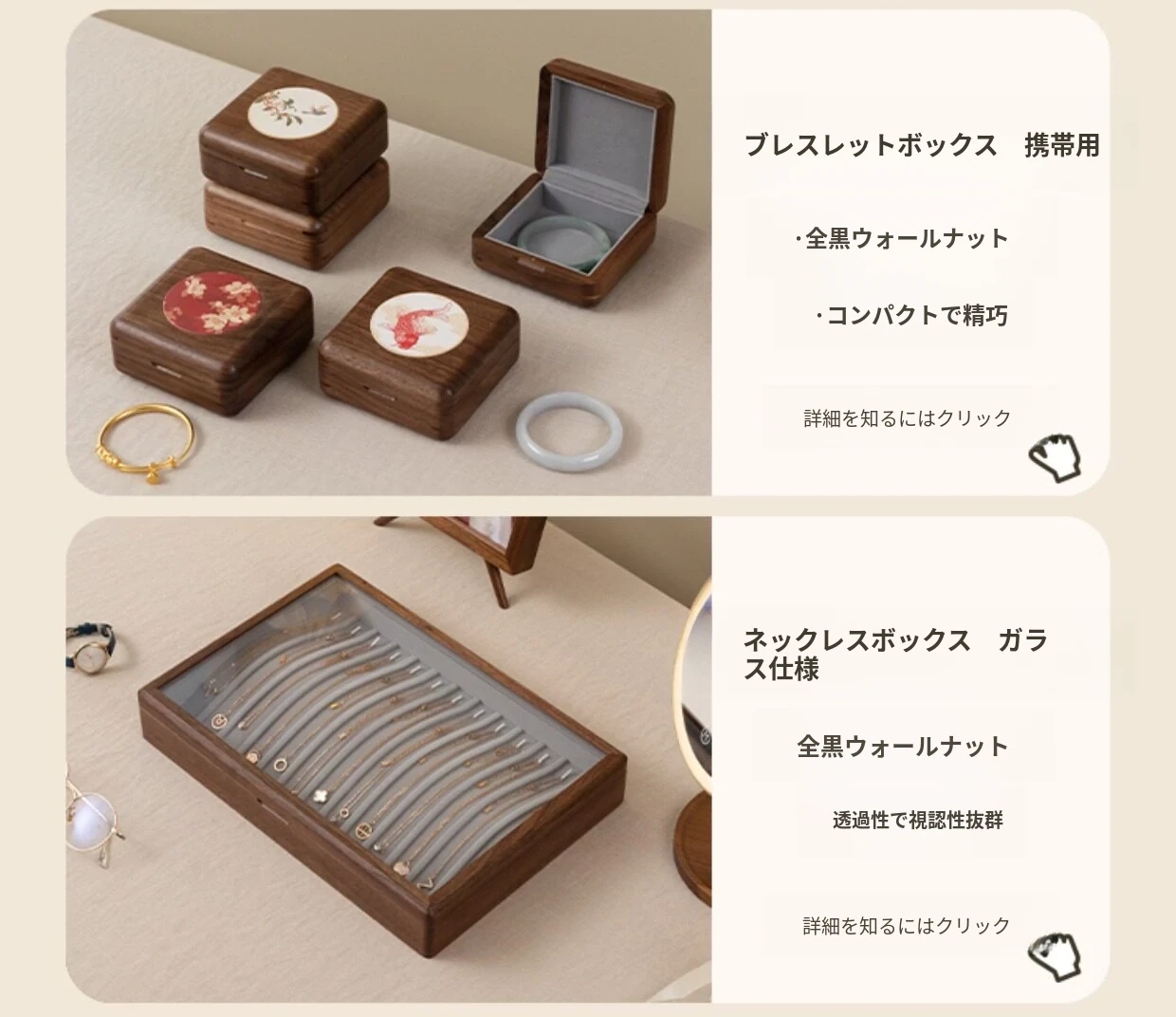 ヴァンハン 高級実木製ジュエリーボックス 多機能翡翠・玉・メノウブレスレット専用 美しいデザインでアクセサリーを大切に収納!