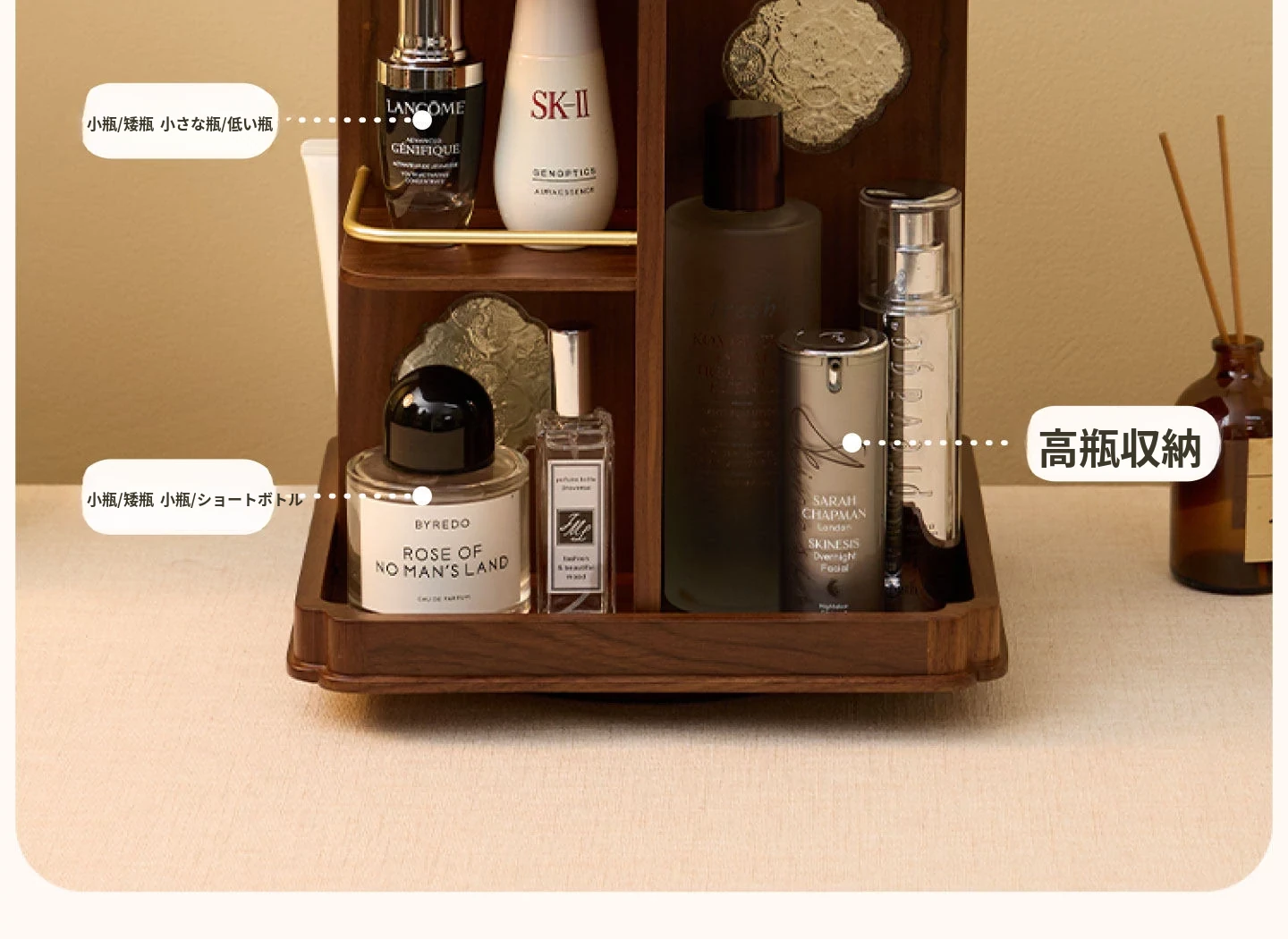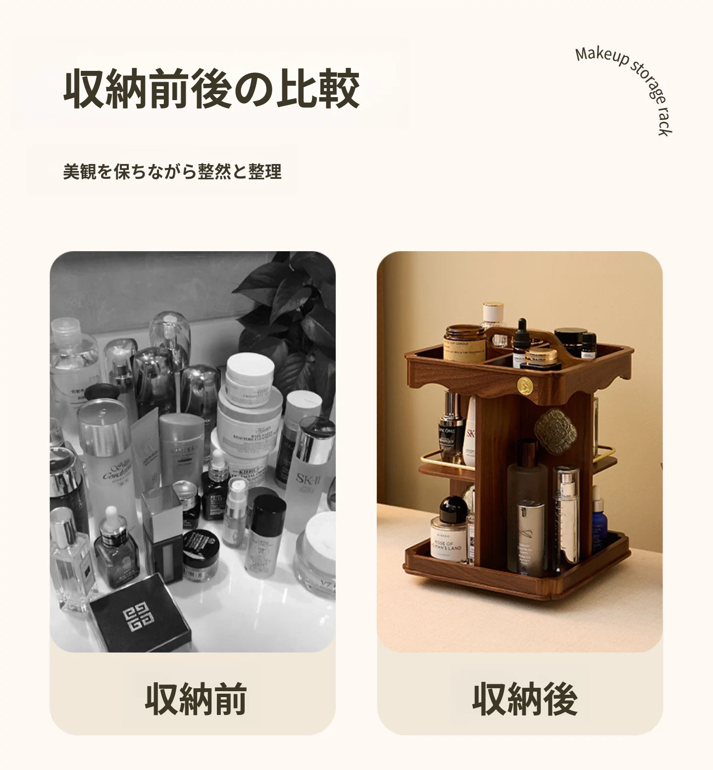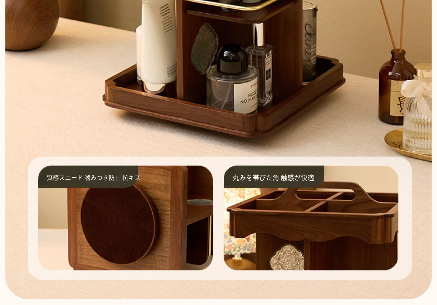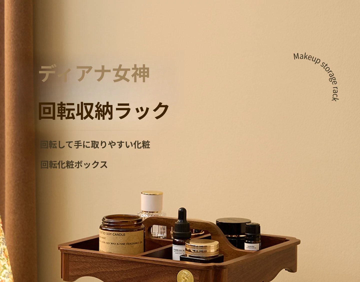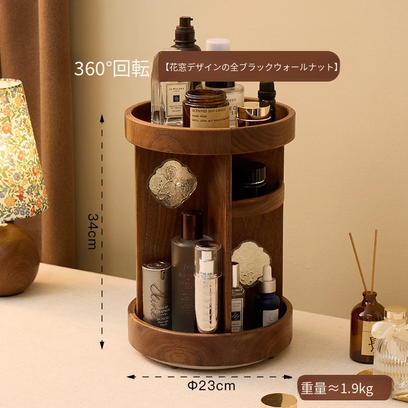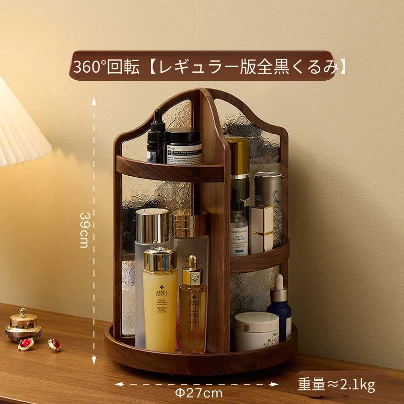 ヴァンハン 回転式化粧品収納ボックス デスクトップメイク台 組み立て式高級感木製スキンケア収納ボックス - おしゃれで機能的、あなたの美容アイテムをスマートに整理!
