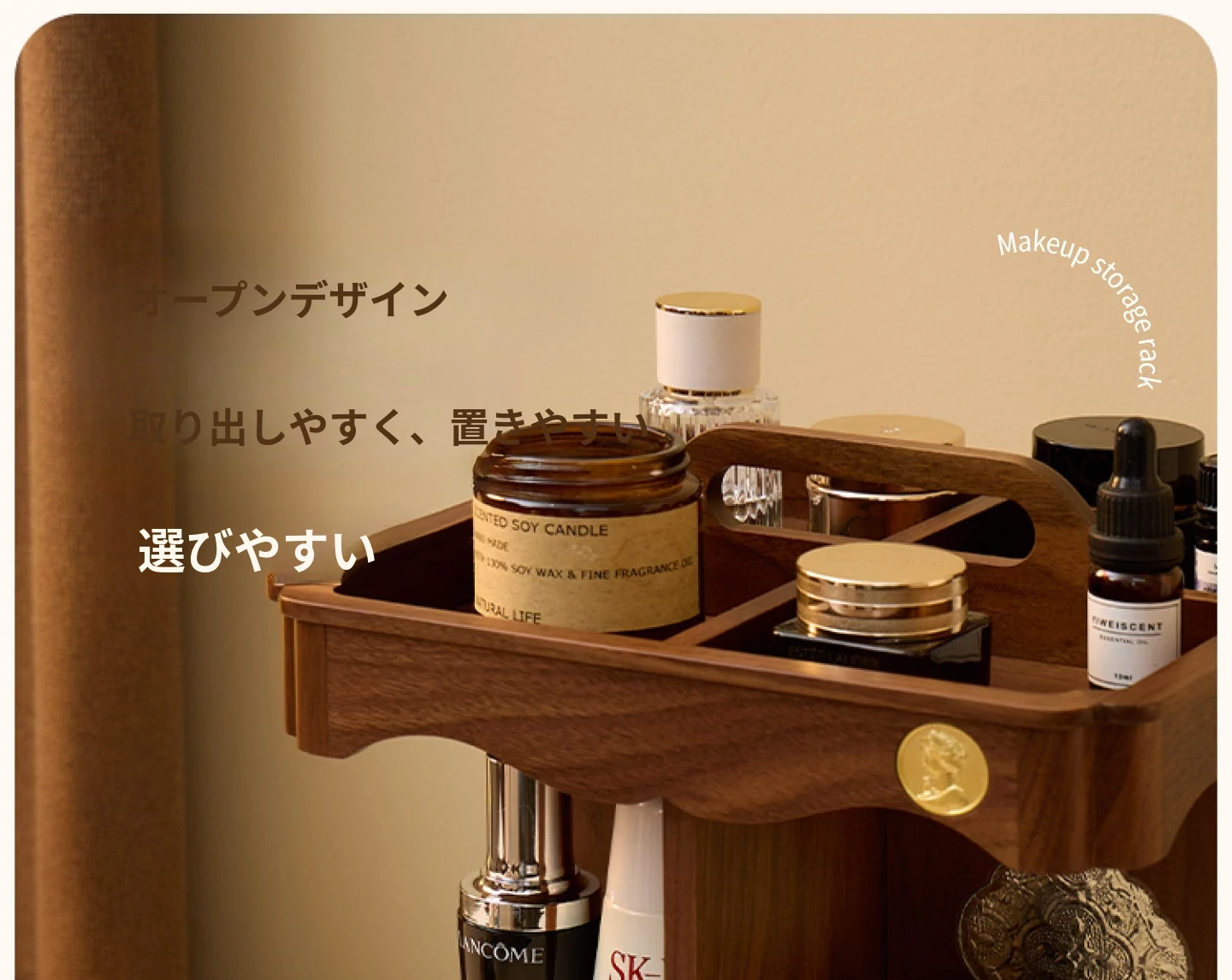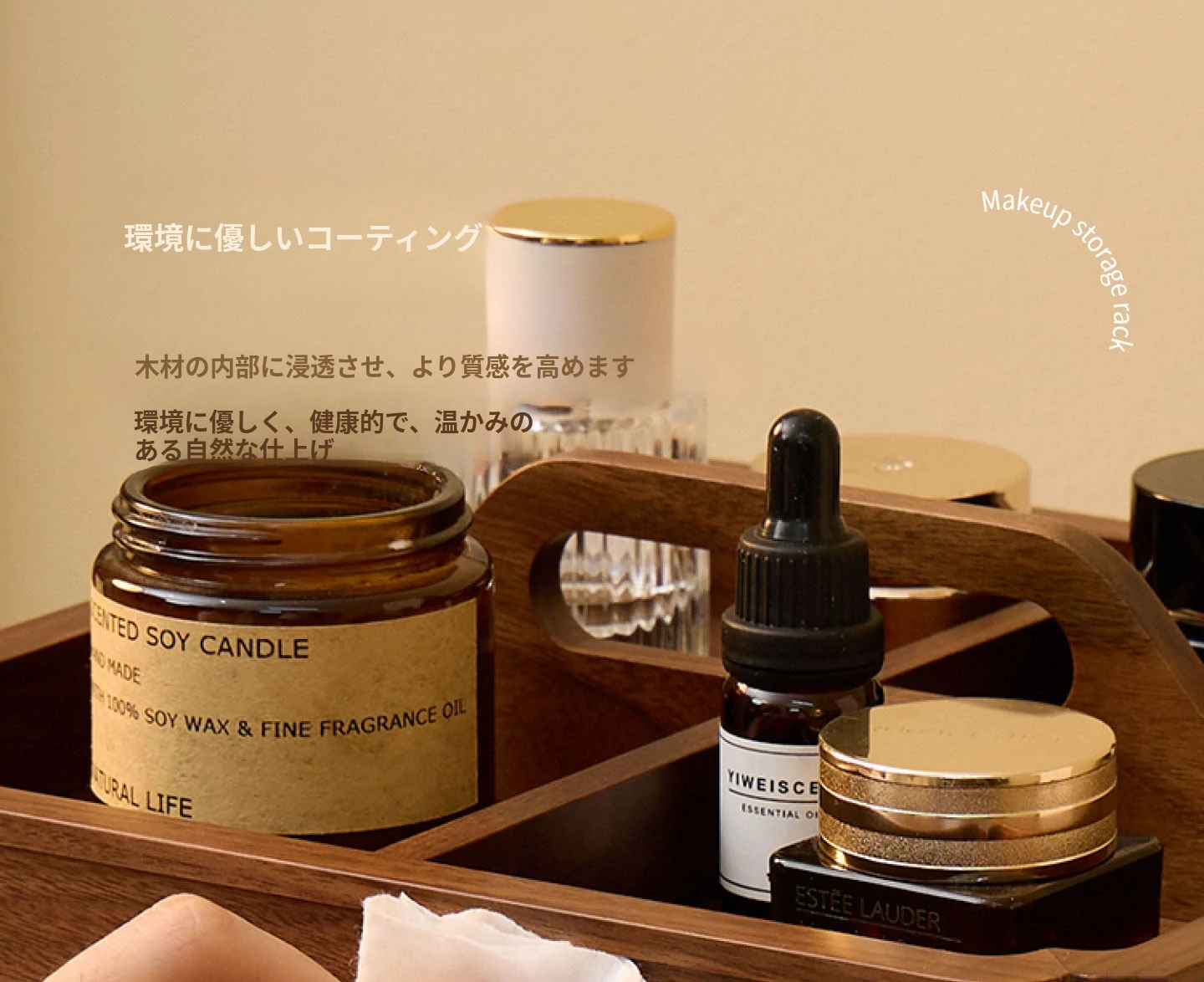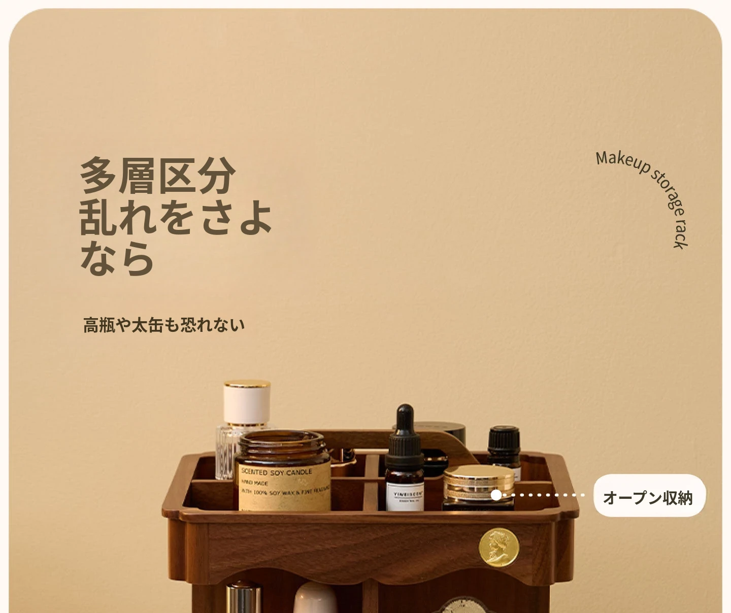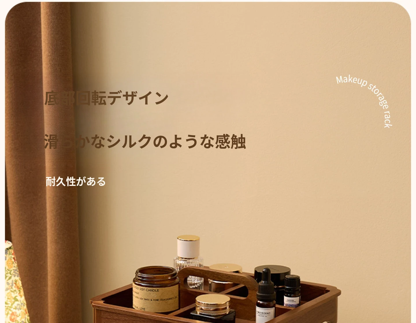 ヴァンハン 回転式化粧品収納ボックス デスクトップメイク台 組み立て式高級感木製スキンケア収納ボックス - おしゃれで機能的、あなたの美容アイテムをスマートに整理!