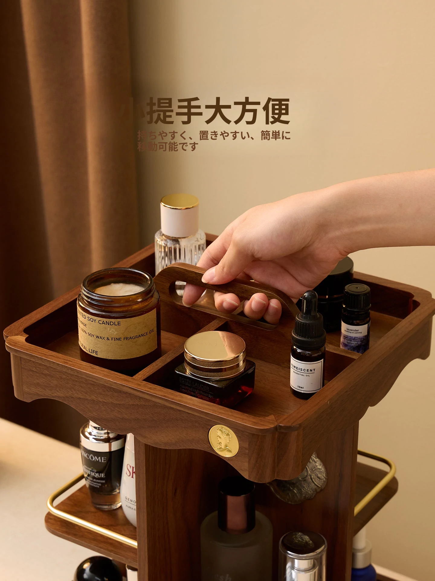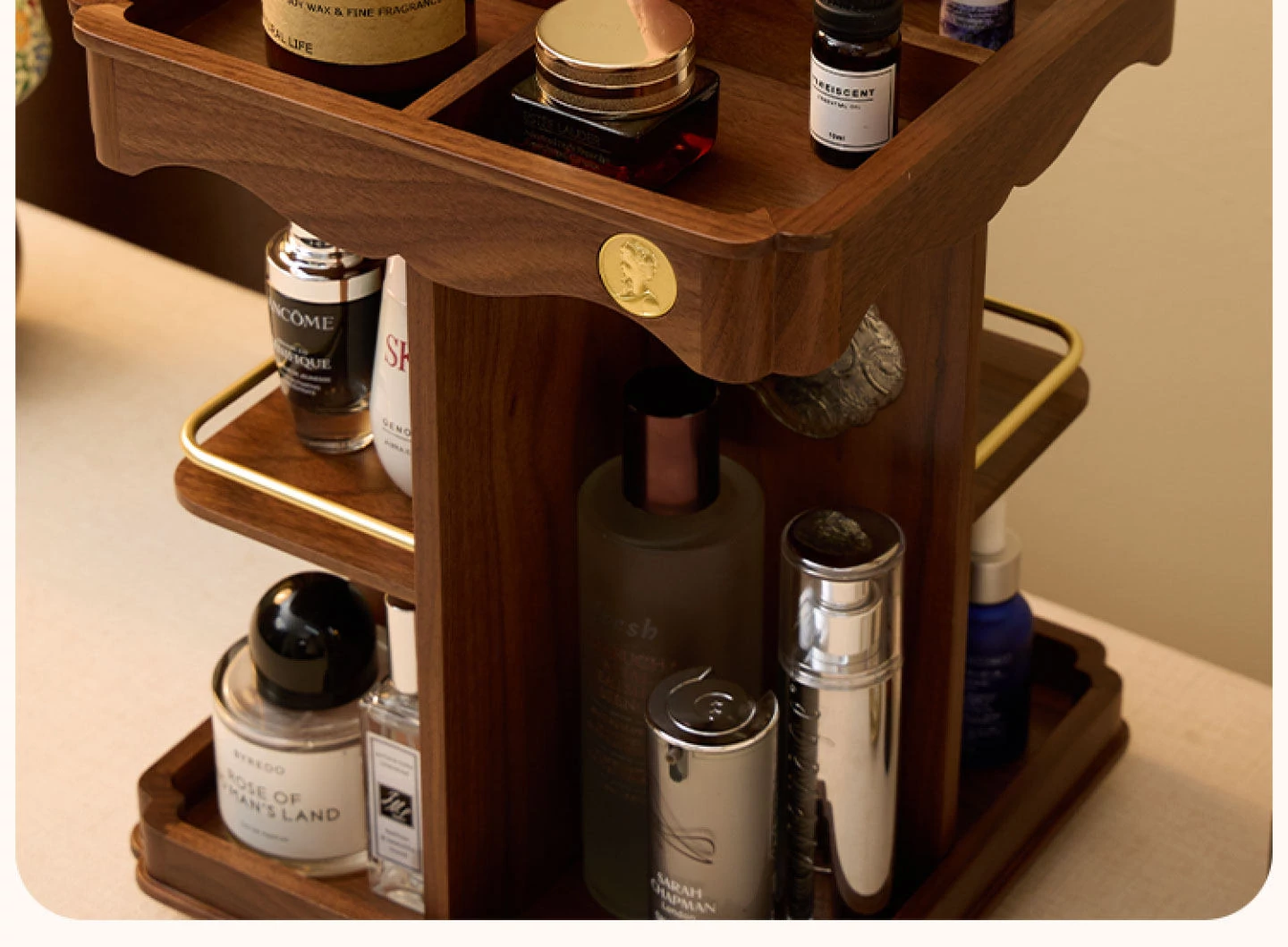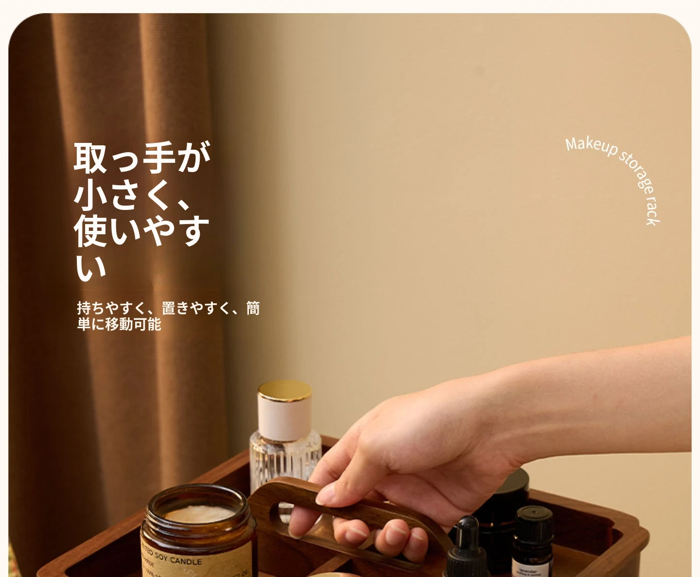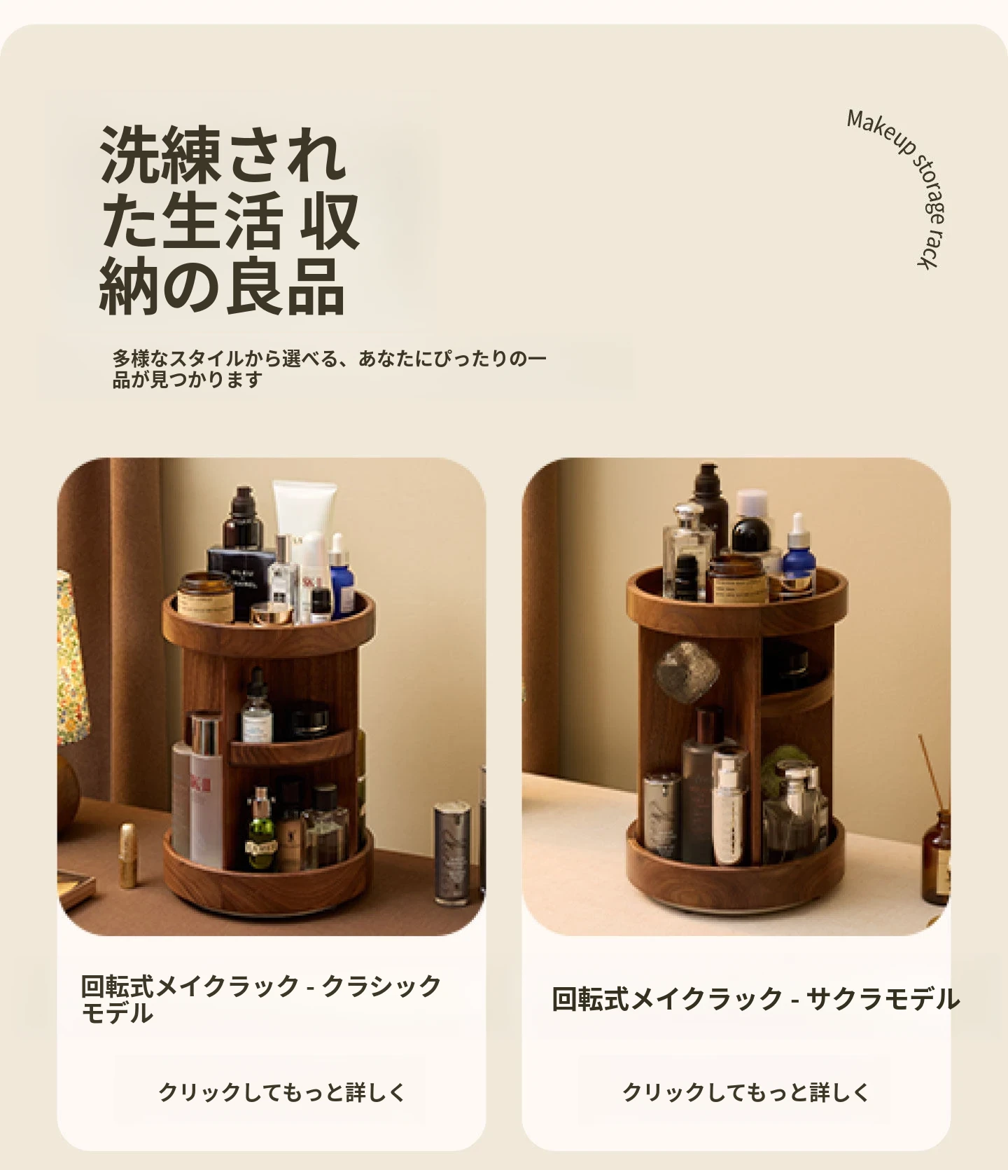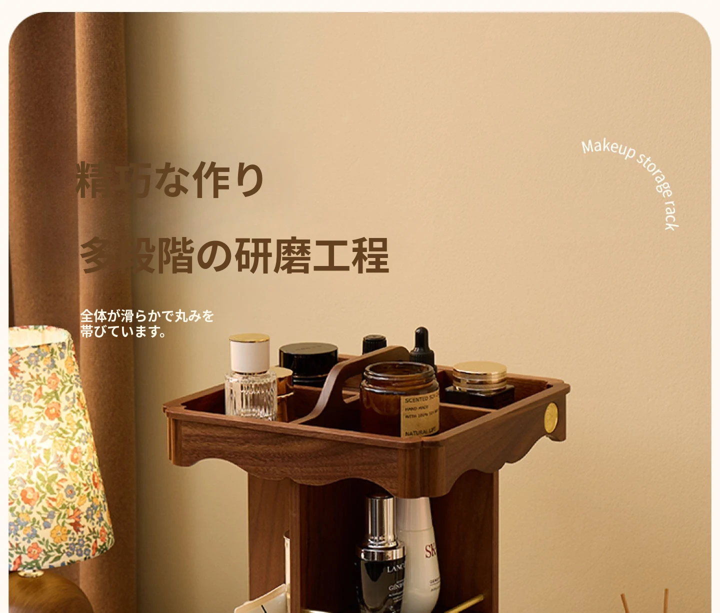 ヴァンハン 回転式化粧品収納ボックス デスクトップメイク台 組み立て式高級感木製スキンケア収納ボックス - おしゃれで機能的、あなたの美容アイテムをスマートに整理!