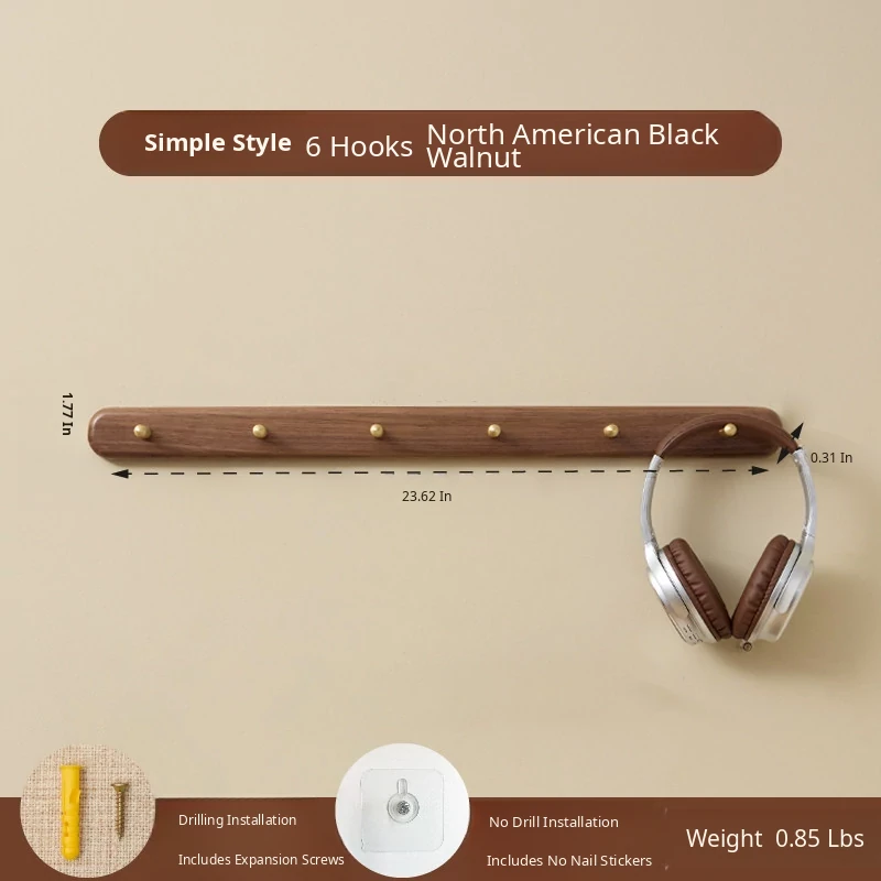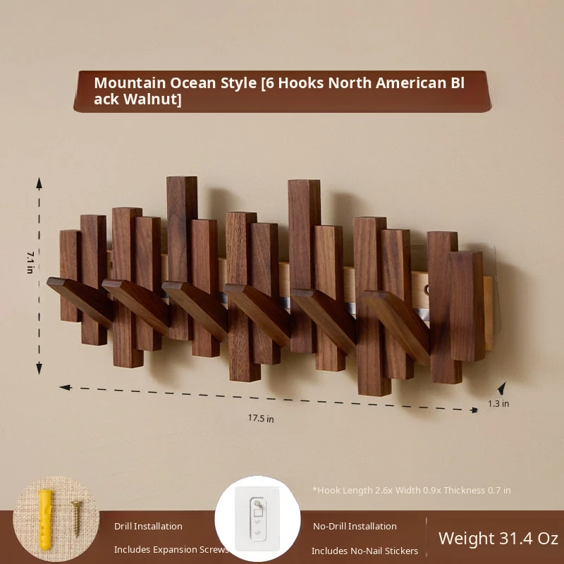 Mountain and Sea Style 6 Hooks North American Black Walnut