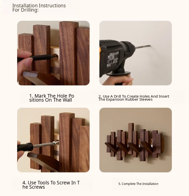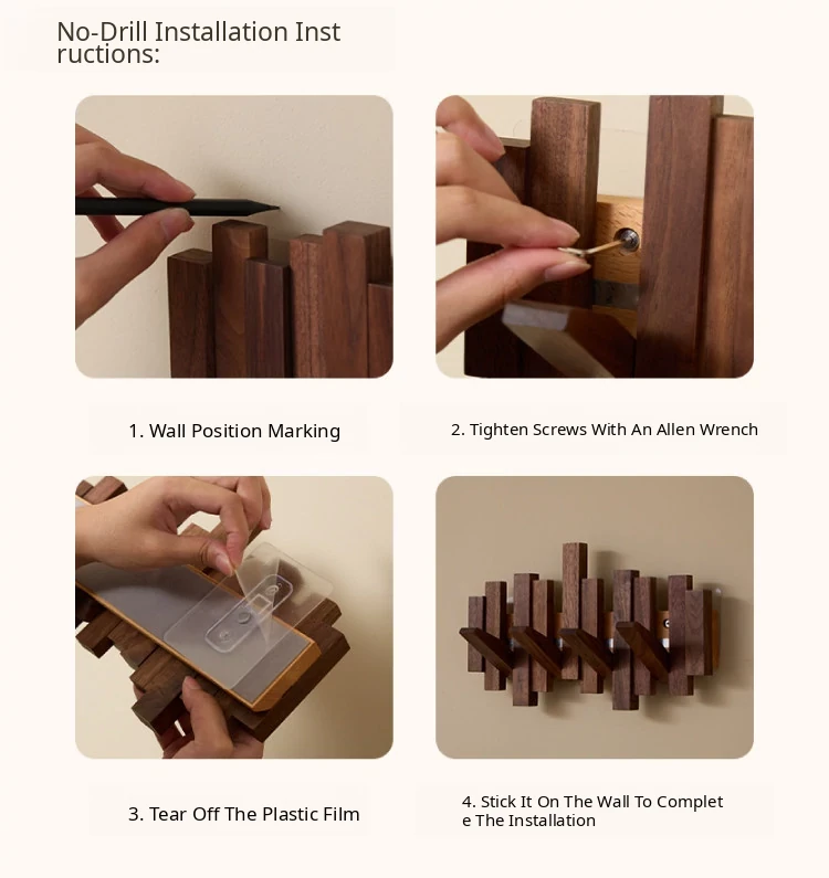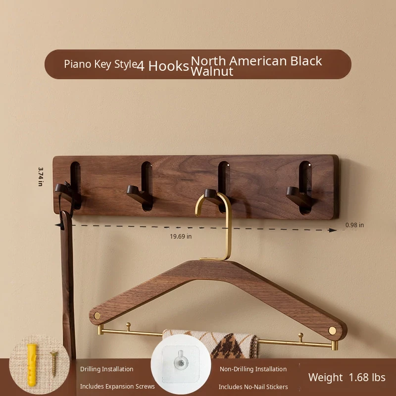 Mountain and Sea Style 4 Hooks North American Black Walnut