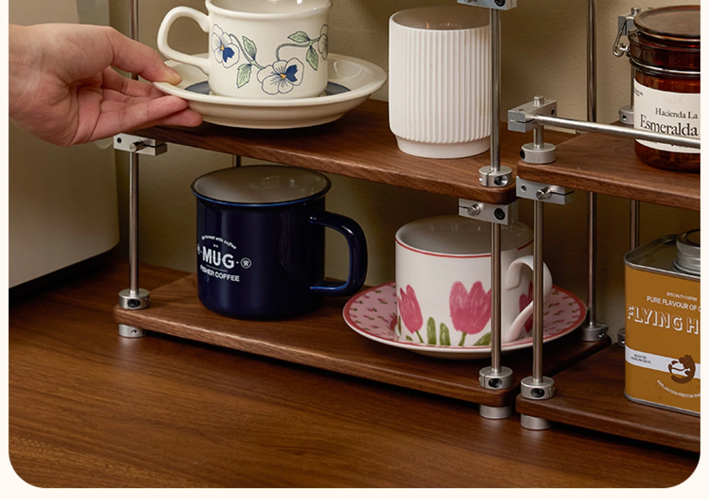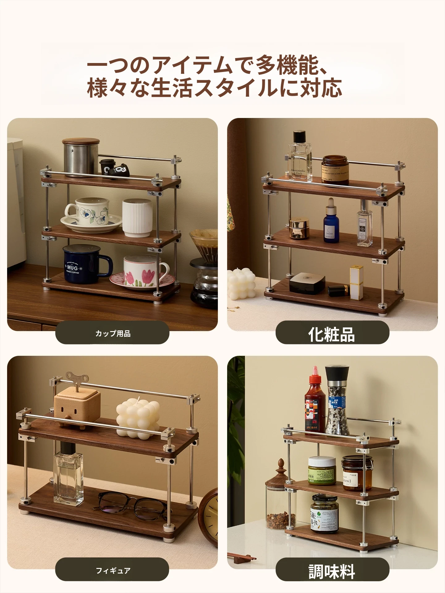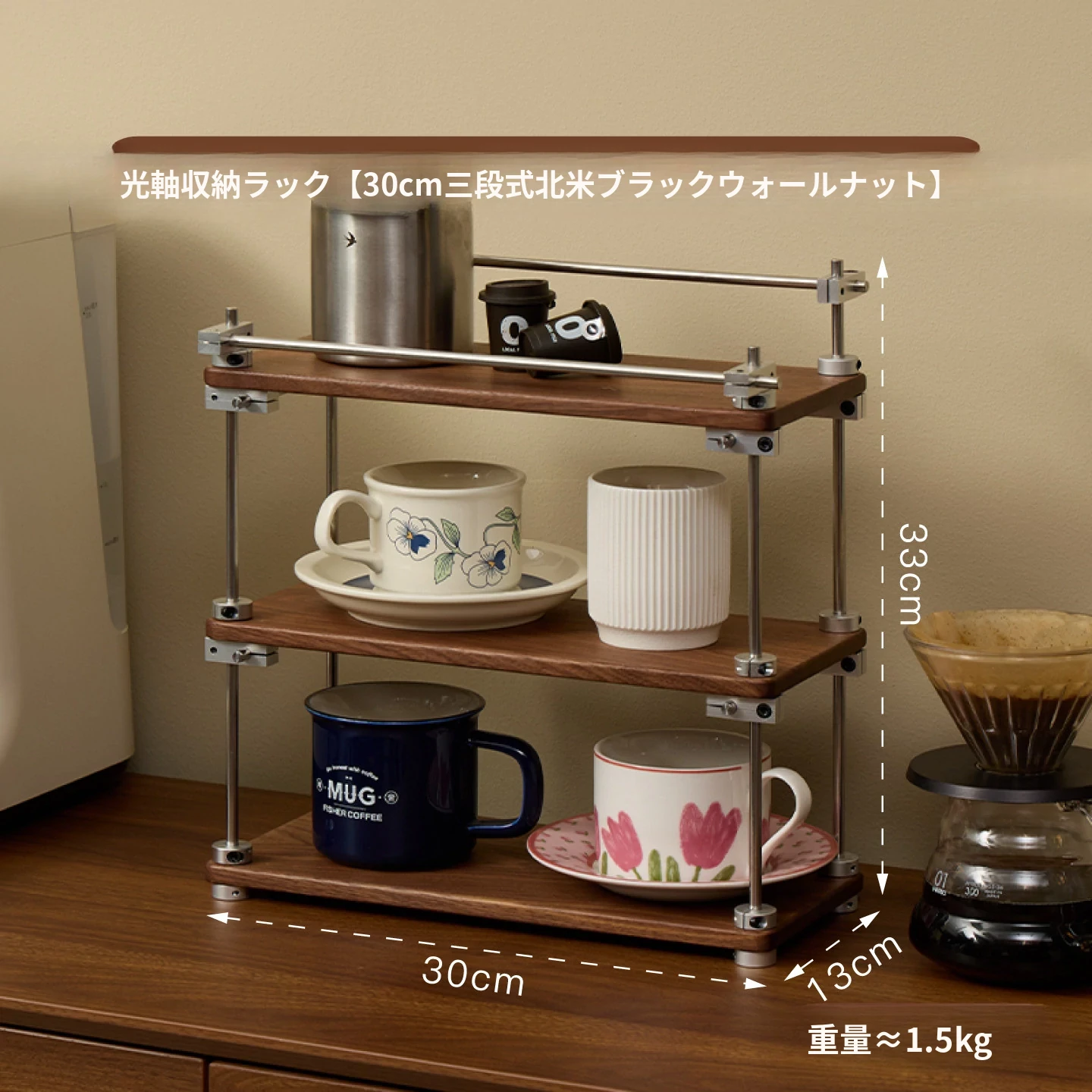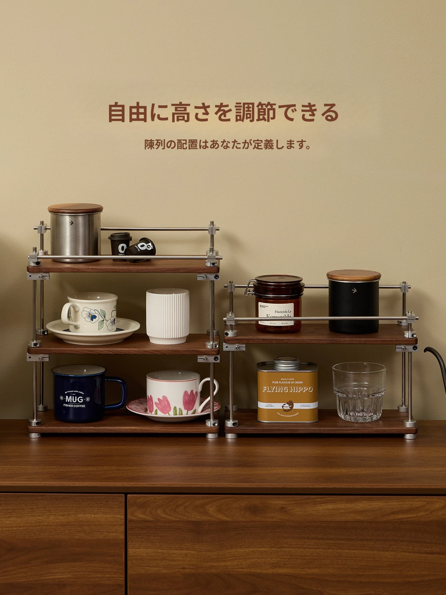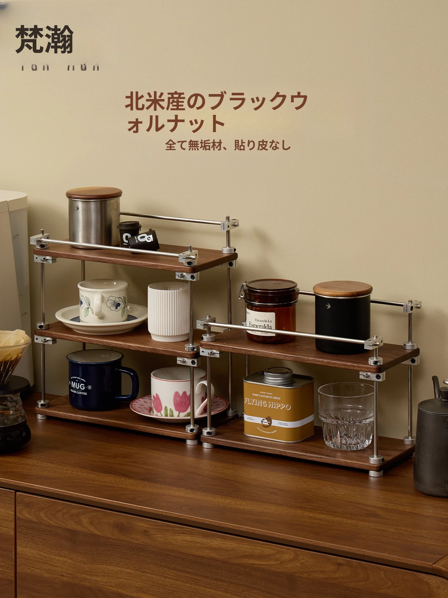 ヴァンハン 無垢材デスク用カップスタンド コーヒーカップ・ティーカップ用多層収納ラック メイク台・香水ディスプレイにも最適!おしゃれで機能的なインテリアアイテムで、あなたの空間を美しく彩ります。